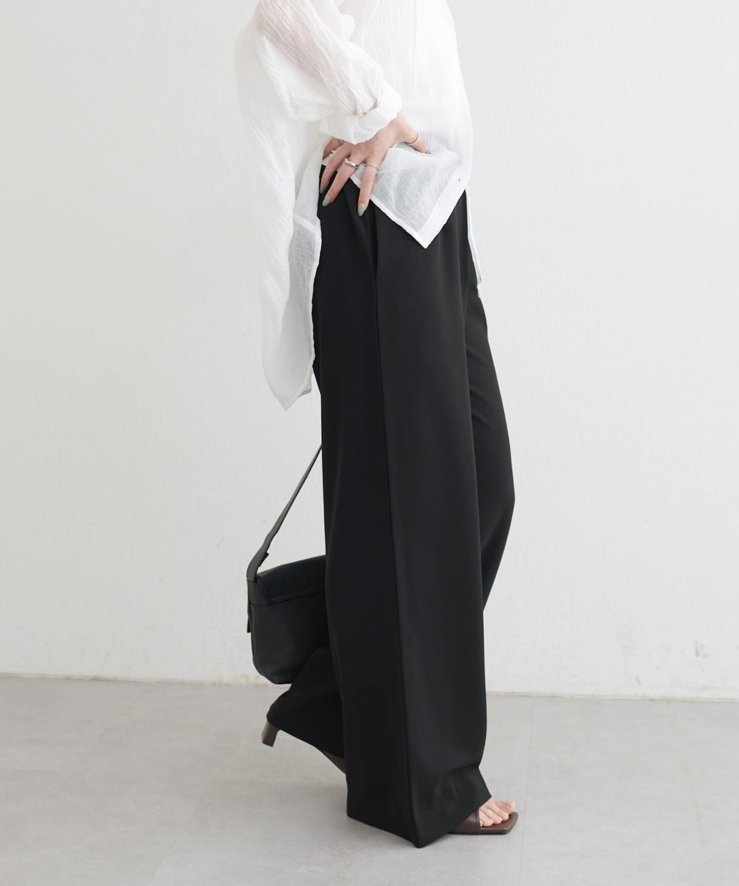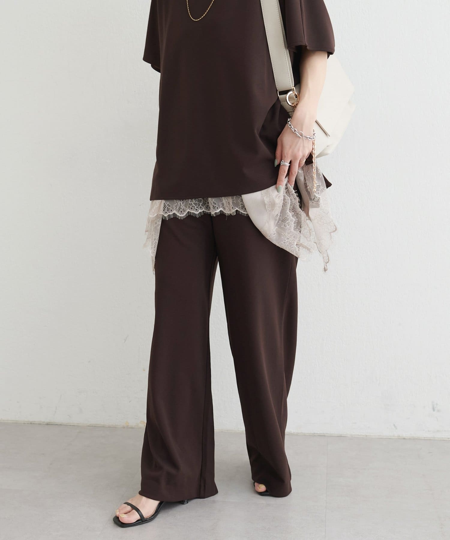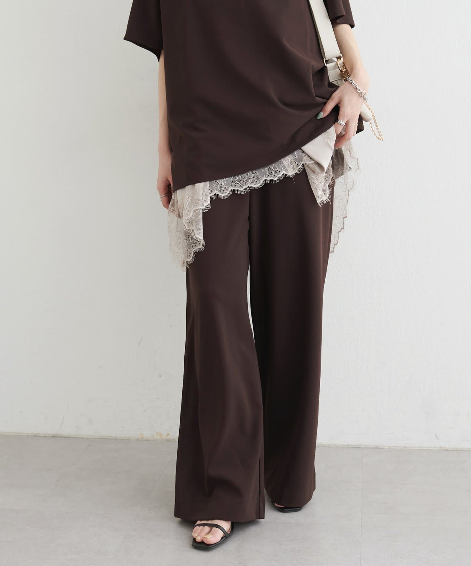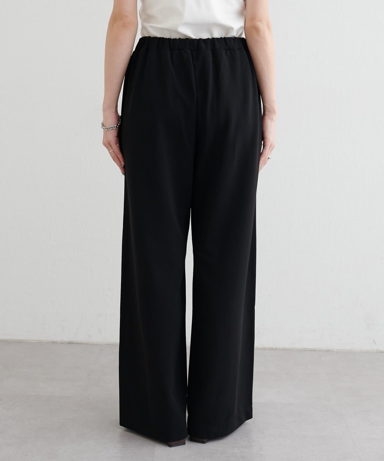 落ち感のあるカットジョーゼット素材を使用したイージーパンツ。