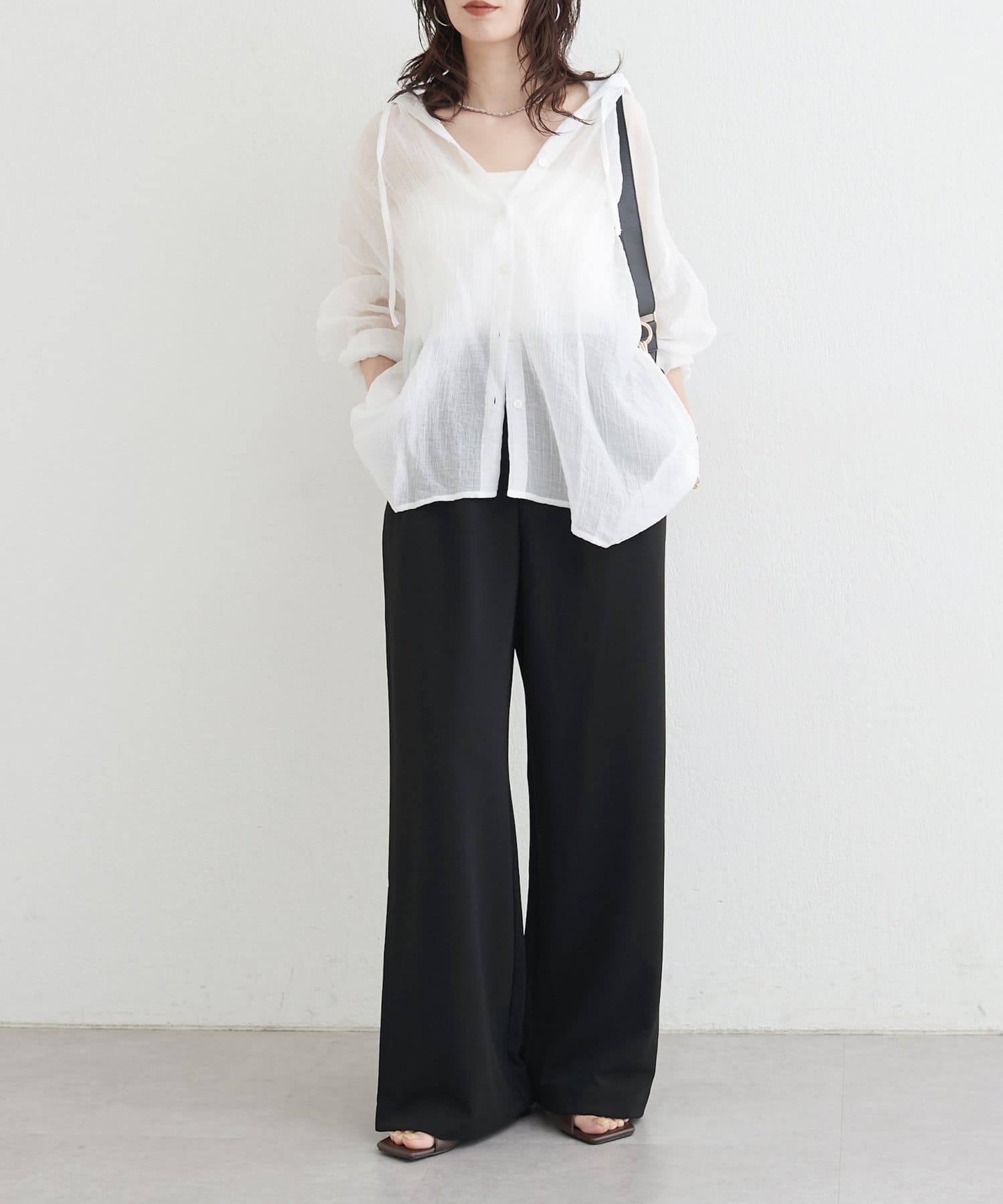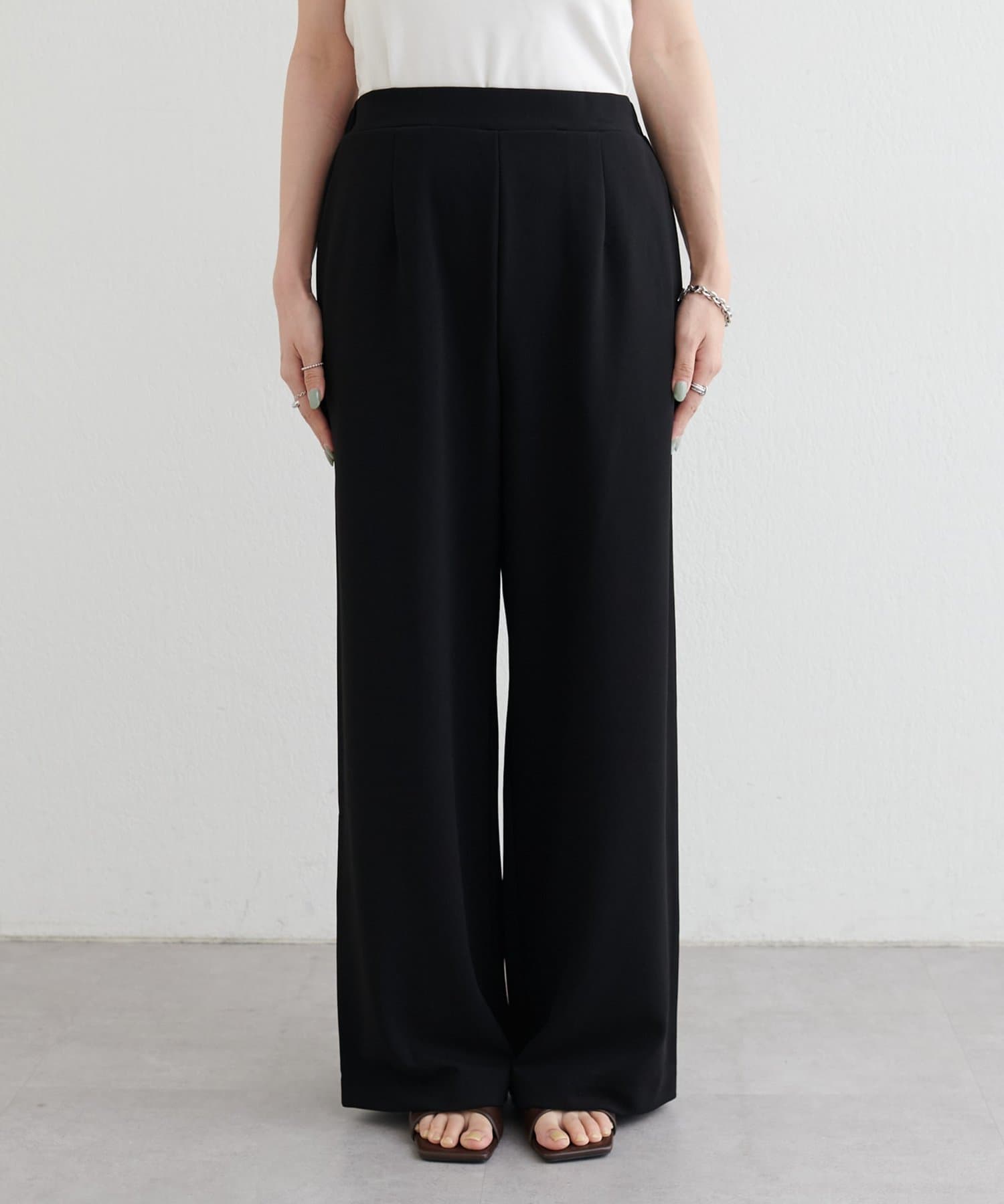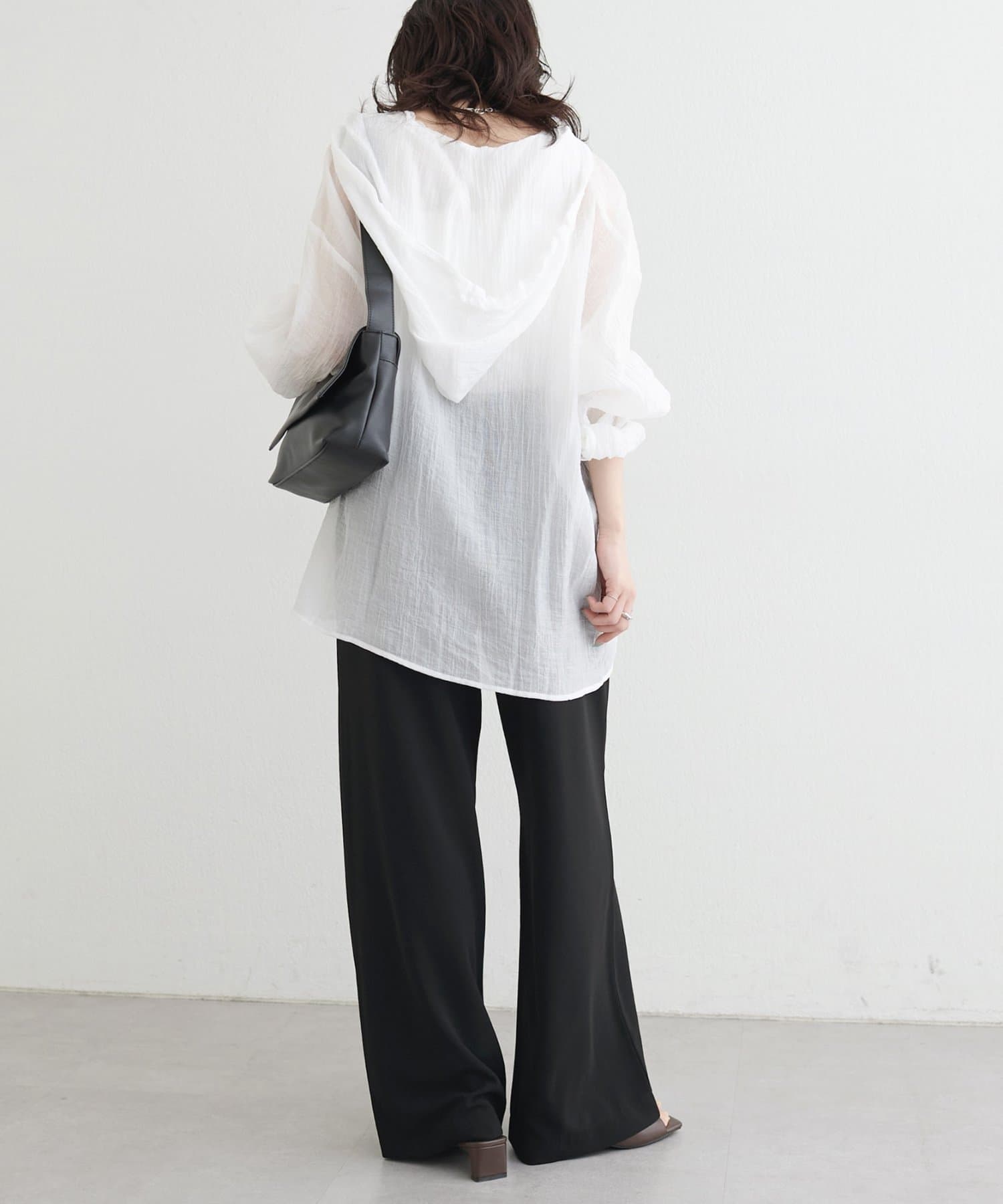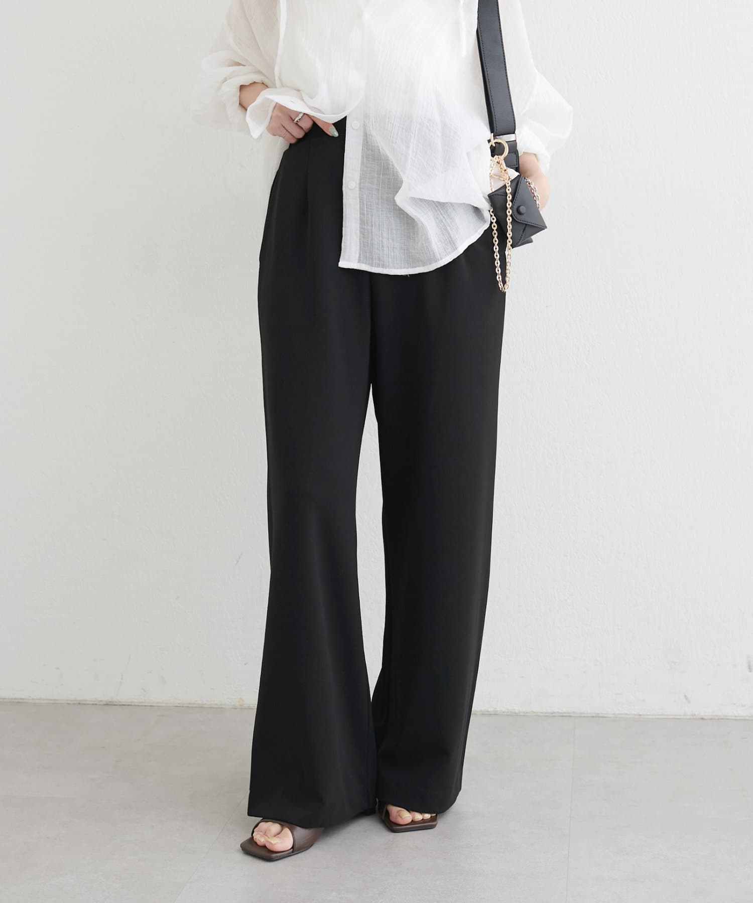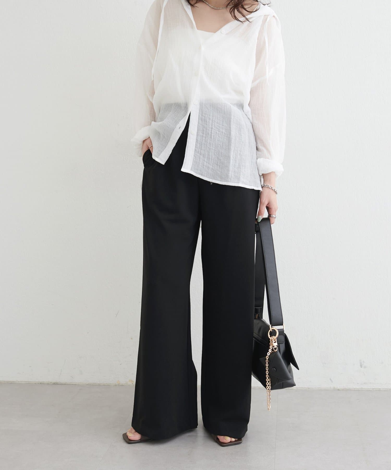 落ち感のあるカットジョーゼット素材を使用したイージーパンツ。