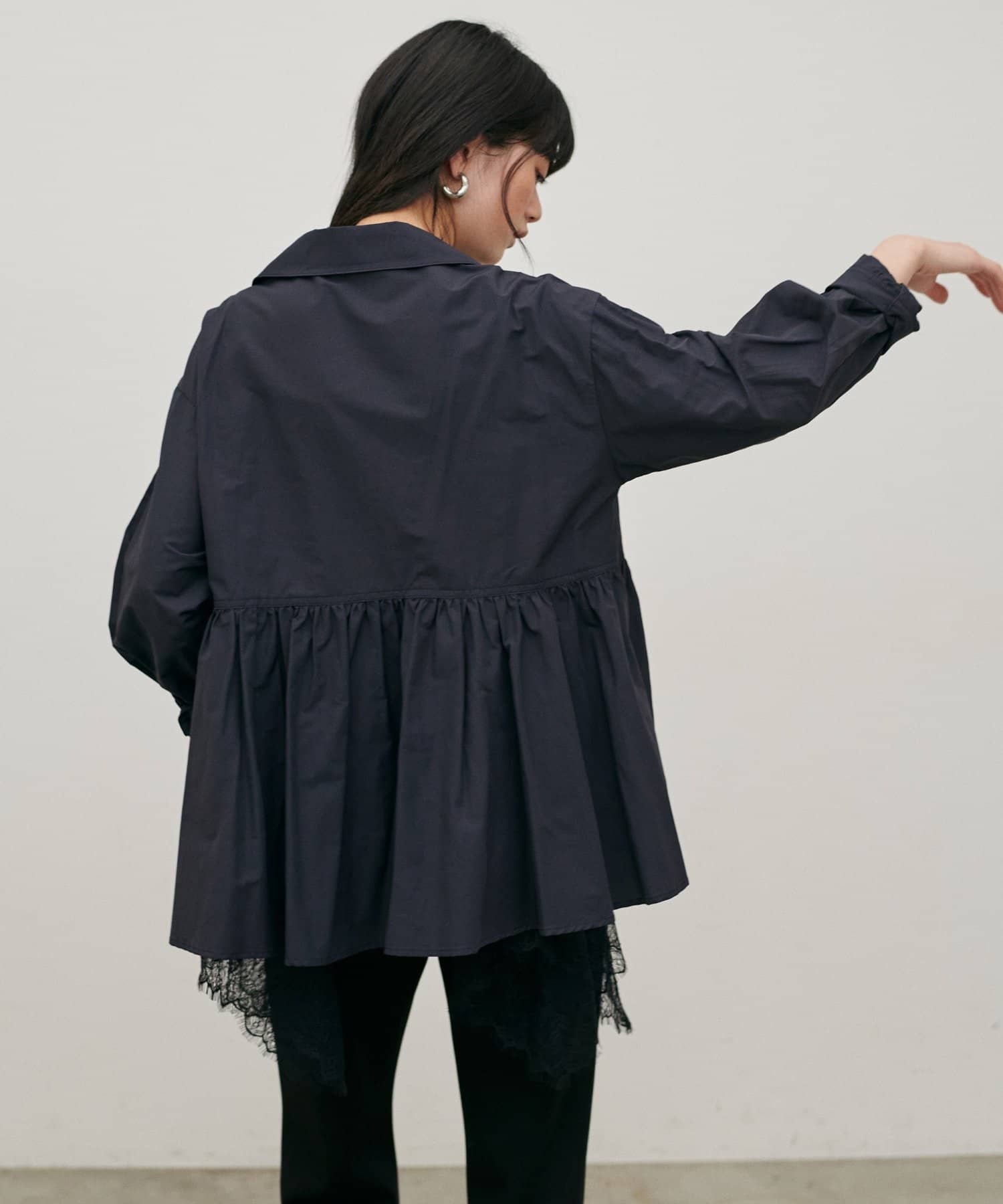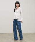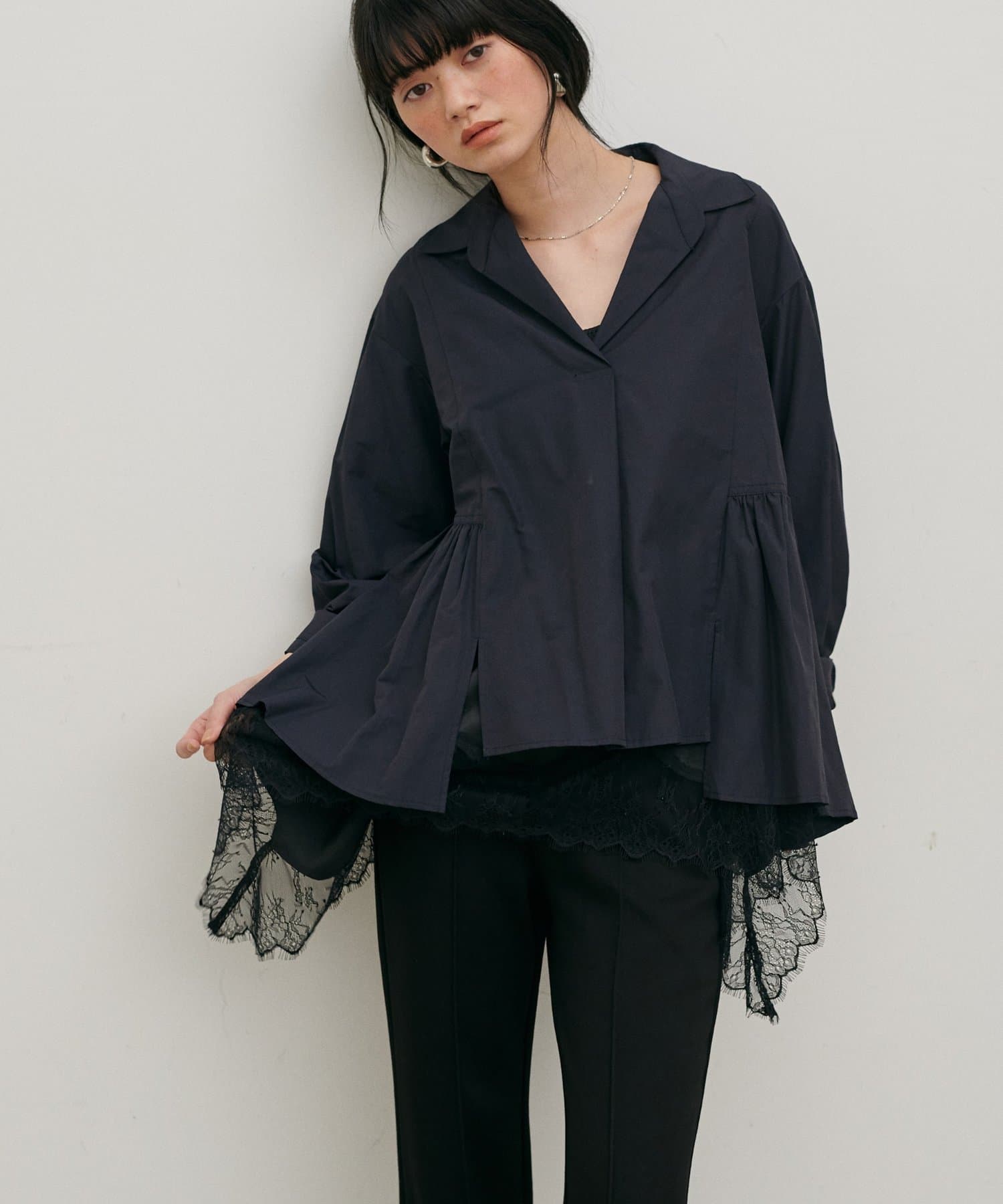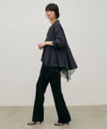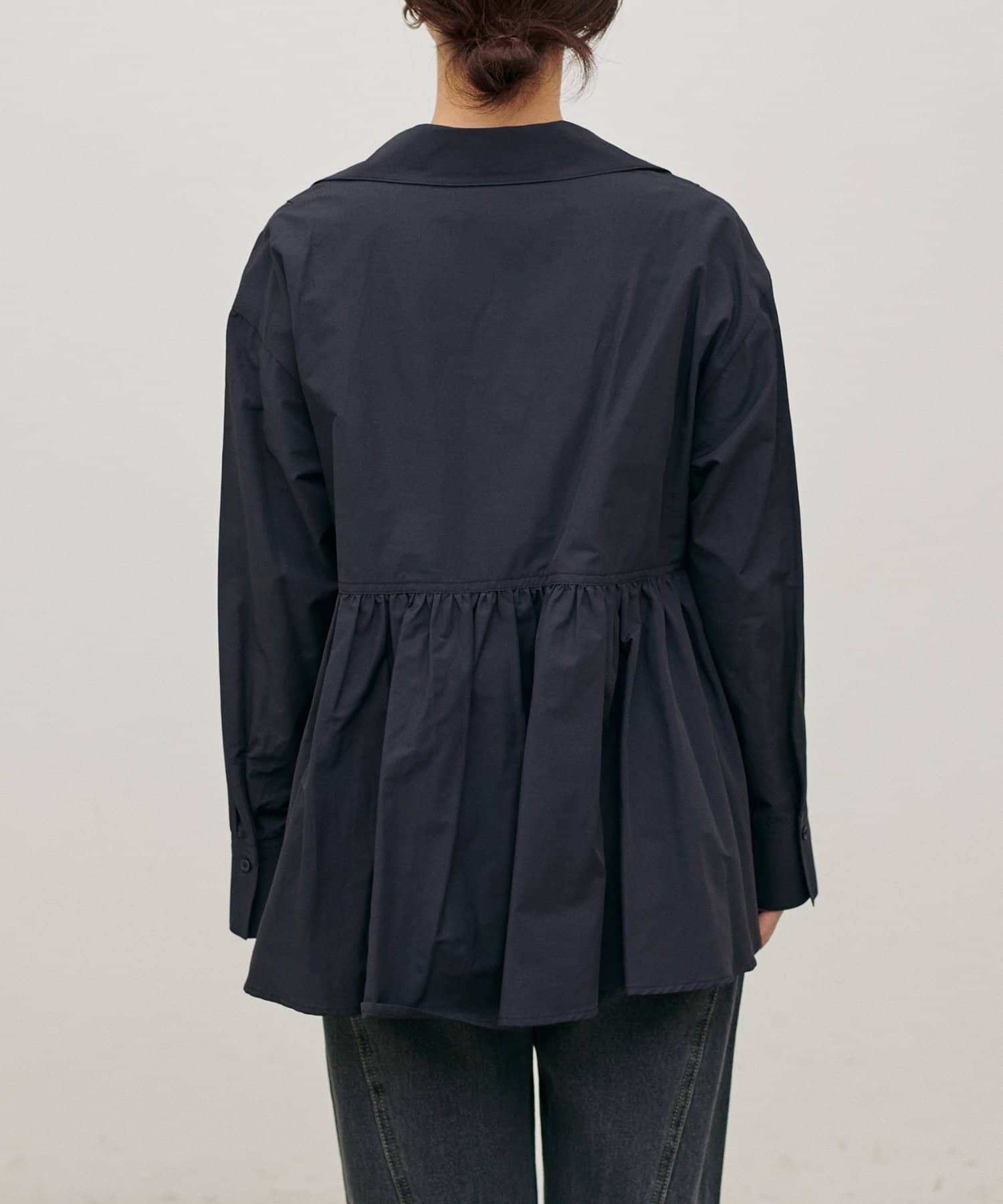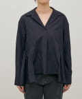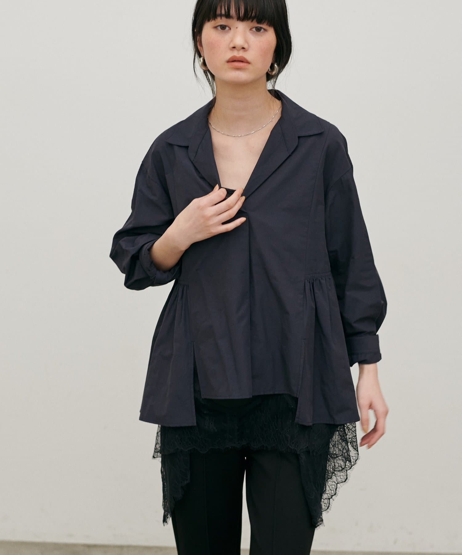 首元はすっきりの開襟に、身体のラインを拾わないゆとりのあるサイジング。