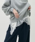ニットやスウェットの裾からレースを覗かせるレイヤードスタイルが今季のおすすめ。