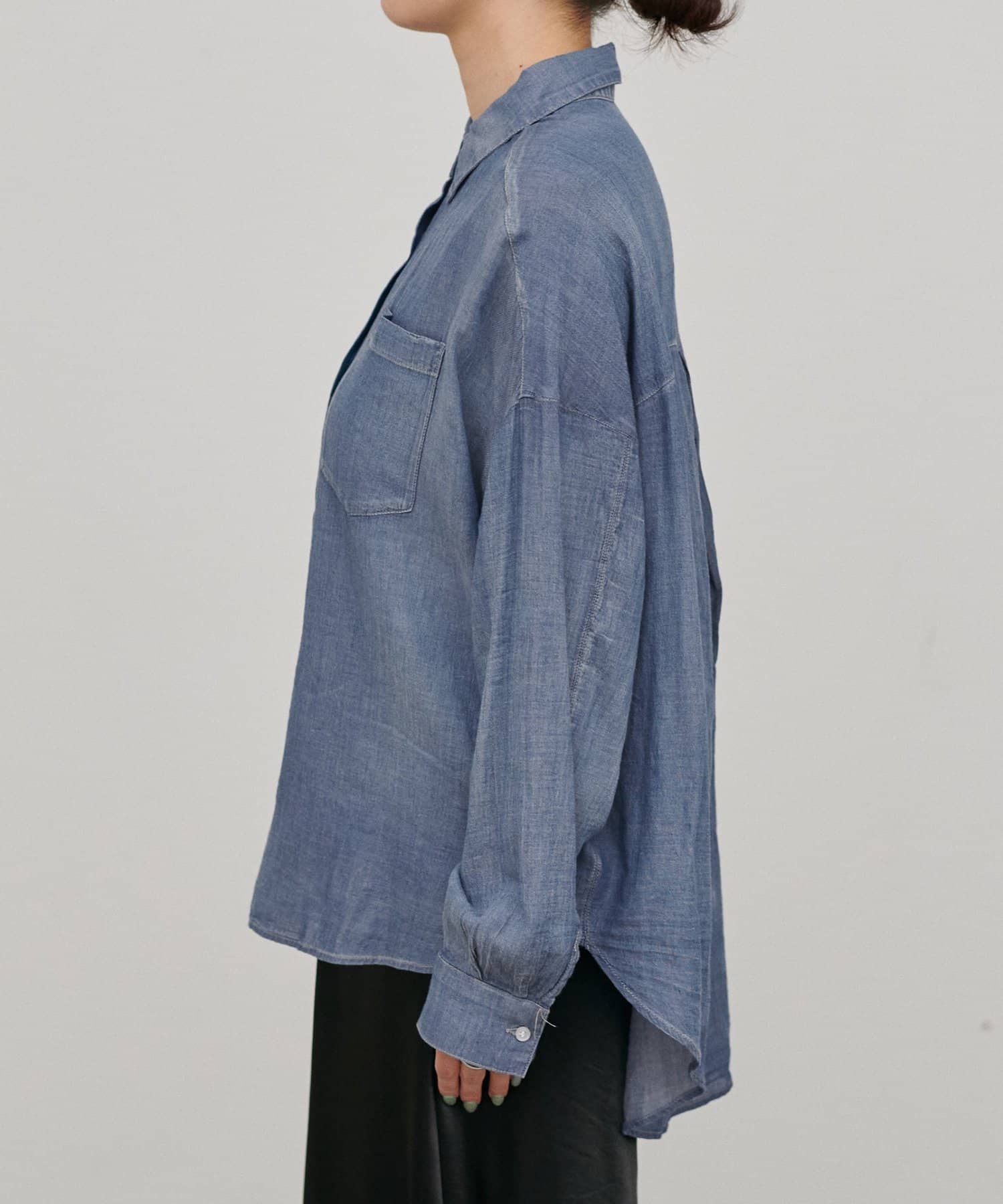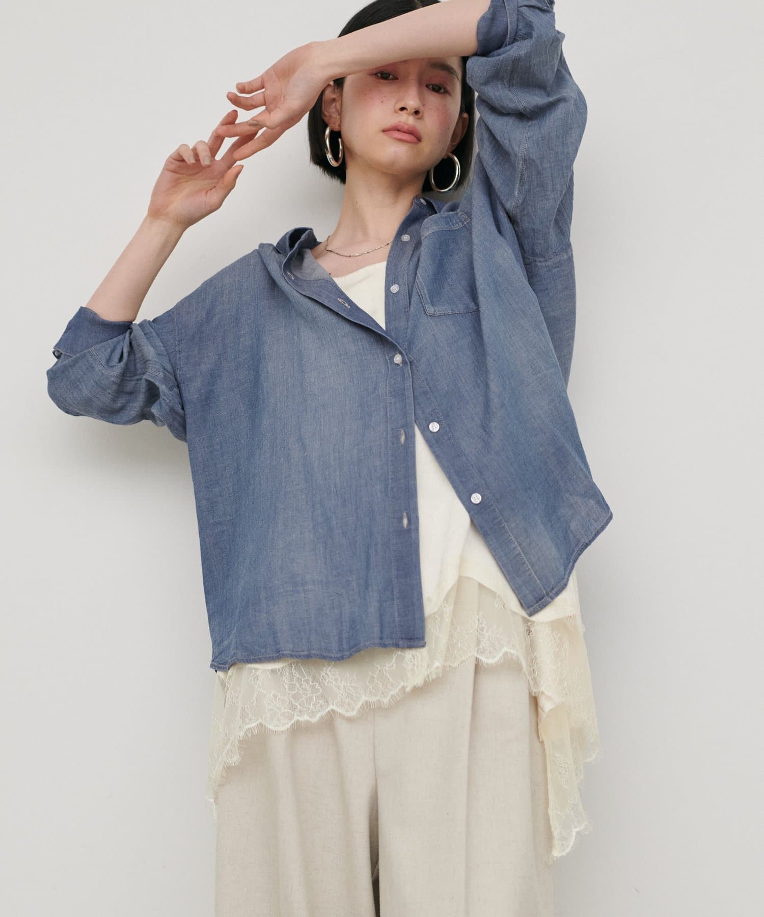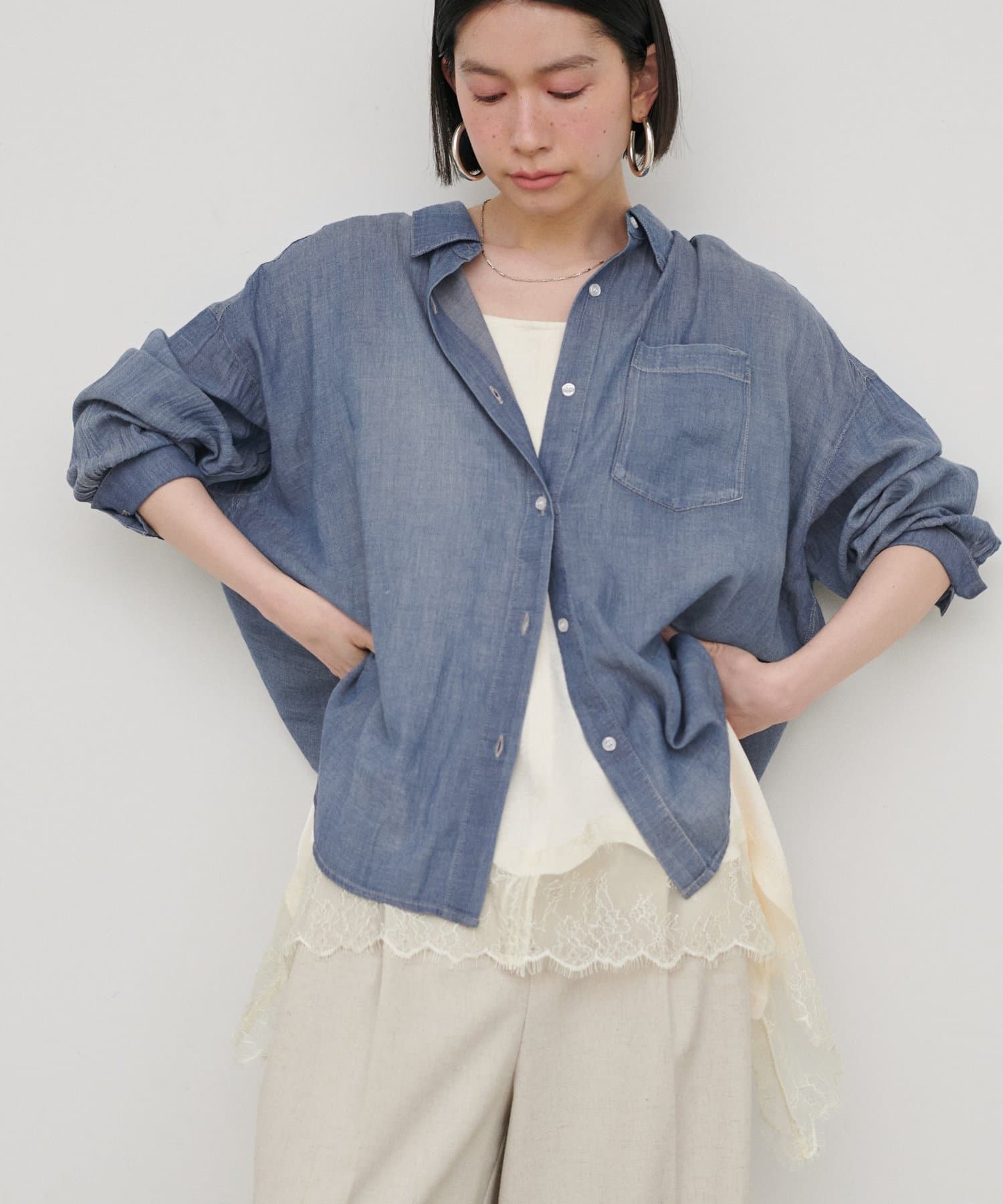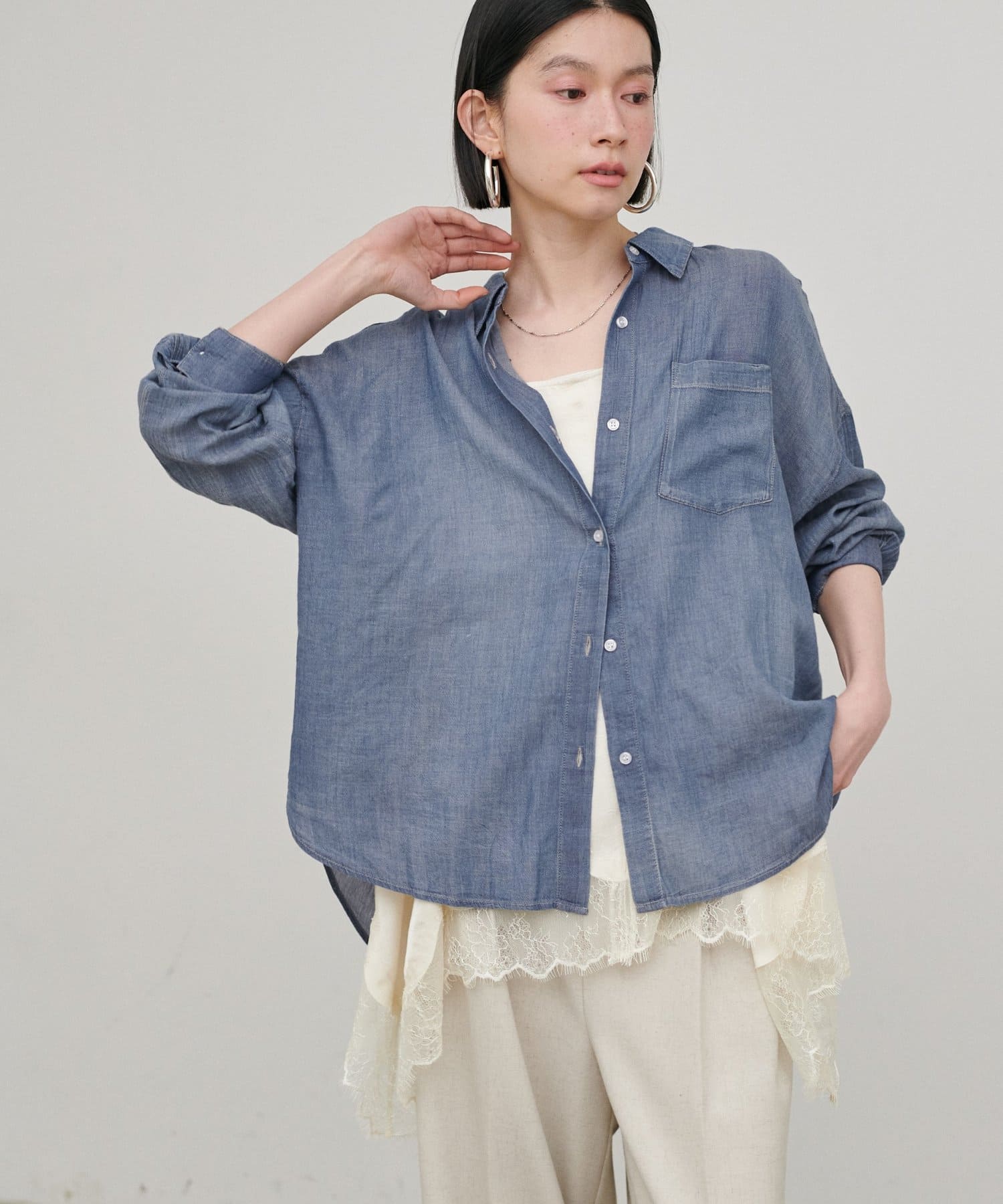 シアーなデニム素材で仕立てた、軽やかな印象のシャツ。