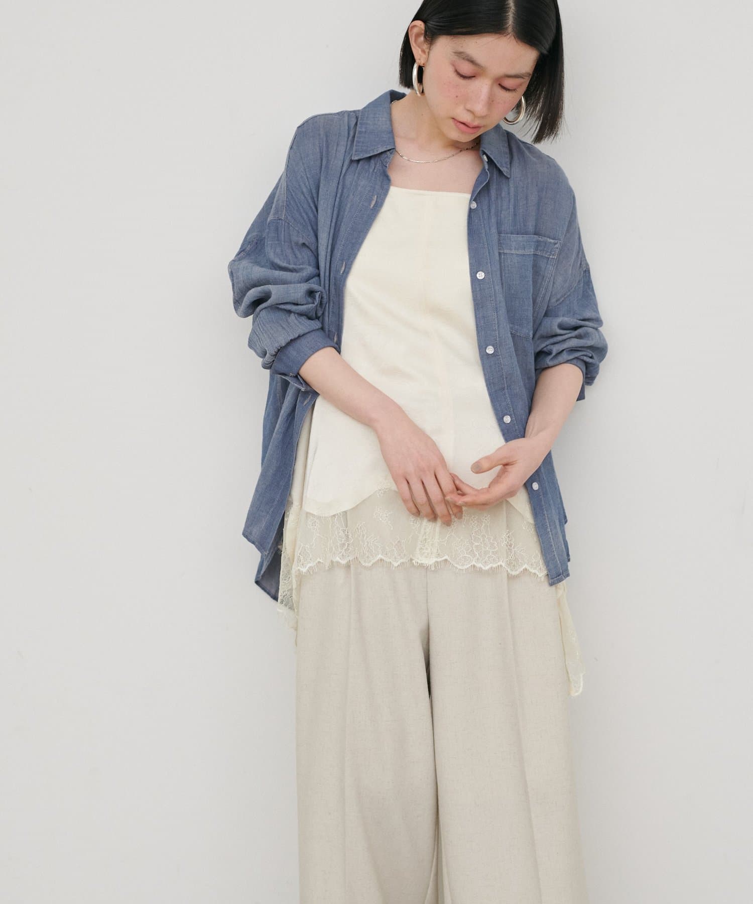 タンクトップやキャミソールの上にさらっと羽織るスタイリングがおすすめ。