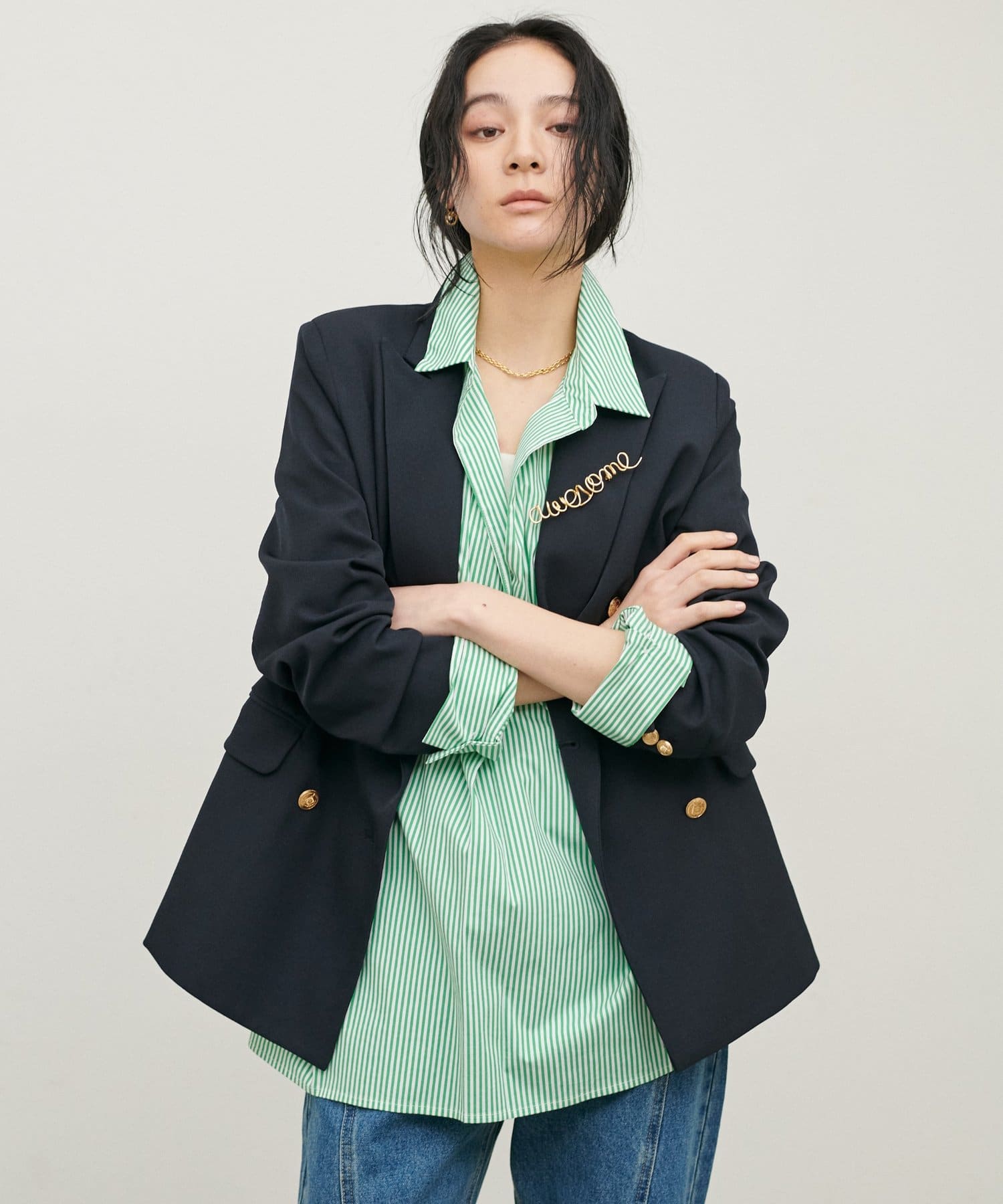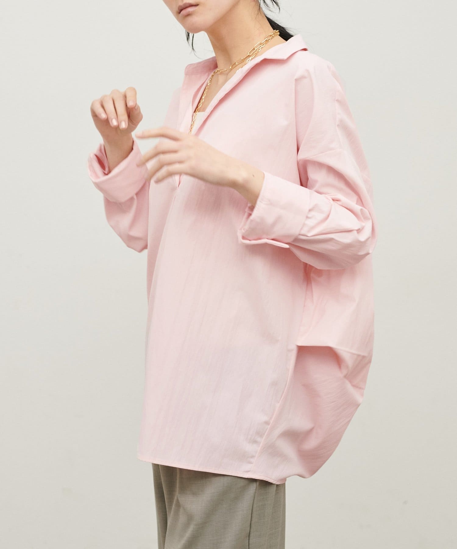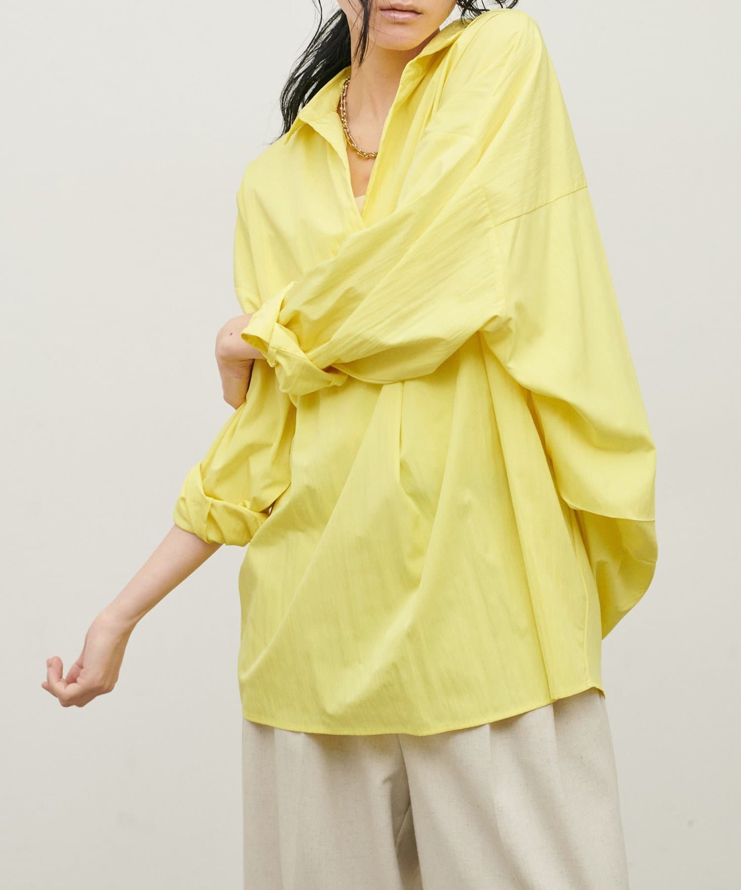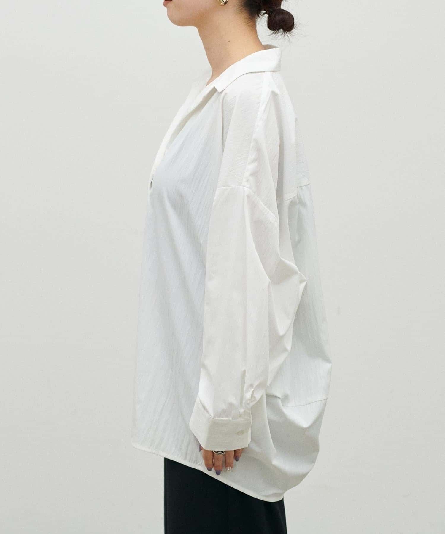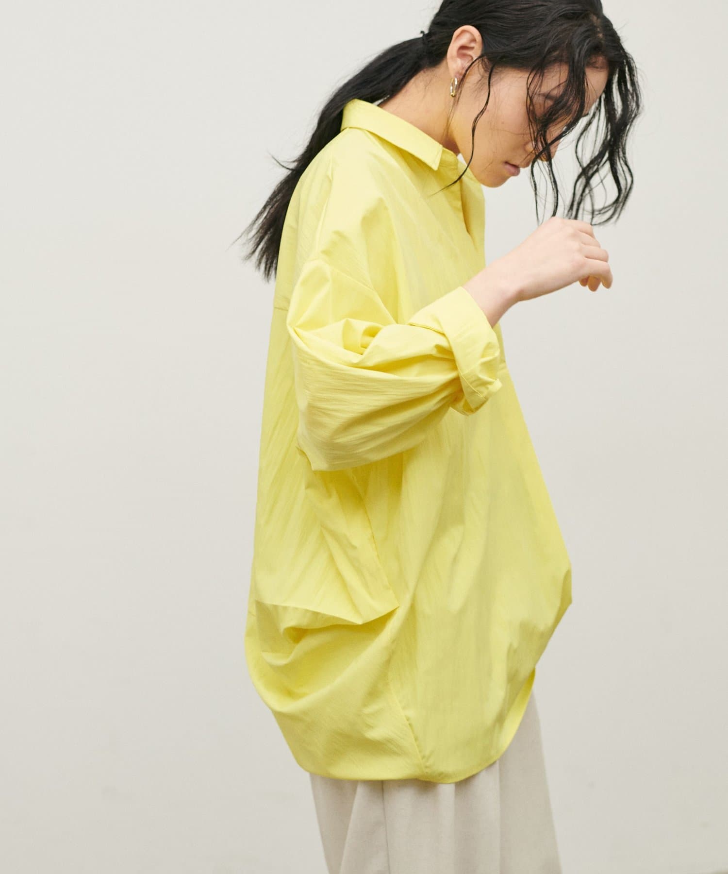 ゆったりとしたオーバーサイズで、脇線後ろのタックにより立体的なコクーンシルエットに。