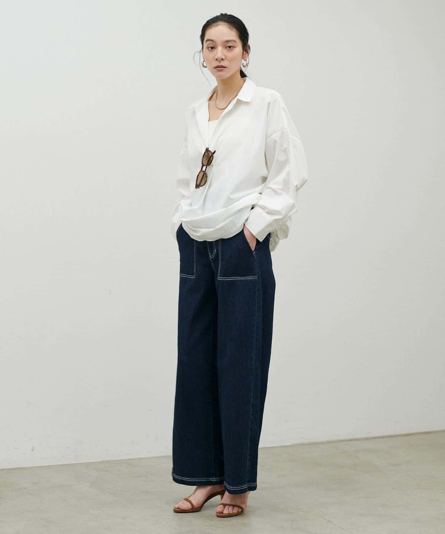 あえてゆったりとしたデニムパンツやイージーパンツを合わせて、こなれ感を演出した着こなしもおすすめです。