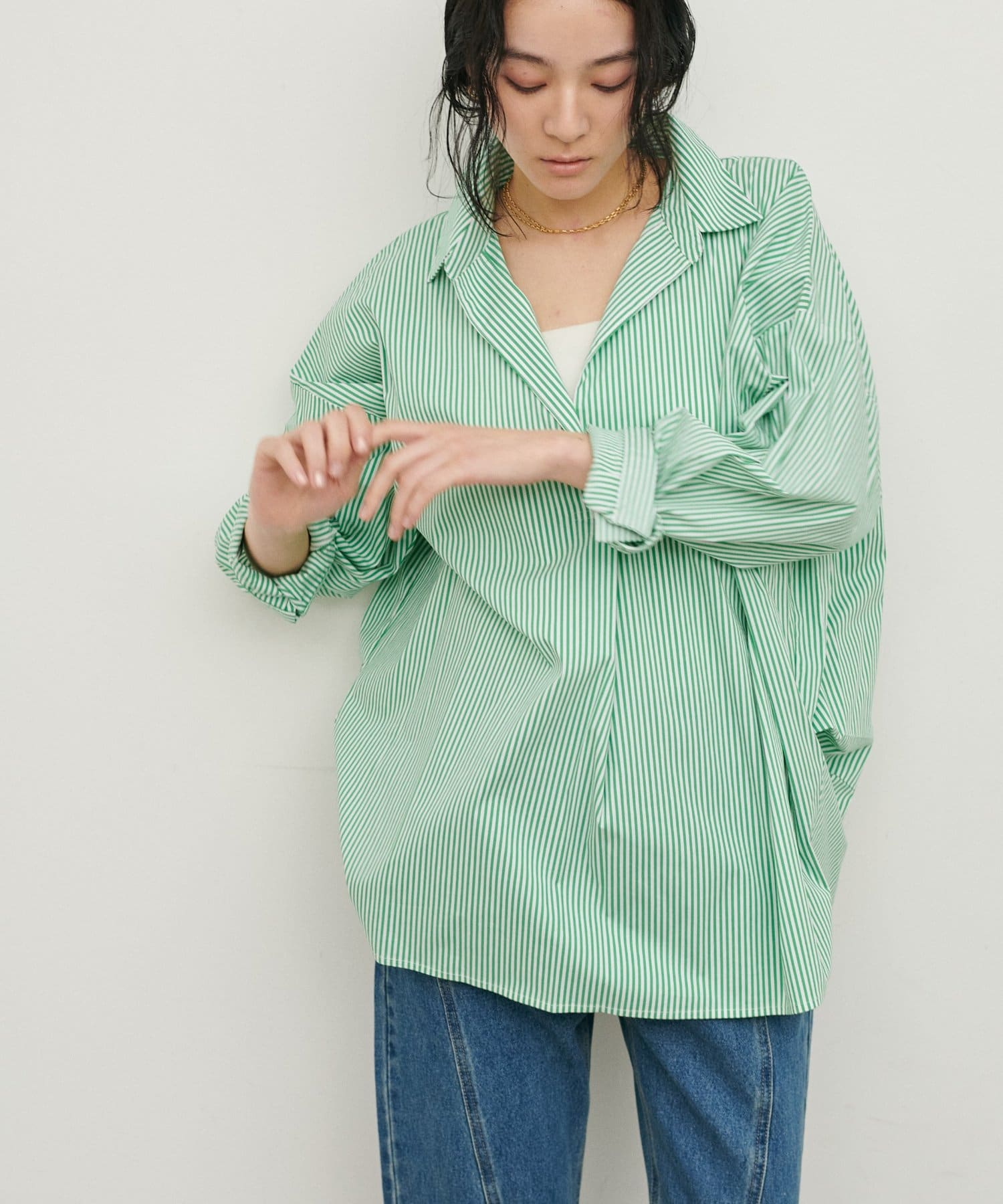 襟を抜いてニュアンス感のあるシルエットが楽しめます。