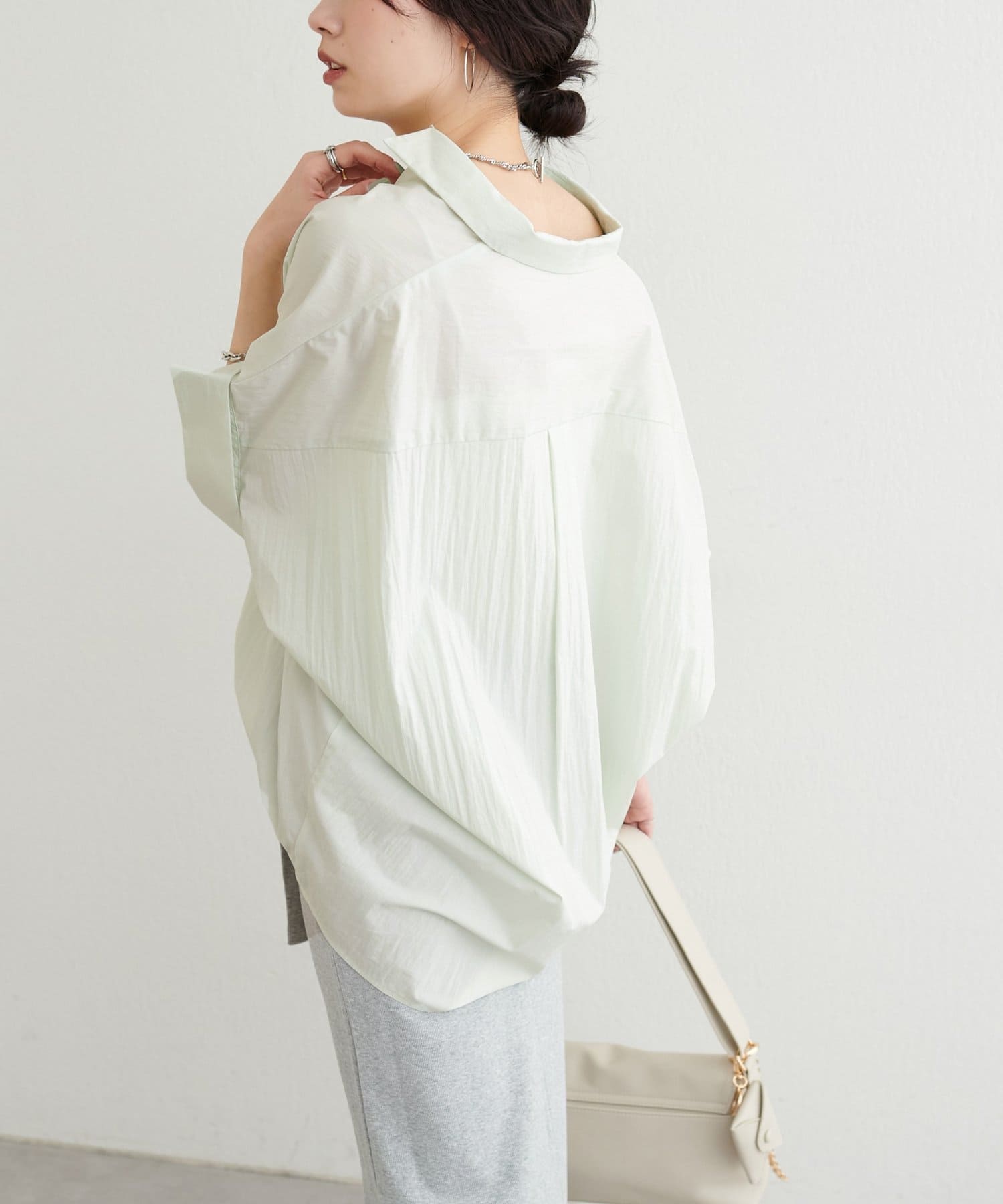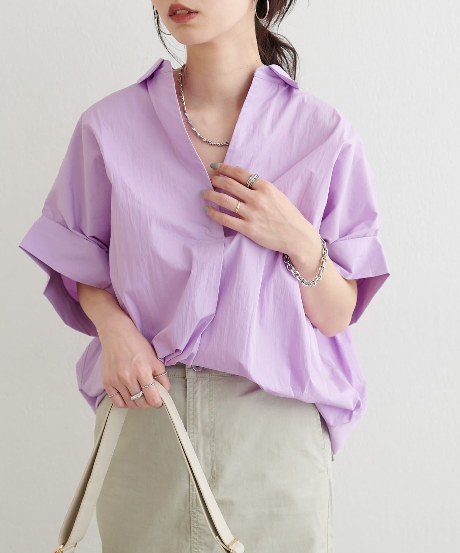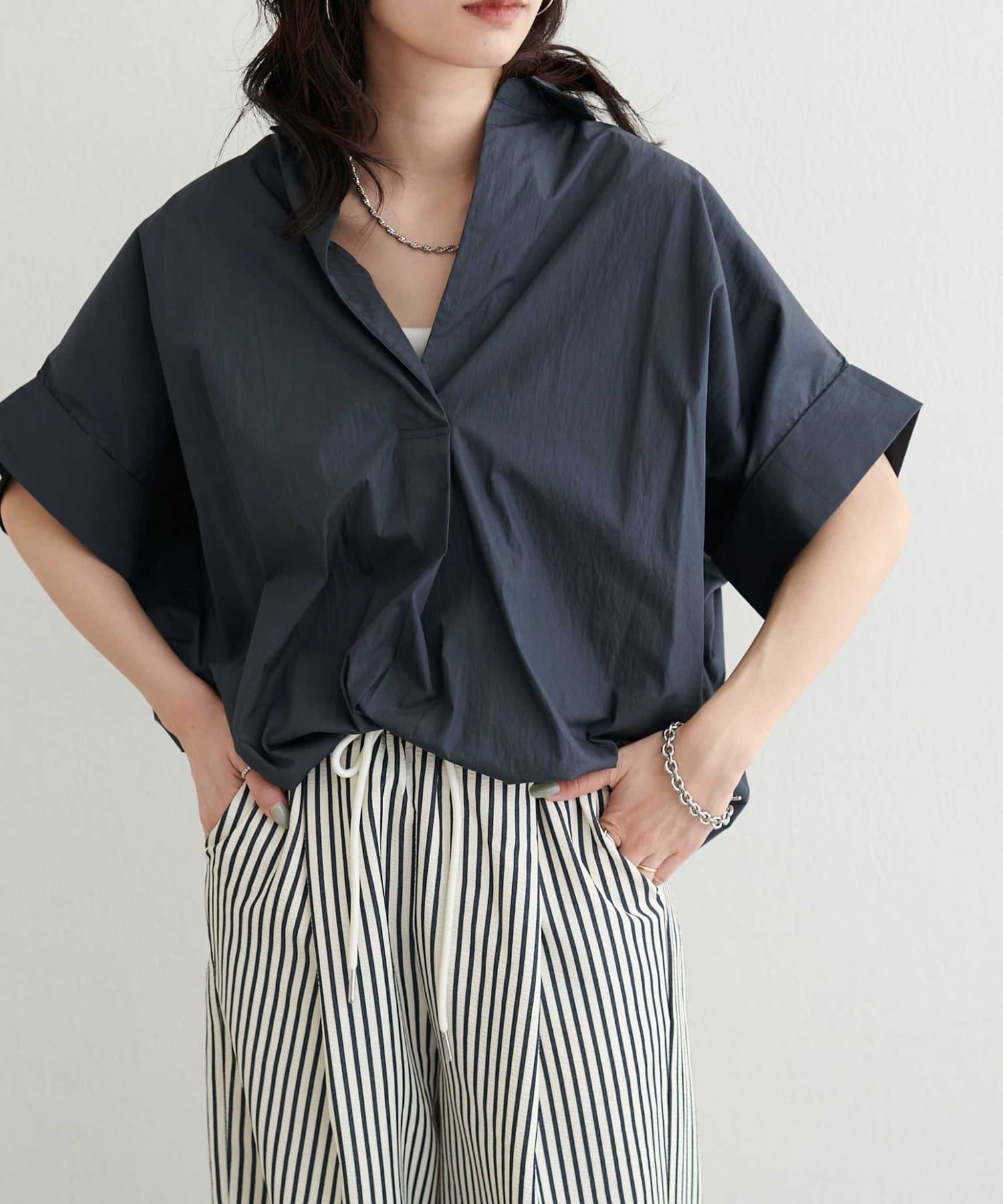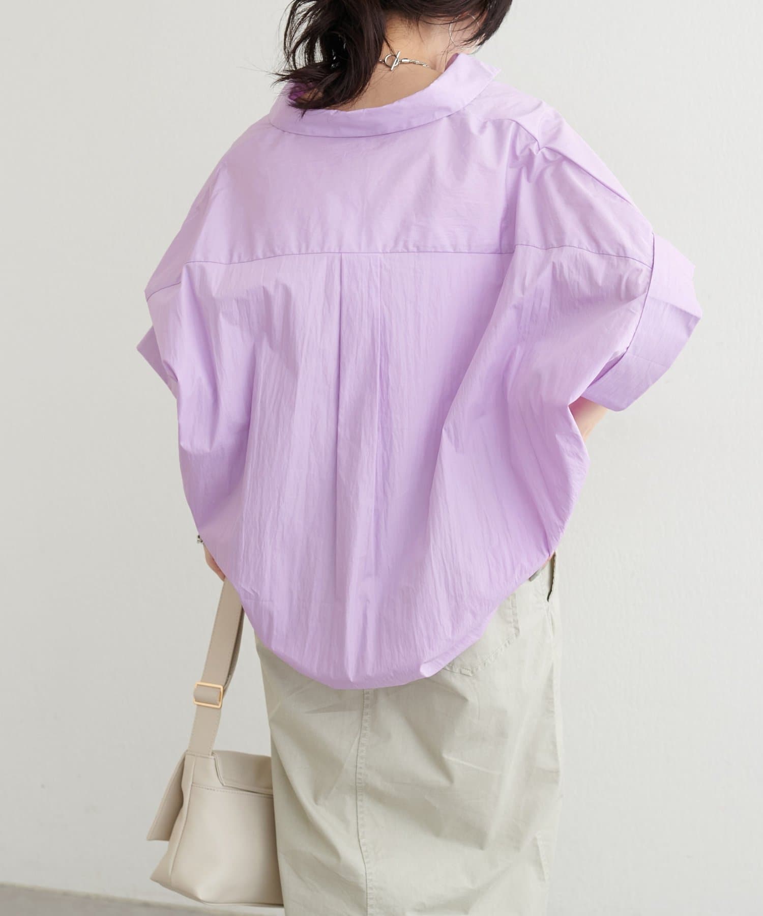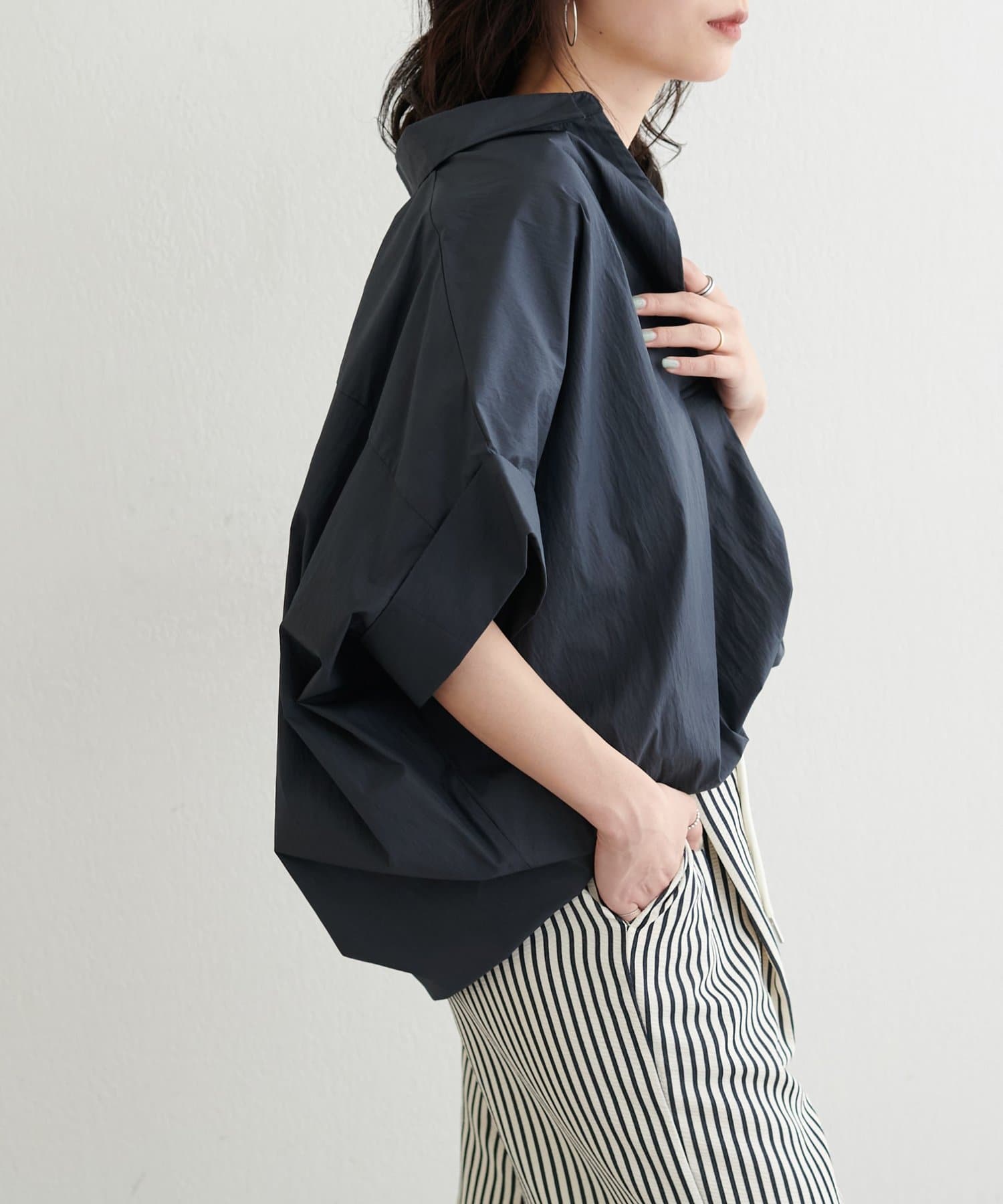 抜け感のあるスキッパーデザインと、軽やかな素材感が魅力のドルマンシャツ。