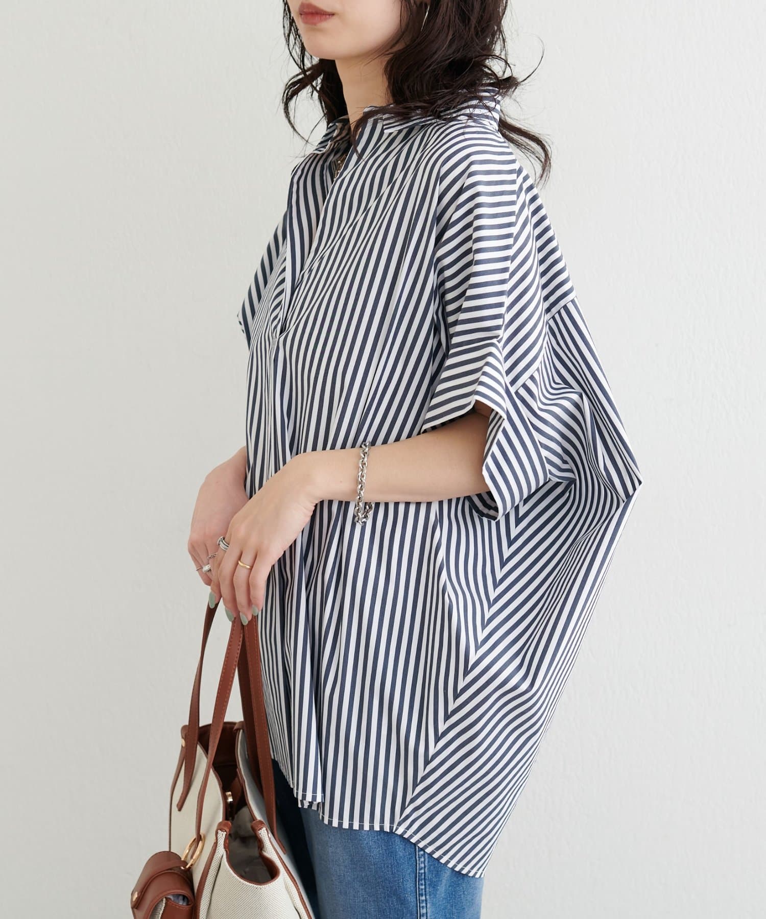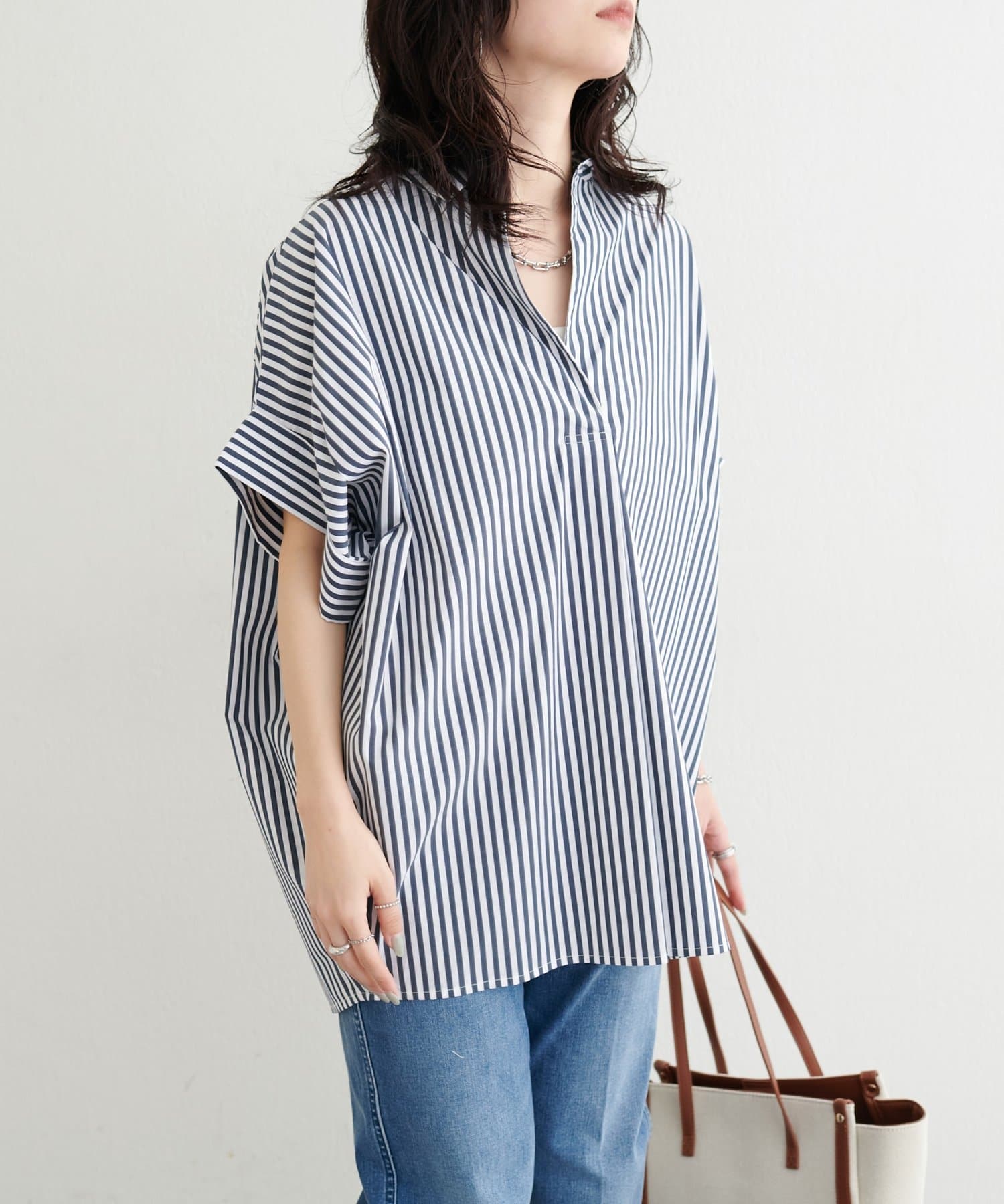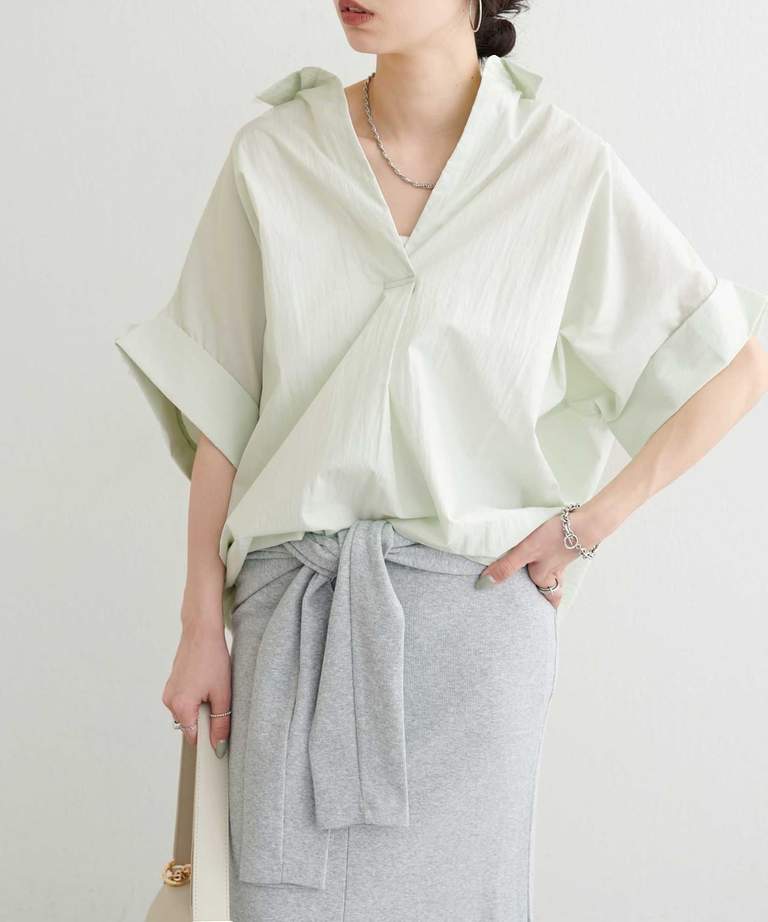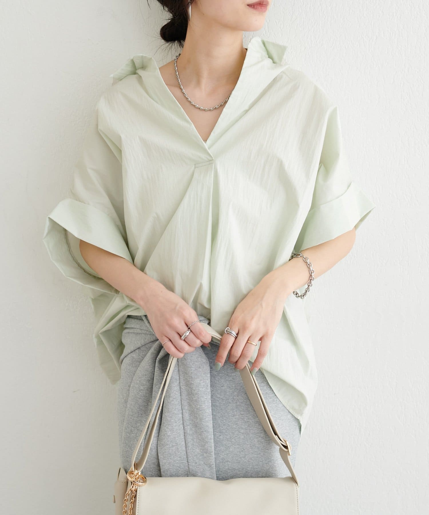 抜け感のあるスキッパーデザインと、軽やかな素材感が魅力のドルマンシャツ。
