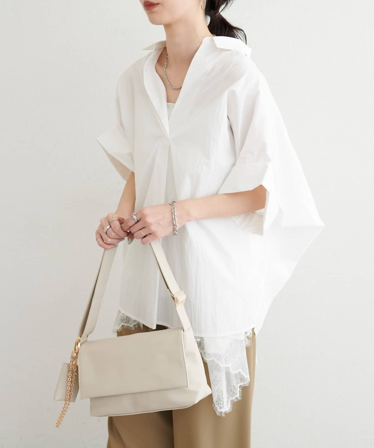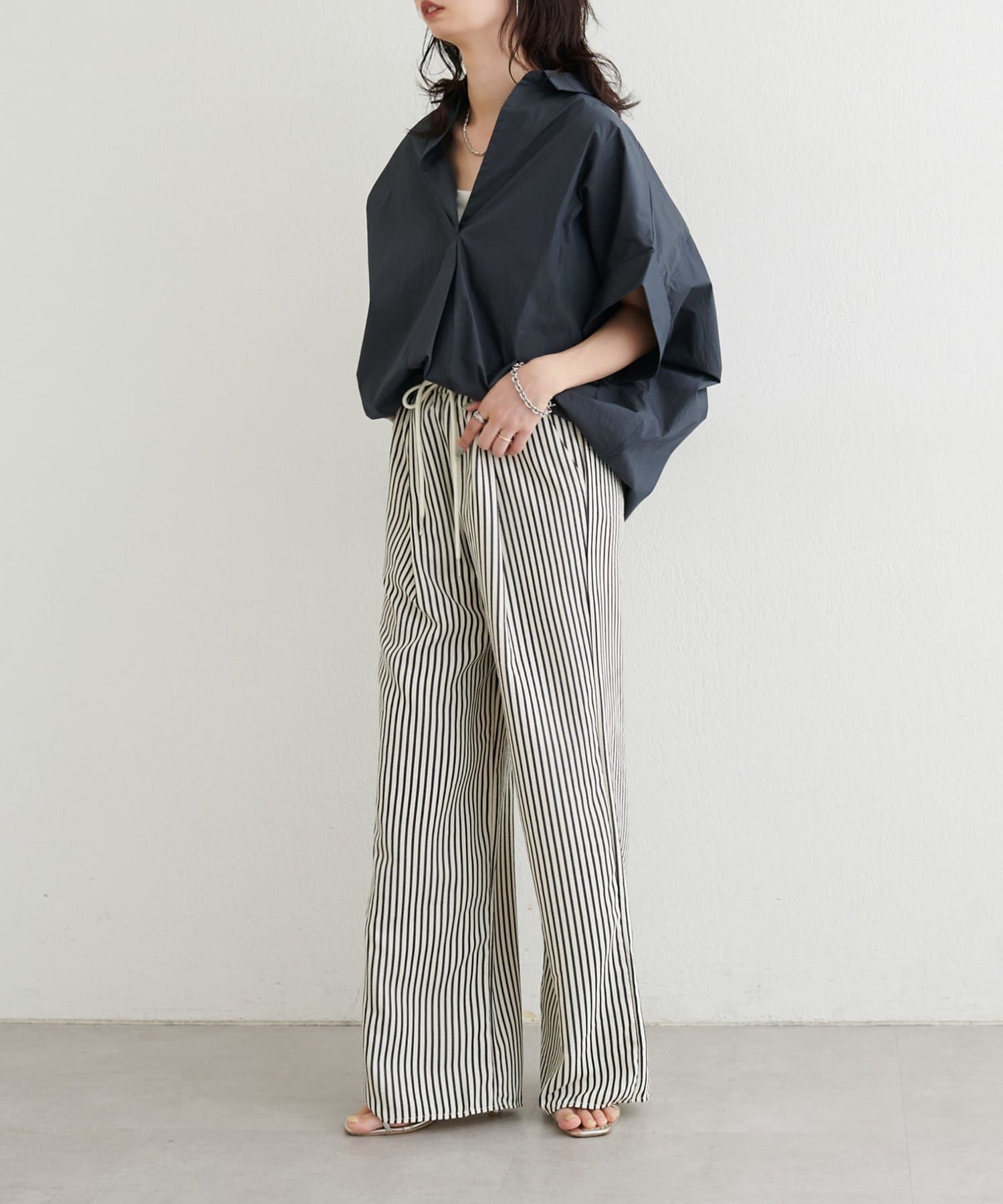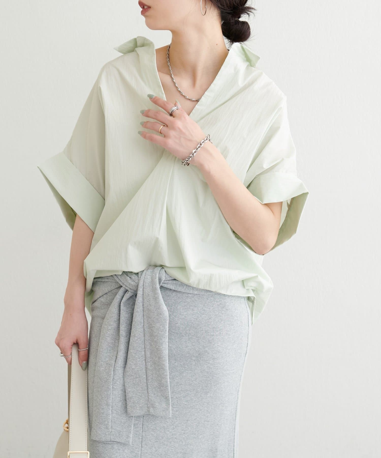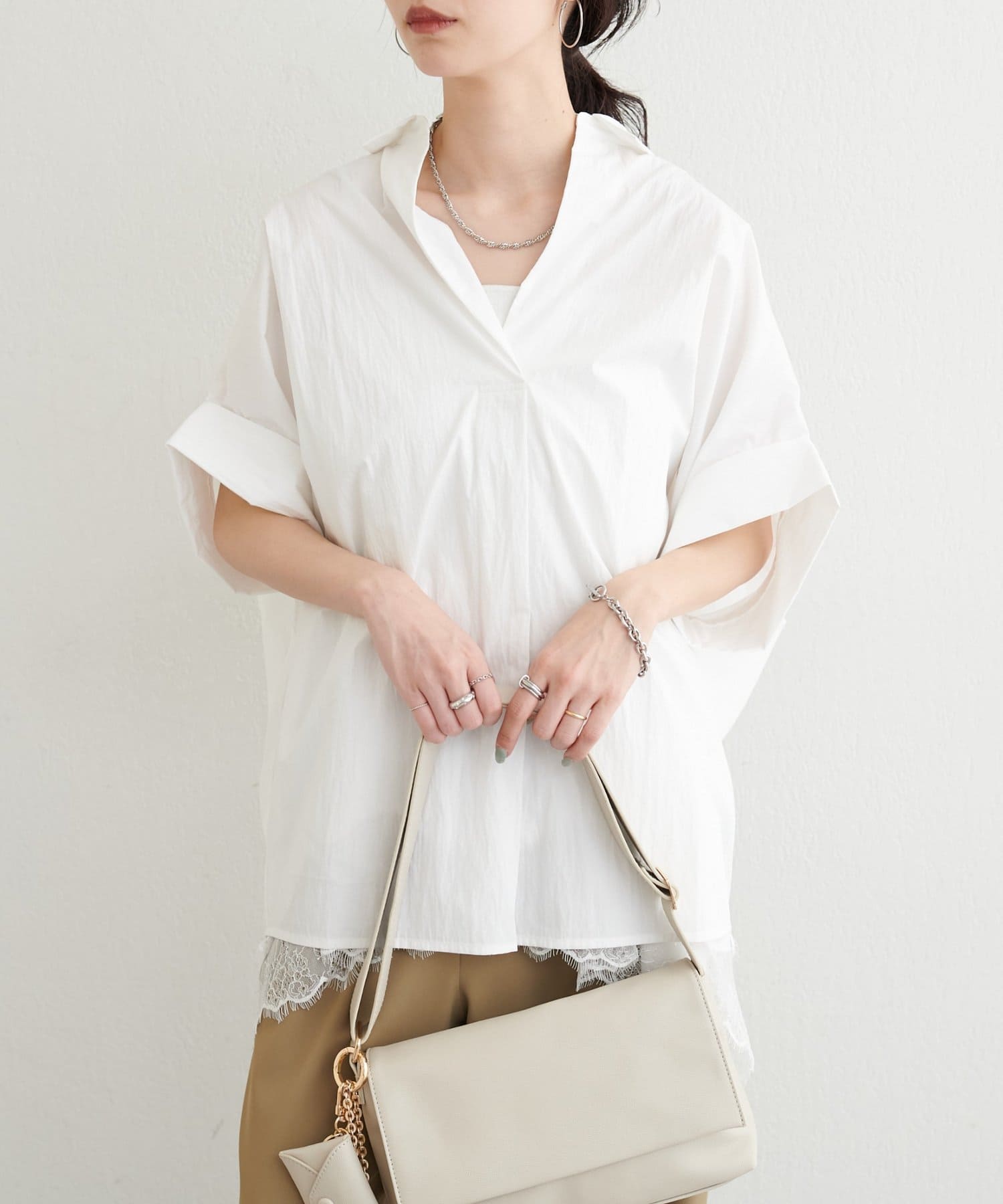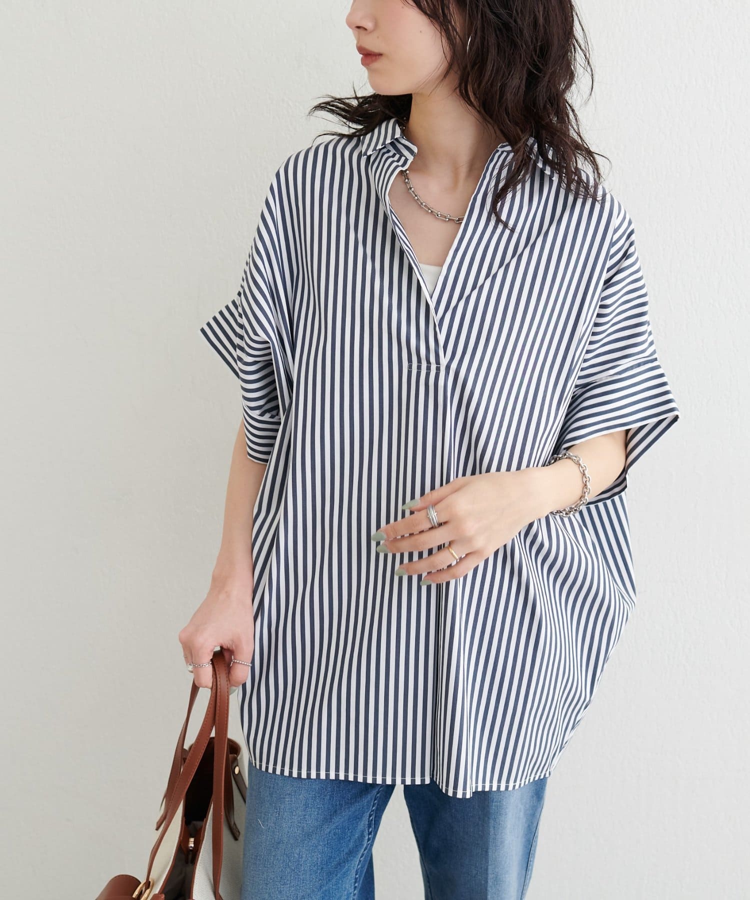 抜け感のあるスキッパーデザインと、軽やかな素材感が魅力のドルマンシャツ。