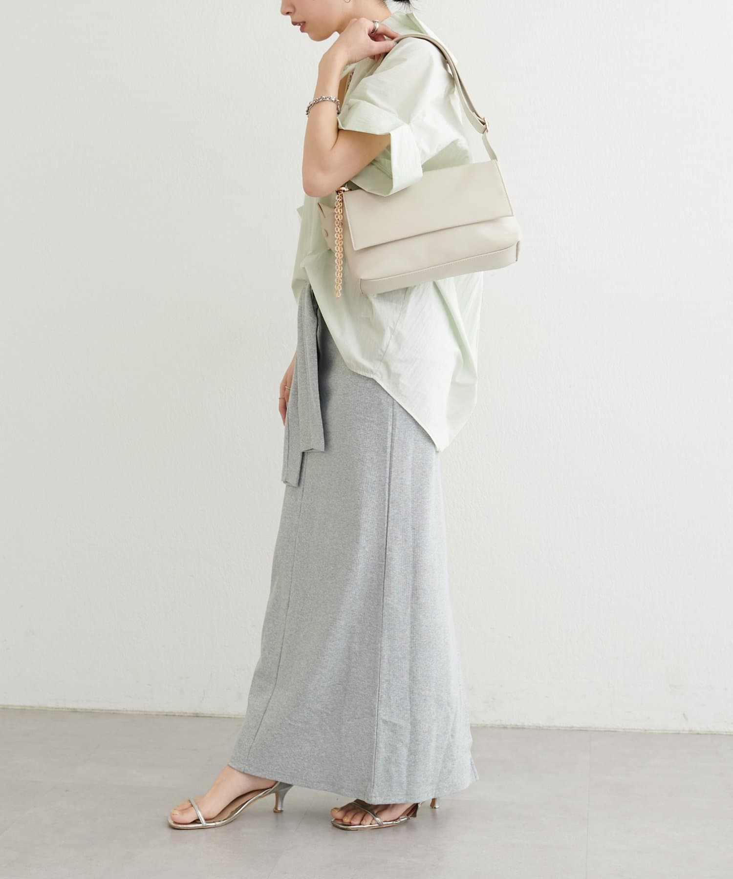 スカートと合わせて柔らかい雰囲気に仕上げるのも◎。
