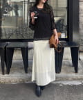 体のラインを拾いにくい、程よいサイズ感と、全体のシアー感で抜け感をプラス。