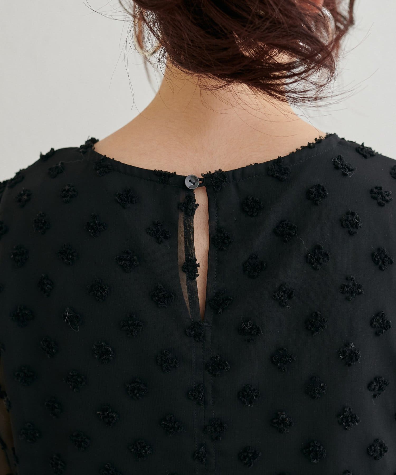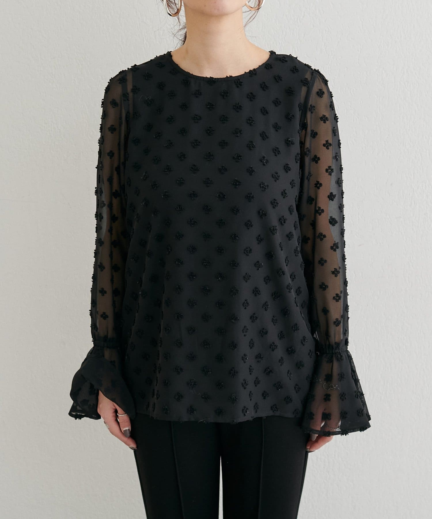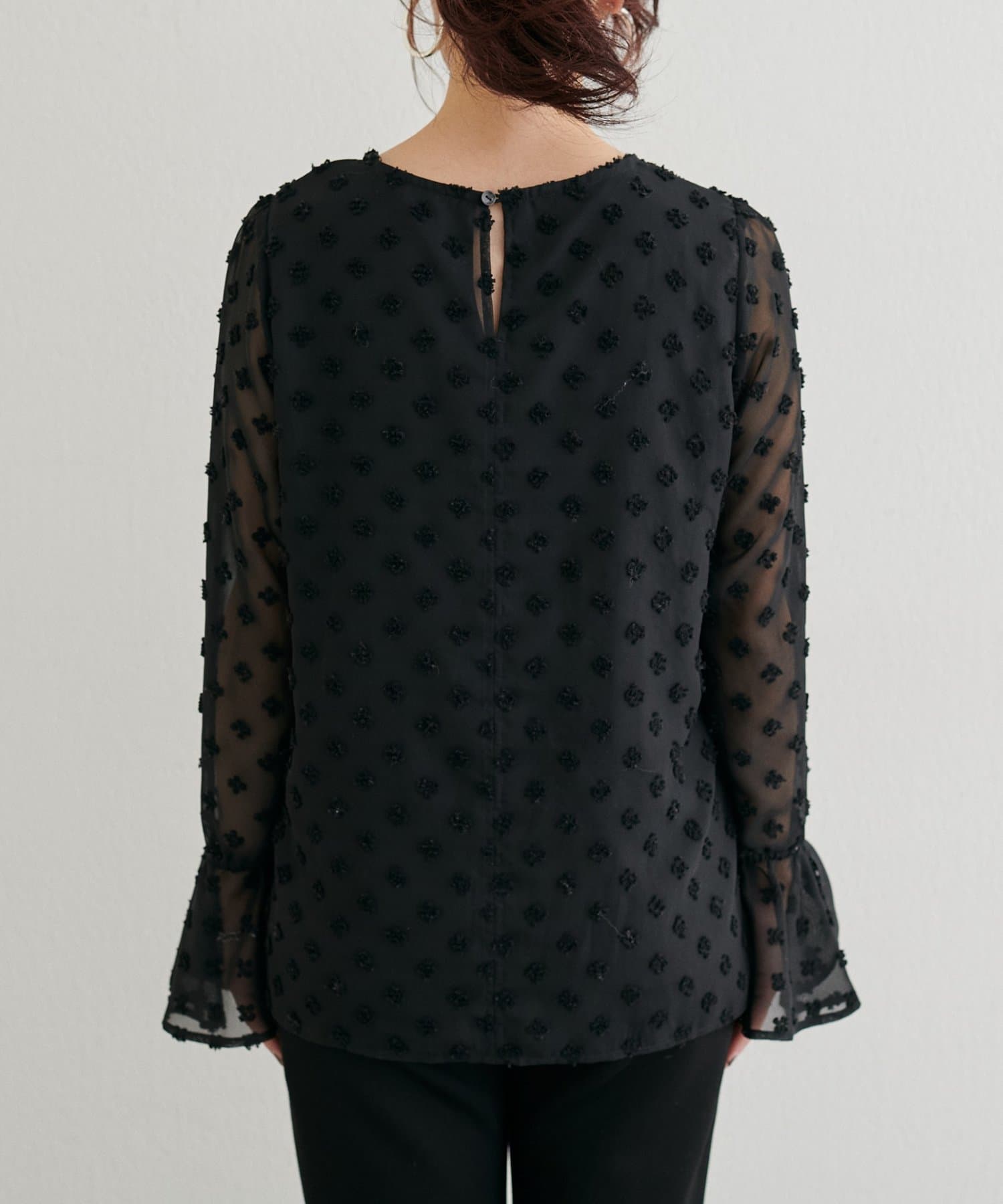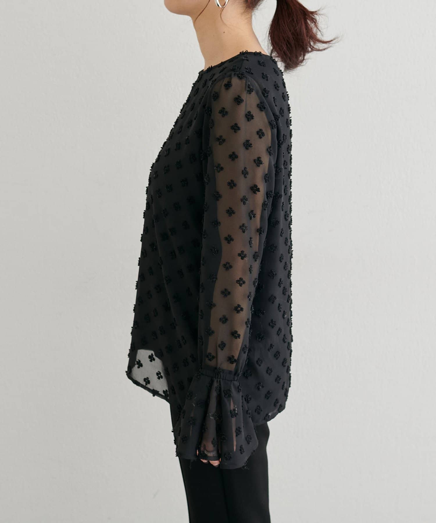 [Yurie企画]フラワードット柄ジャガードシアーブラウス