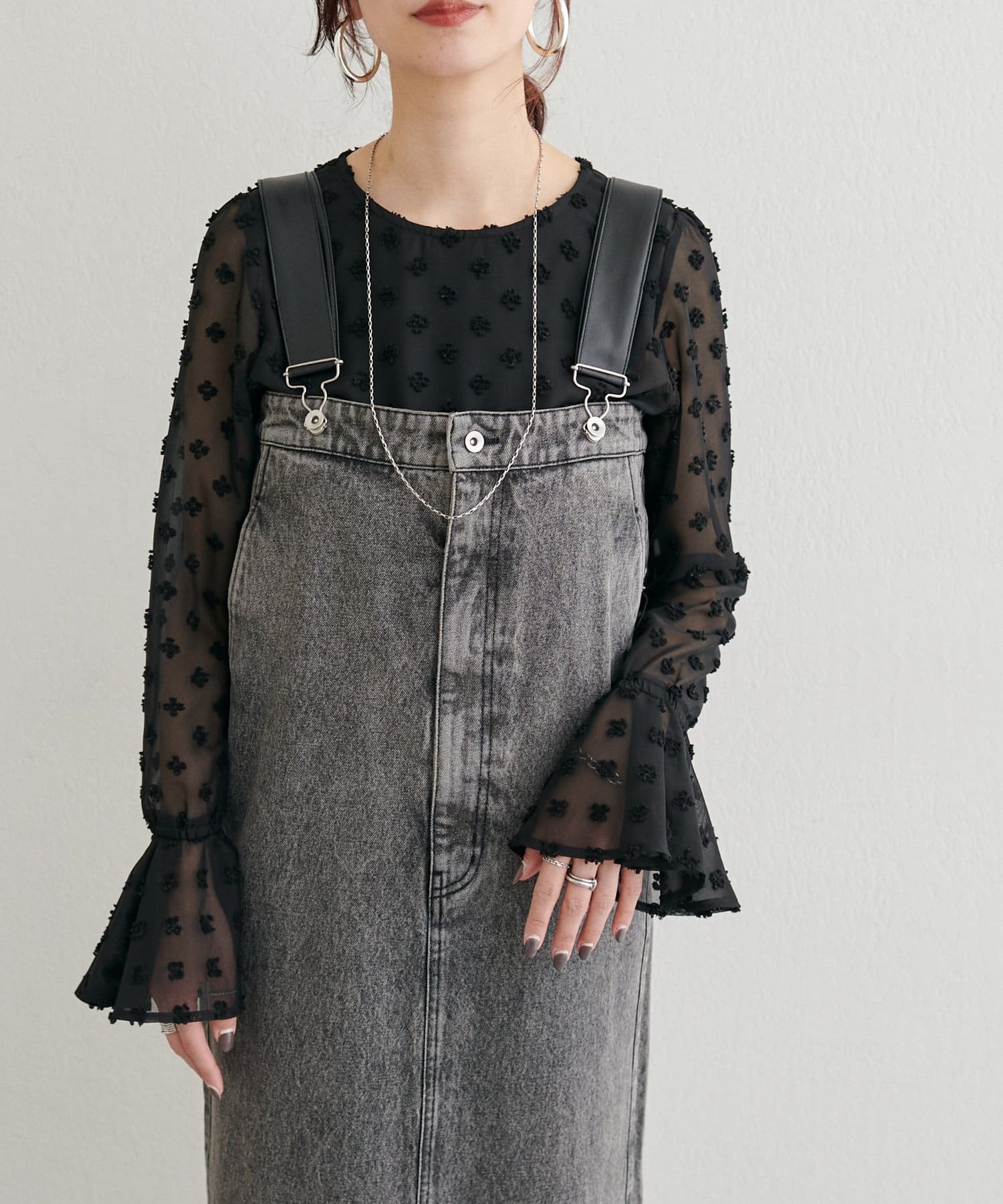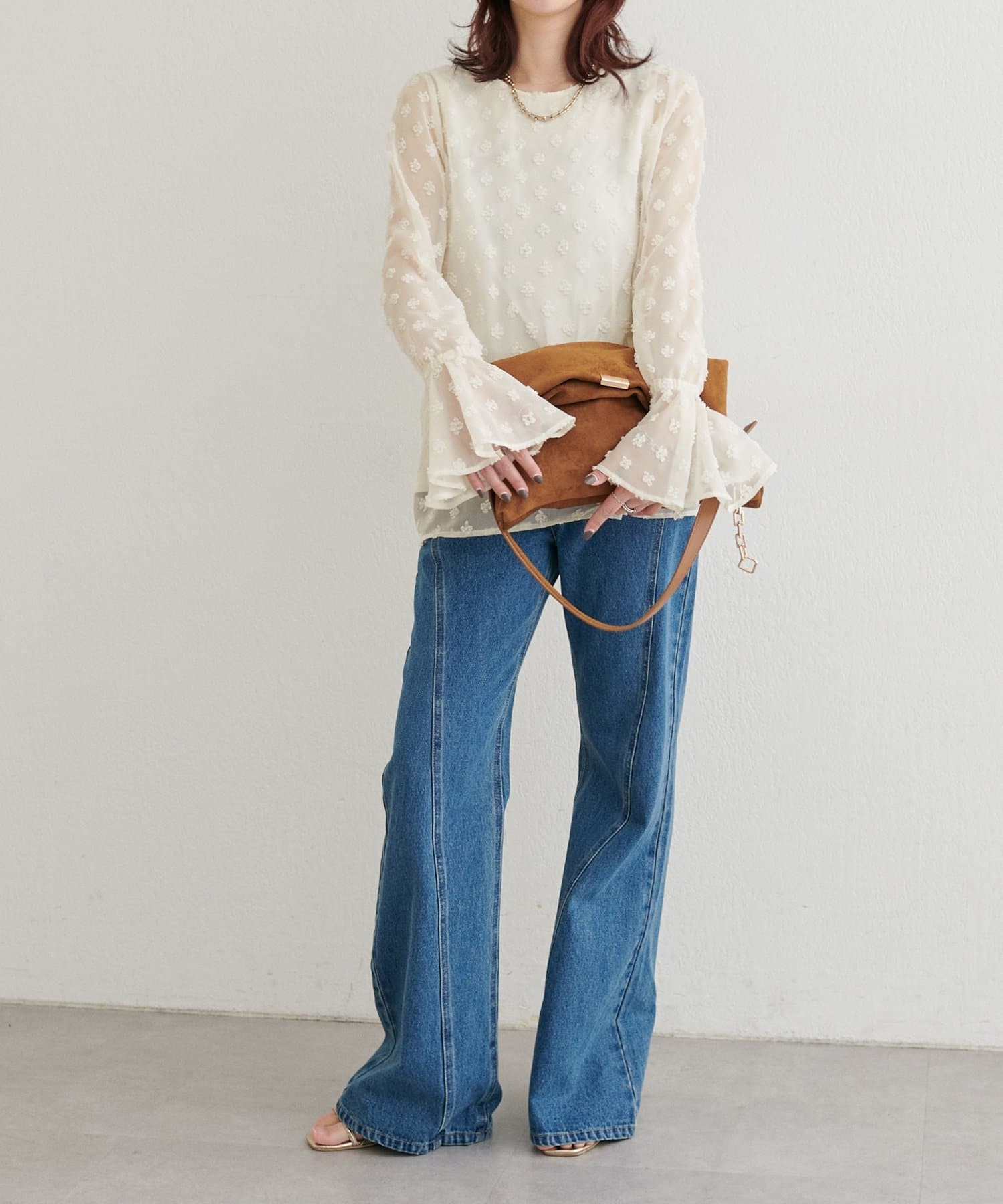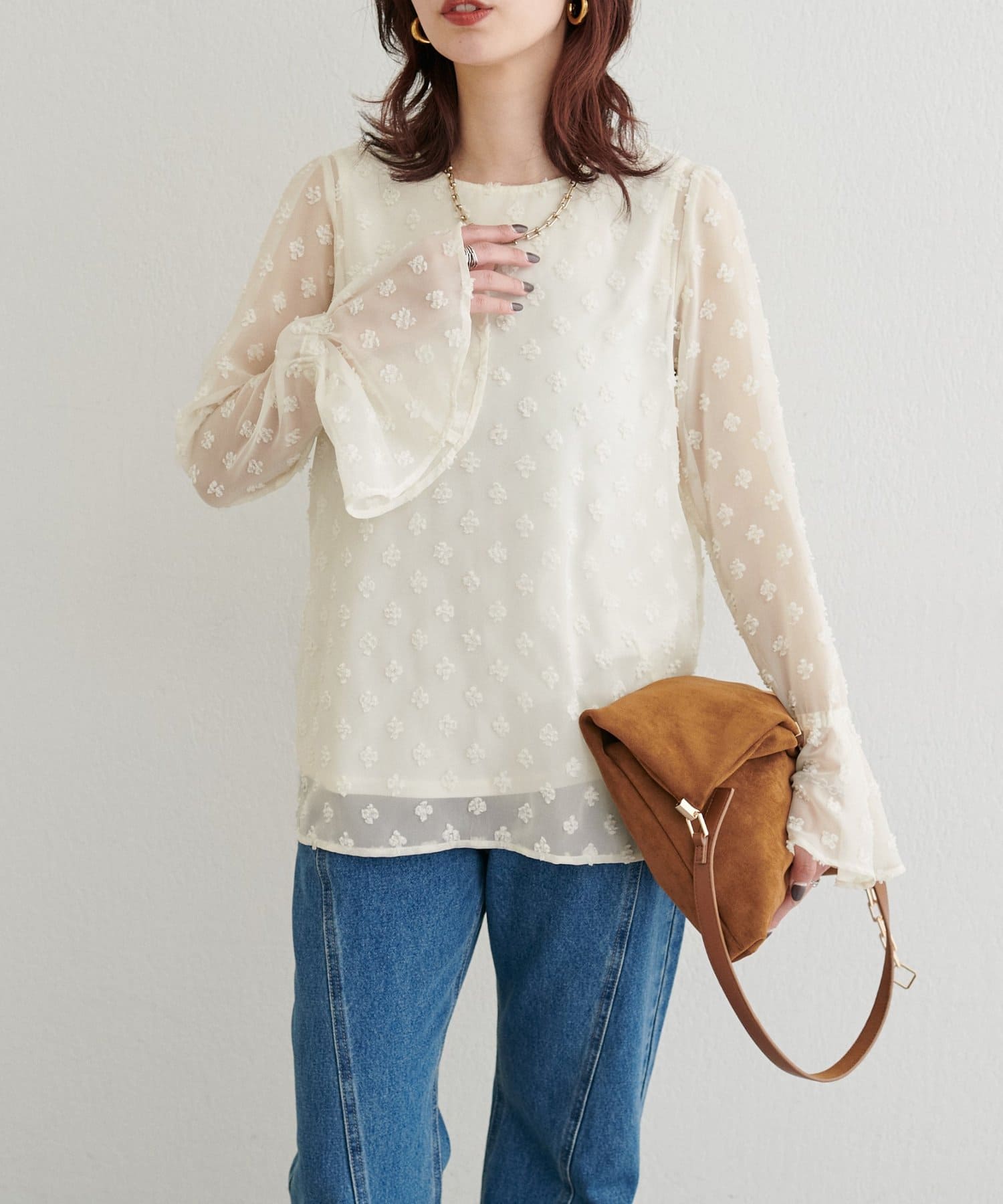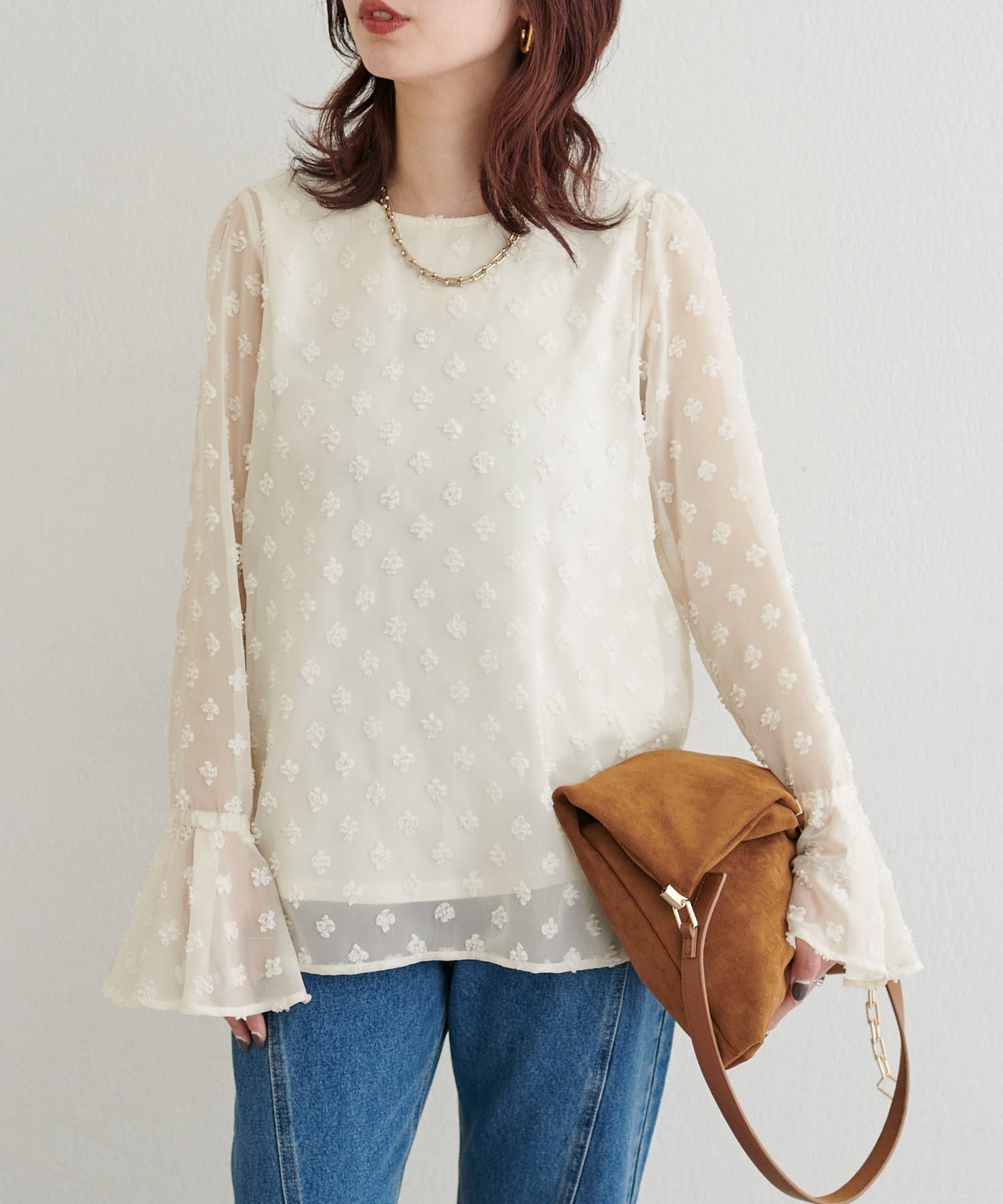 [Yurie企画]フラワードット柄ジャガードシアーブラウス