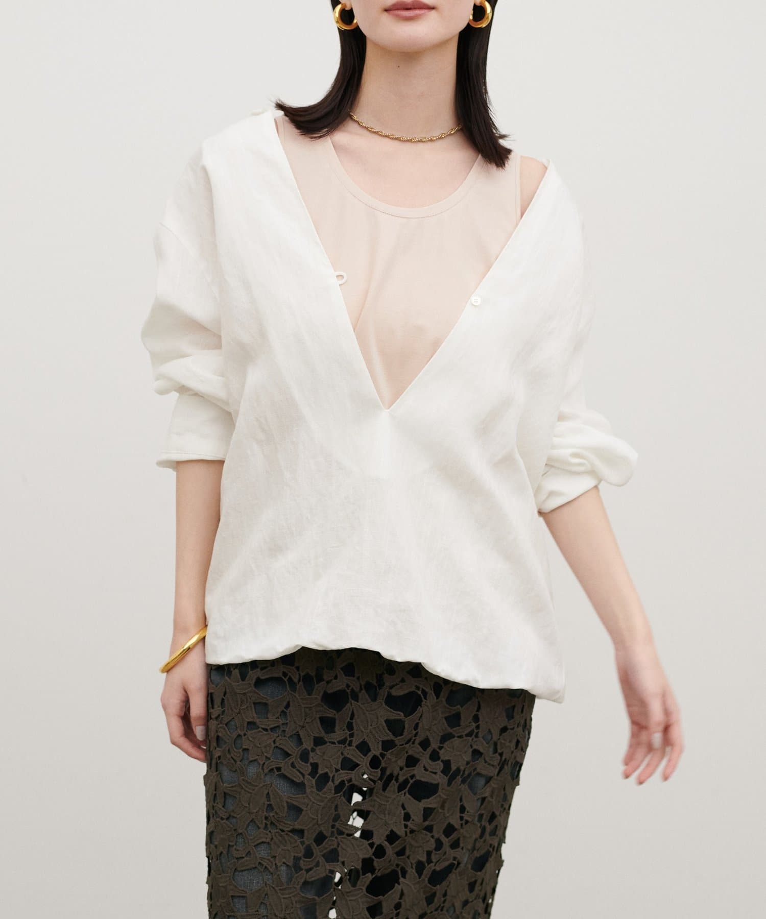 1枚で簡単にレイヤードスタイルが楽しめるブラウスが登場。