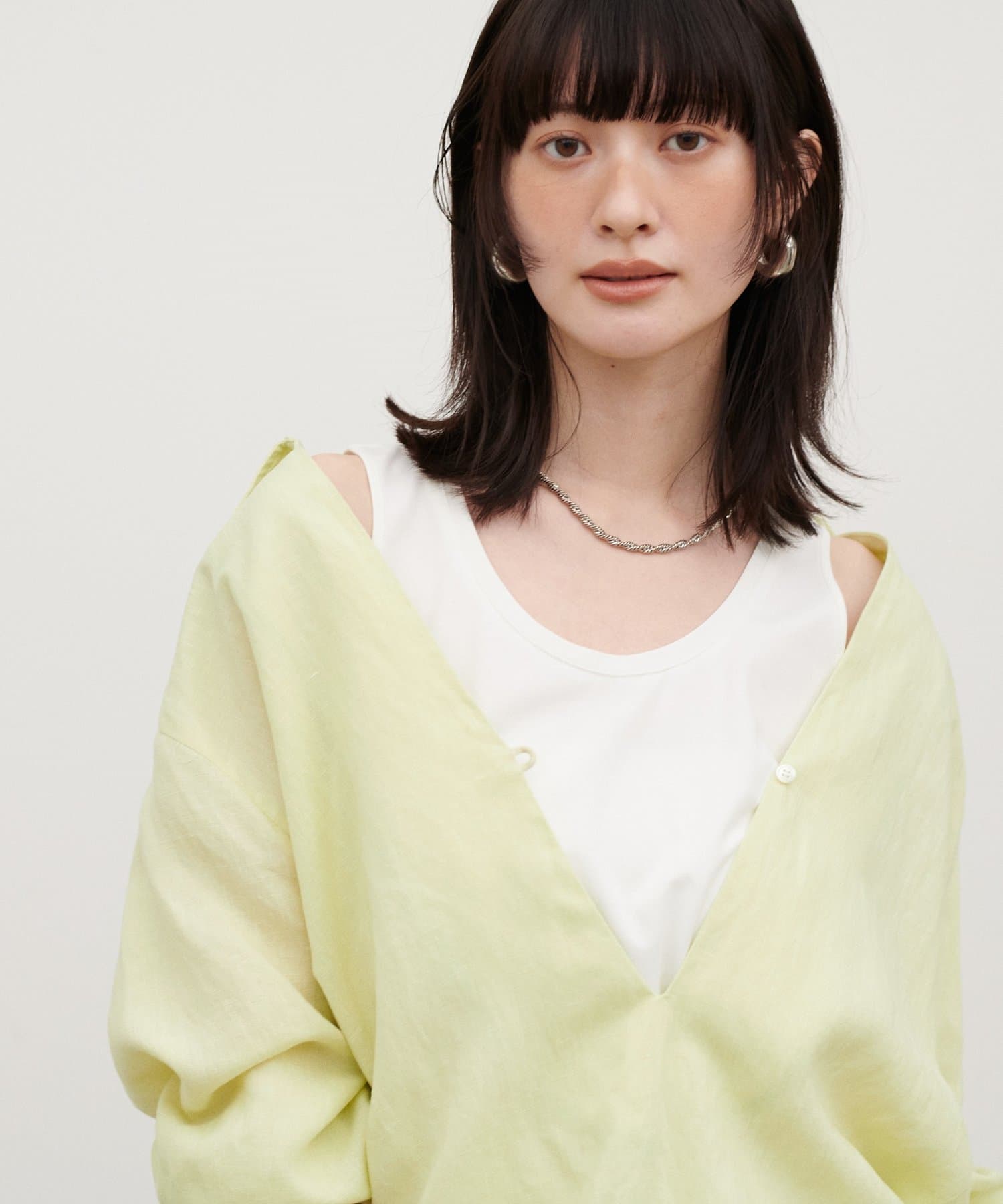 1枚でまるでレイヤードのような着こなしが楽しめるアイテムなので、