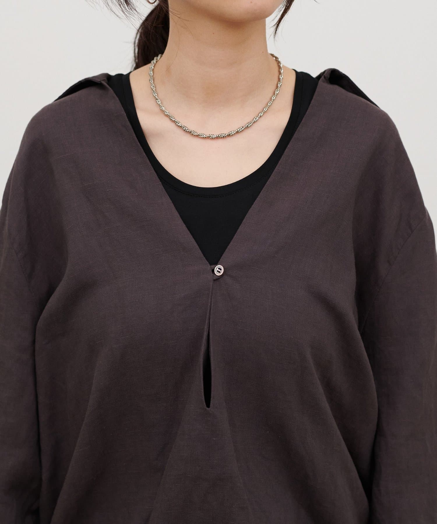 スキッパー衿のブラウスに、タンクトップがドッキングした仕様。