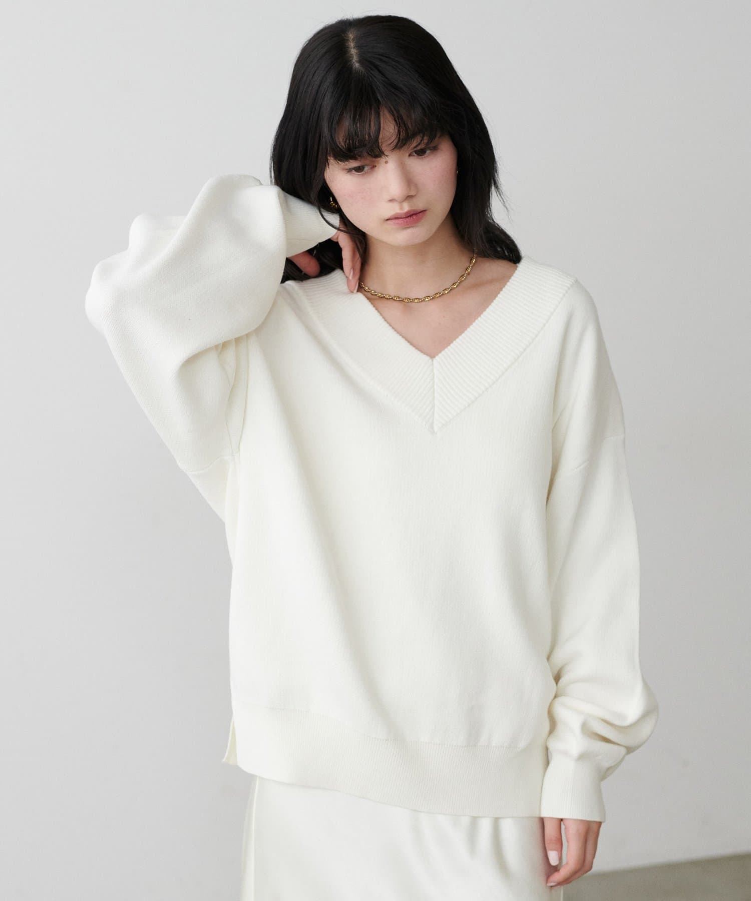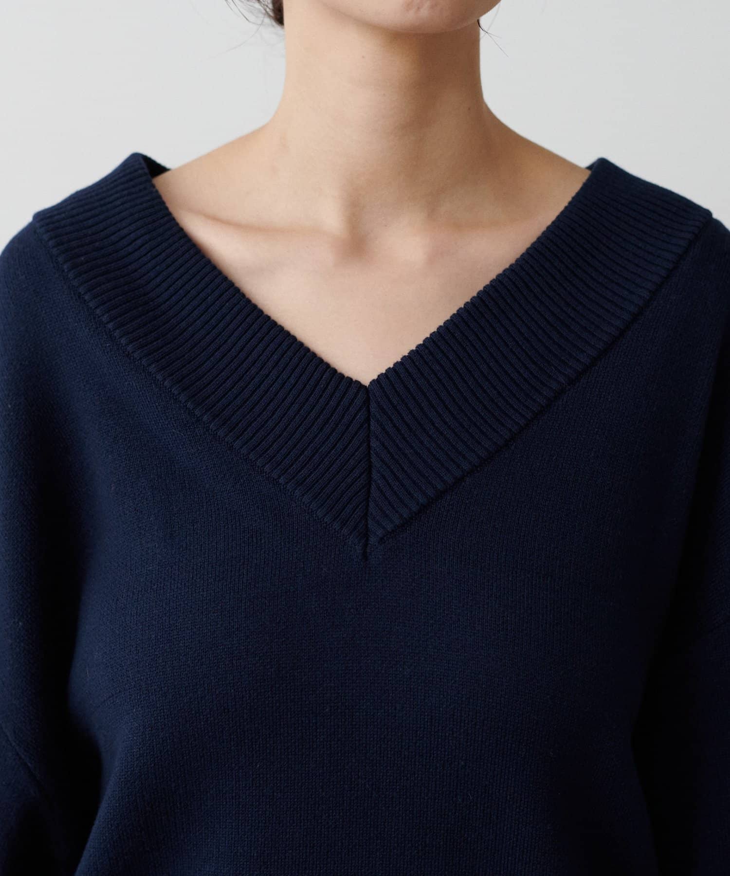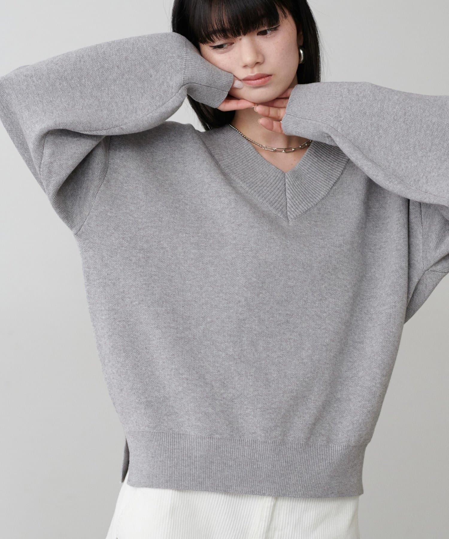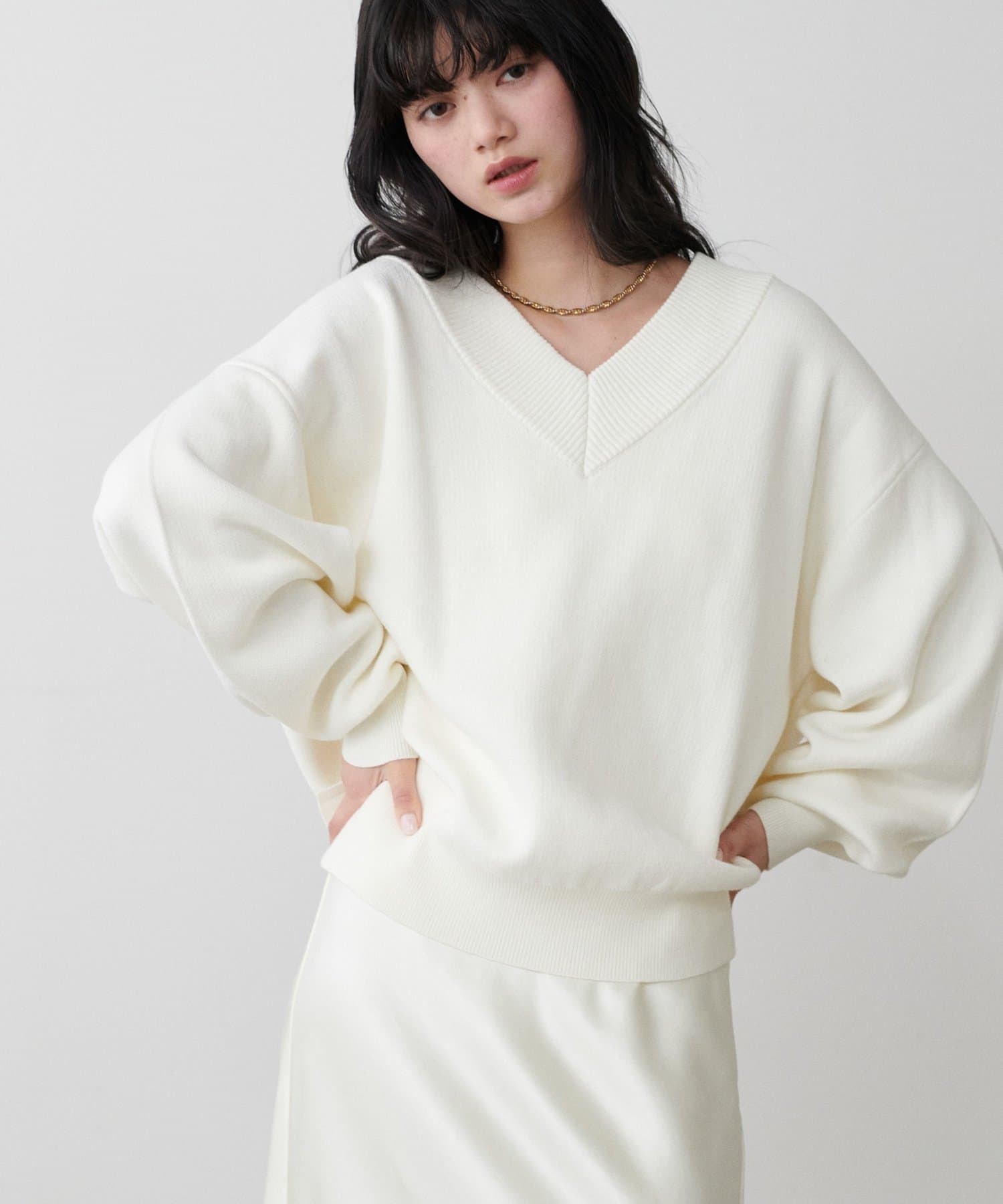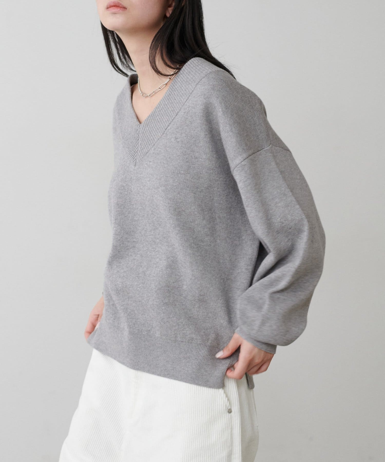 ニットの柔らかさと、スウェットのようなカジュアルさを両立したVネックプルオーバー。