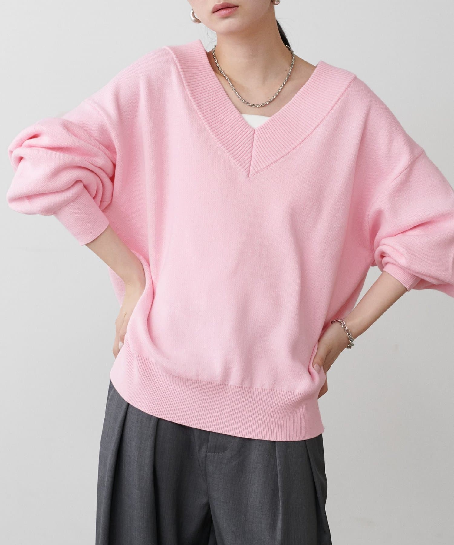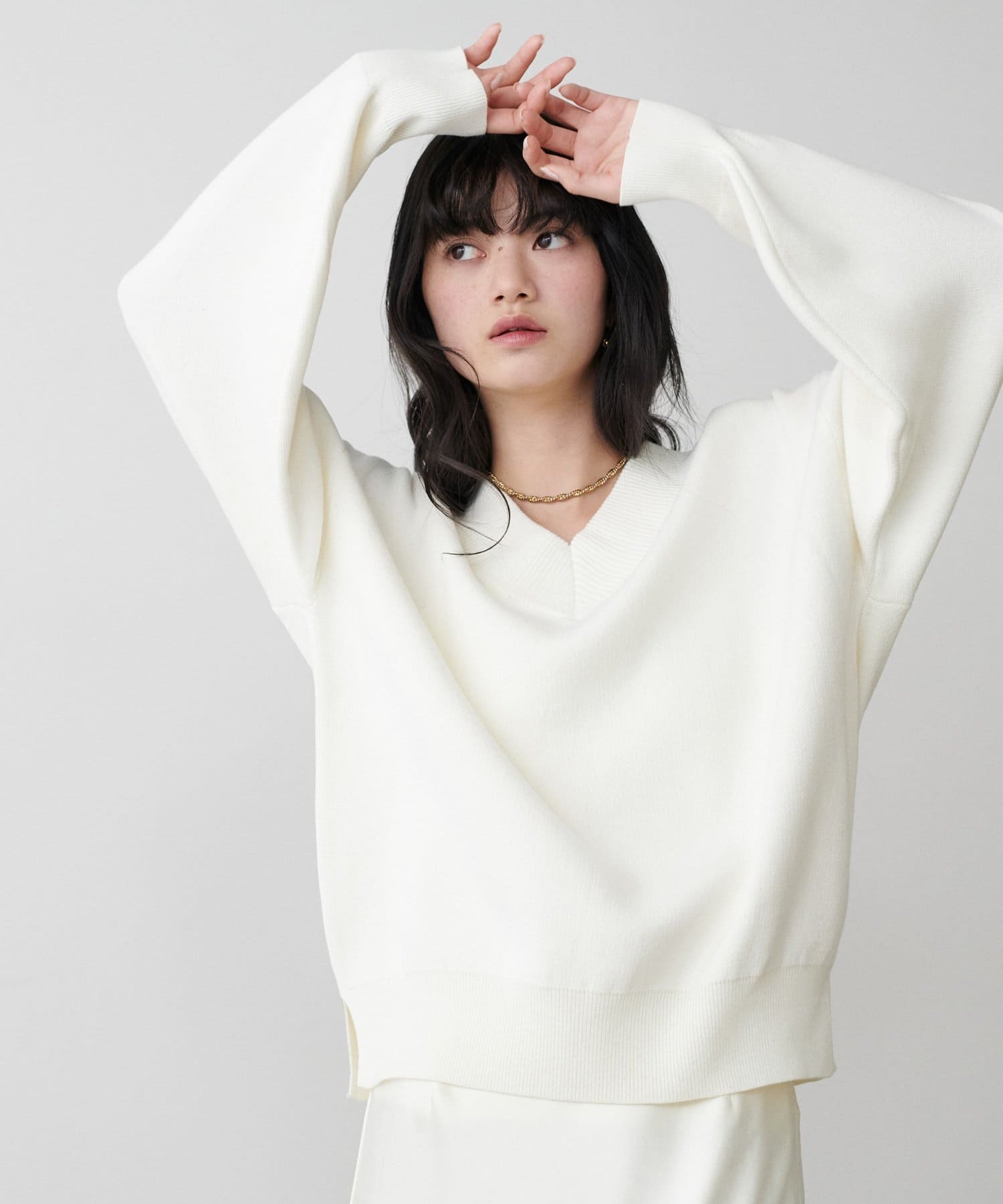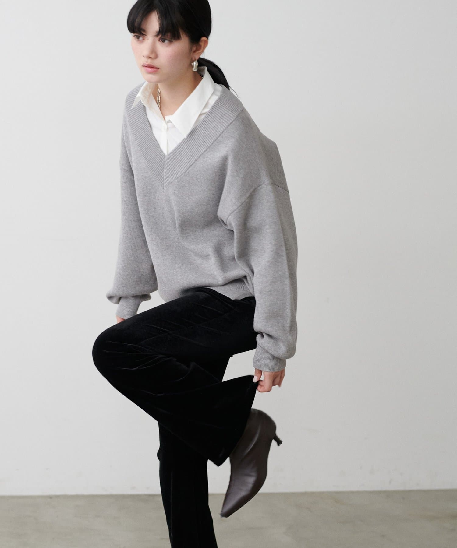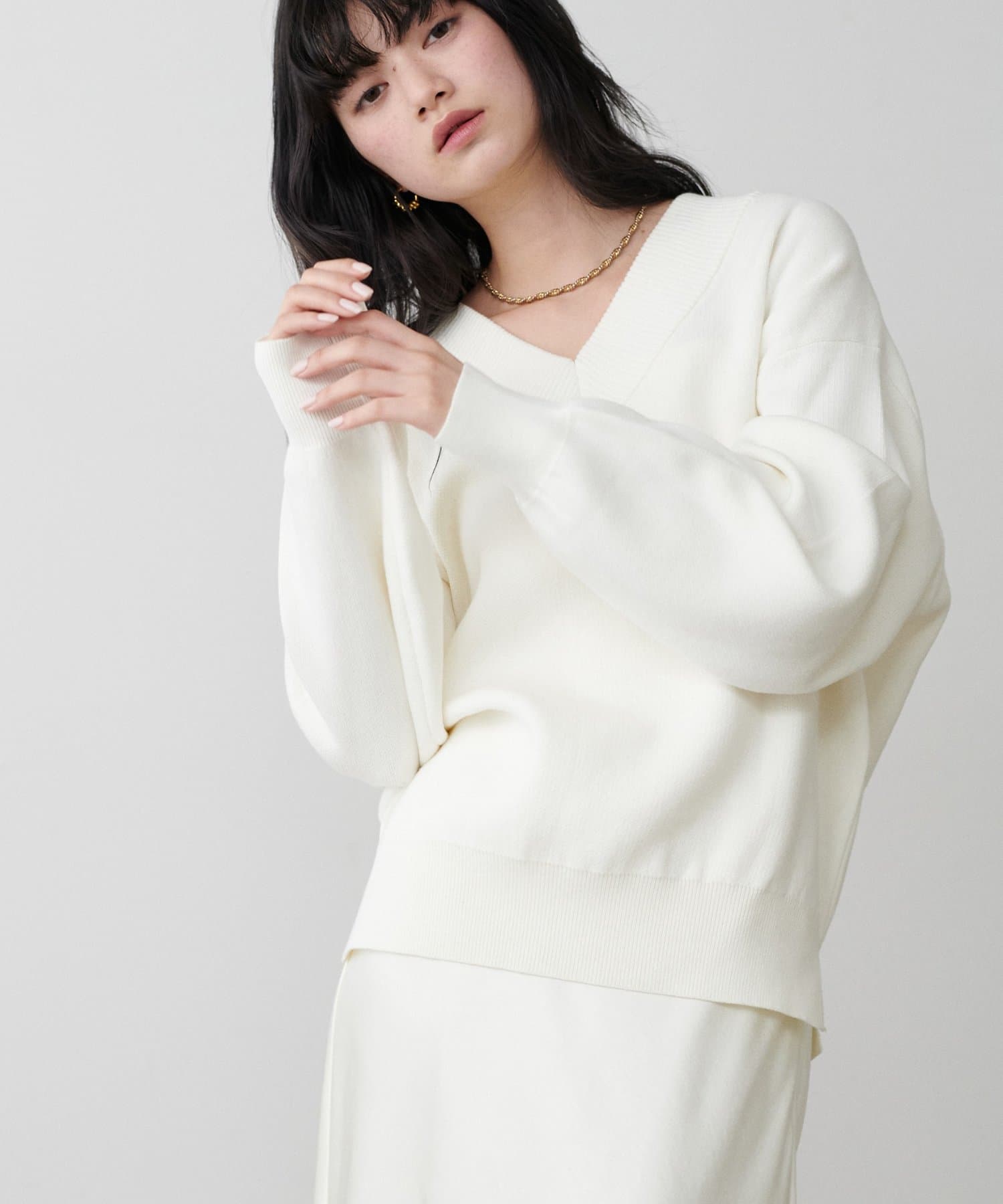 ニットの柔らかさと、スウェットのようなカジュアルさを両立したVネックプルオーバー。