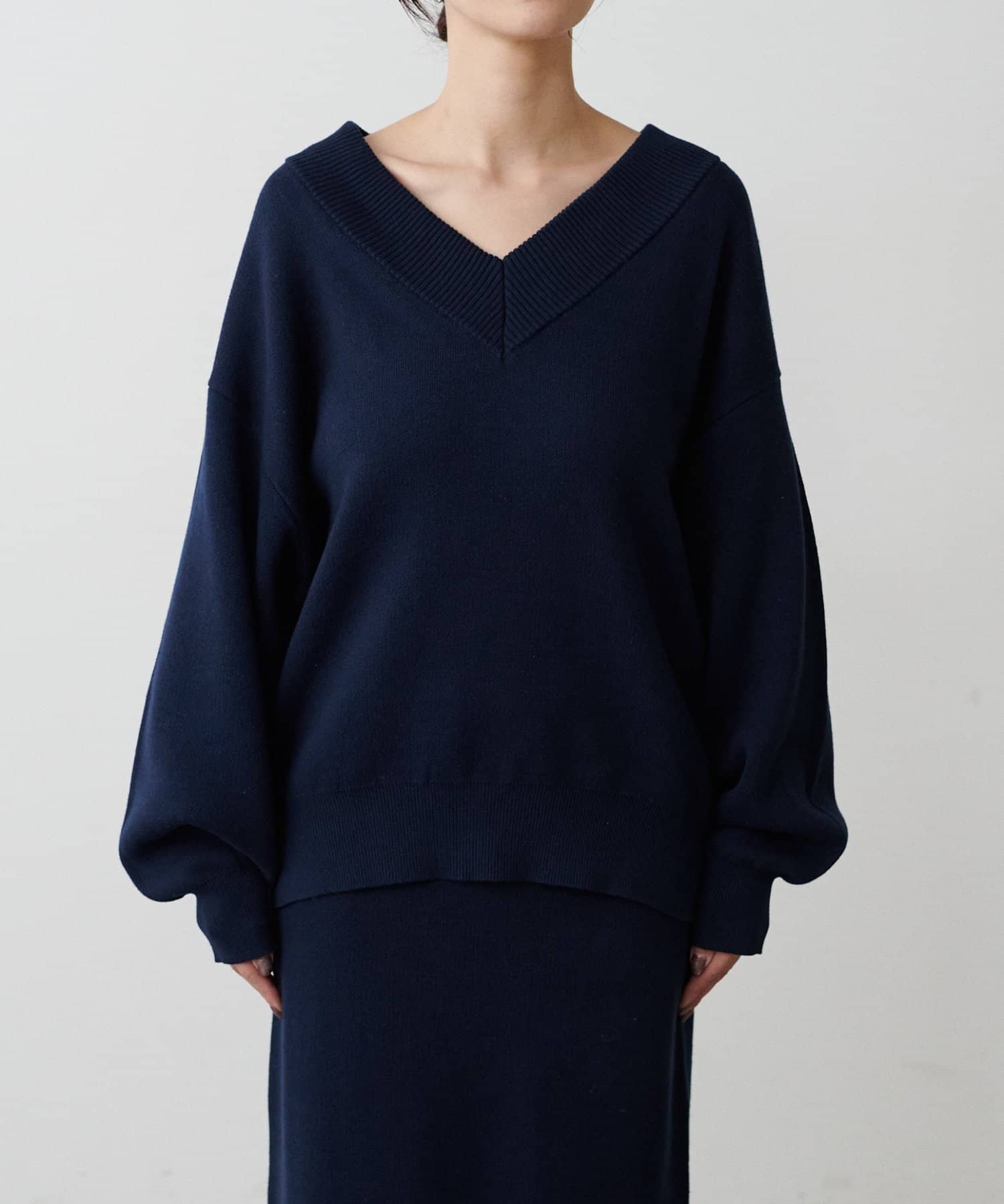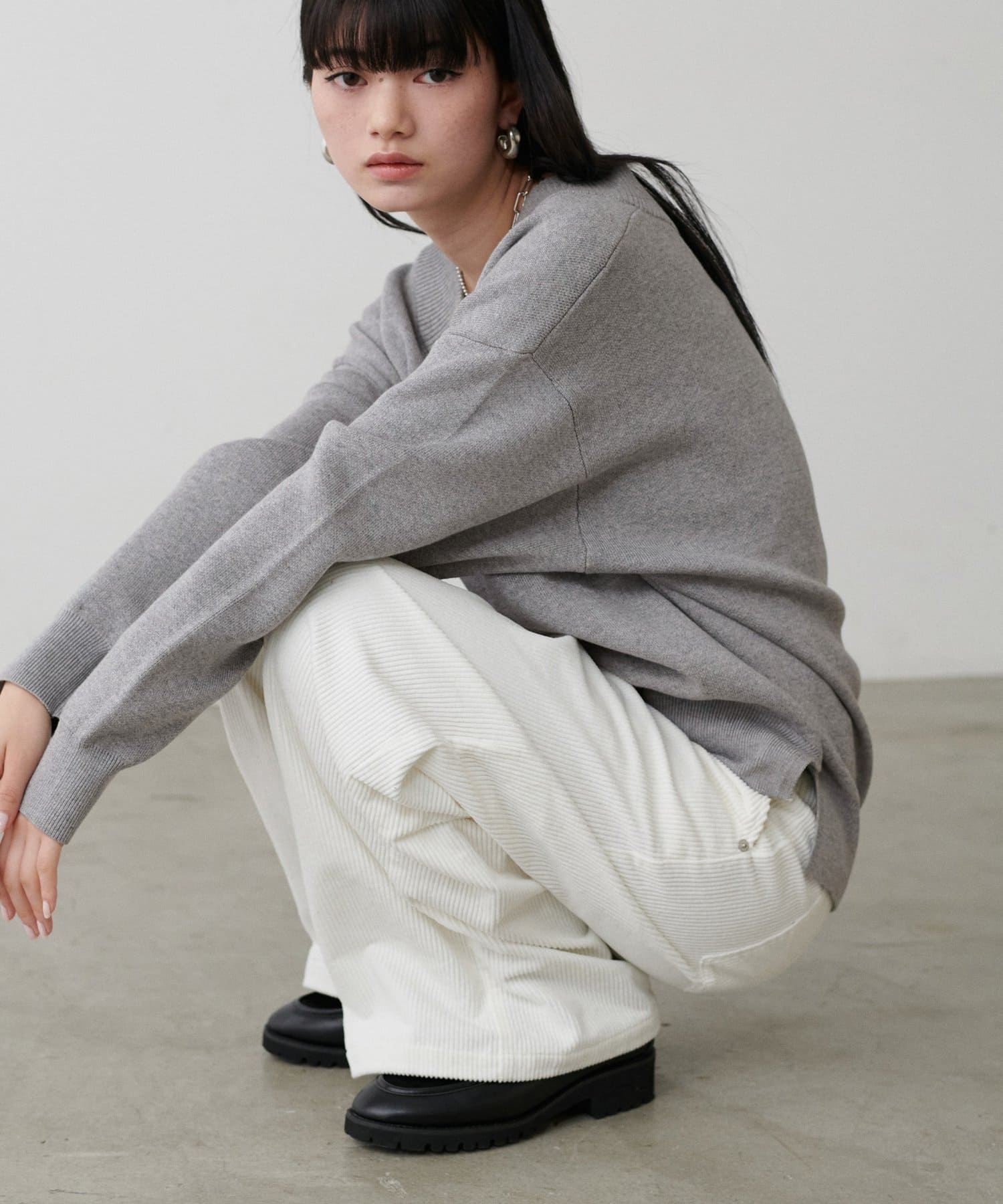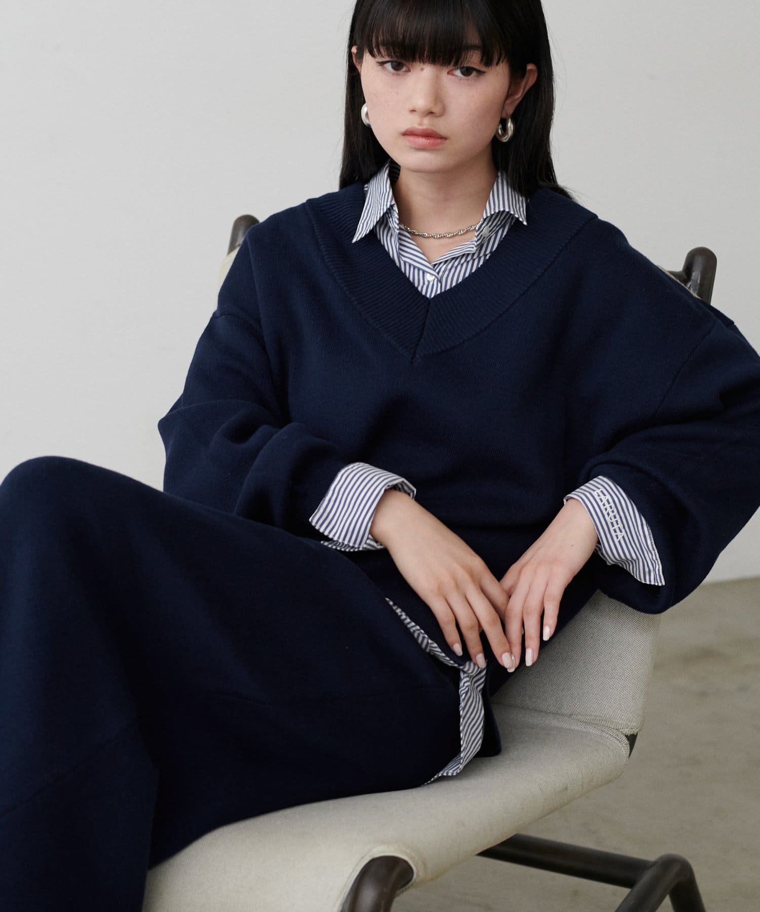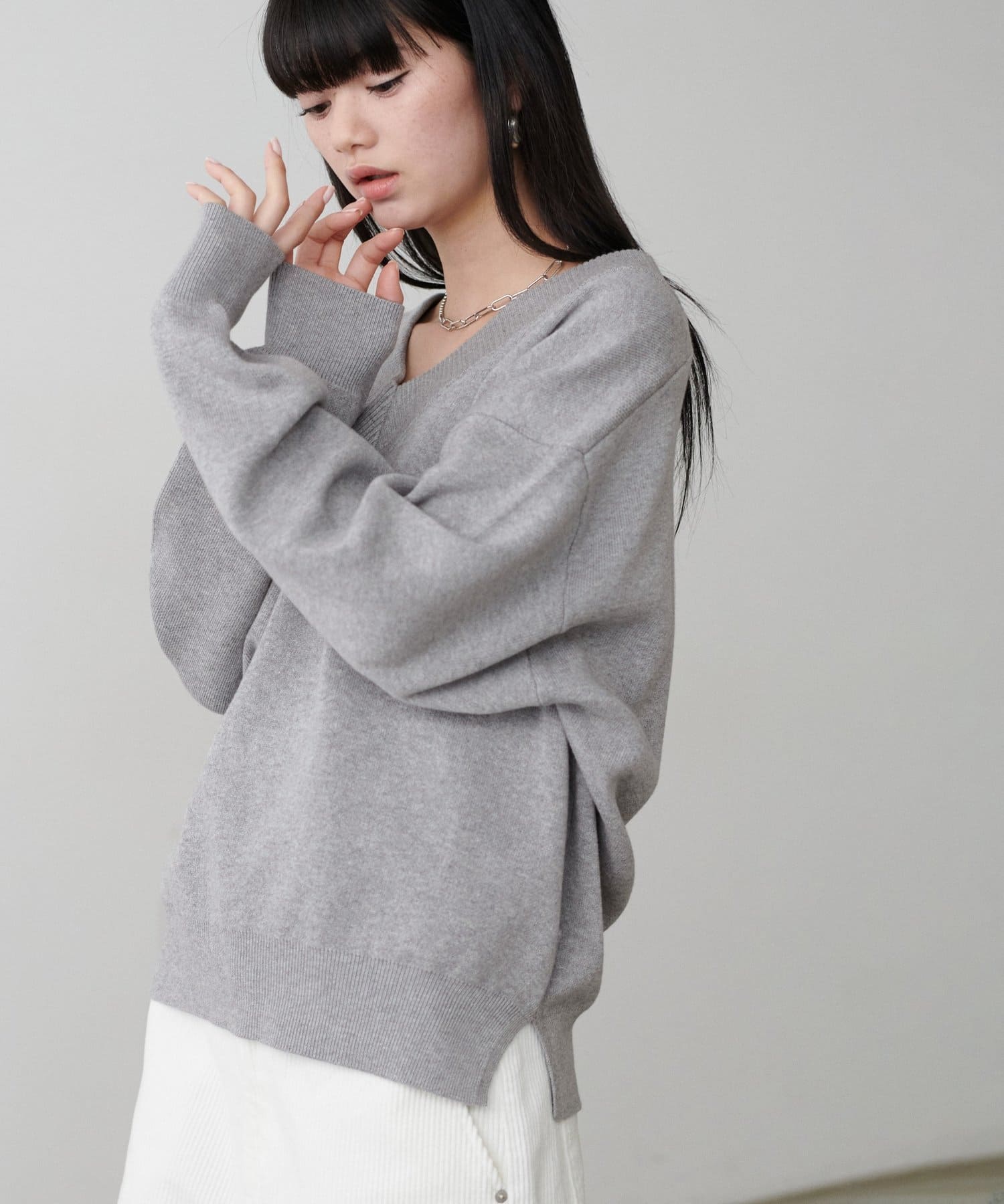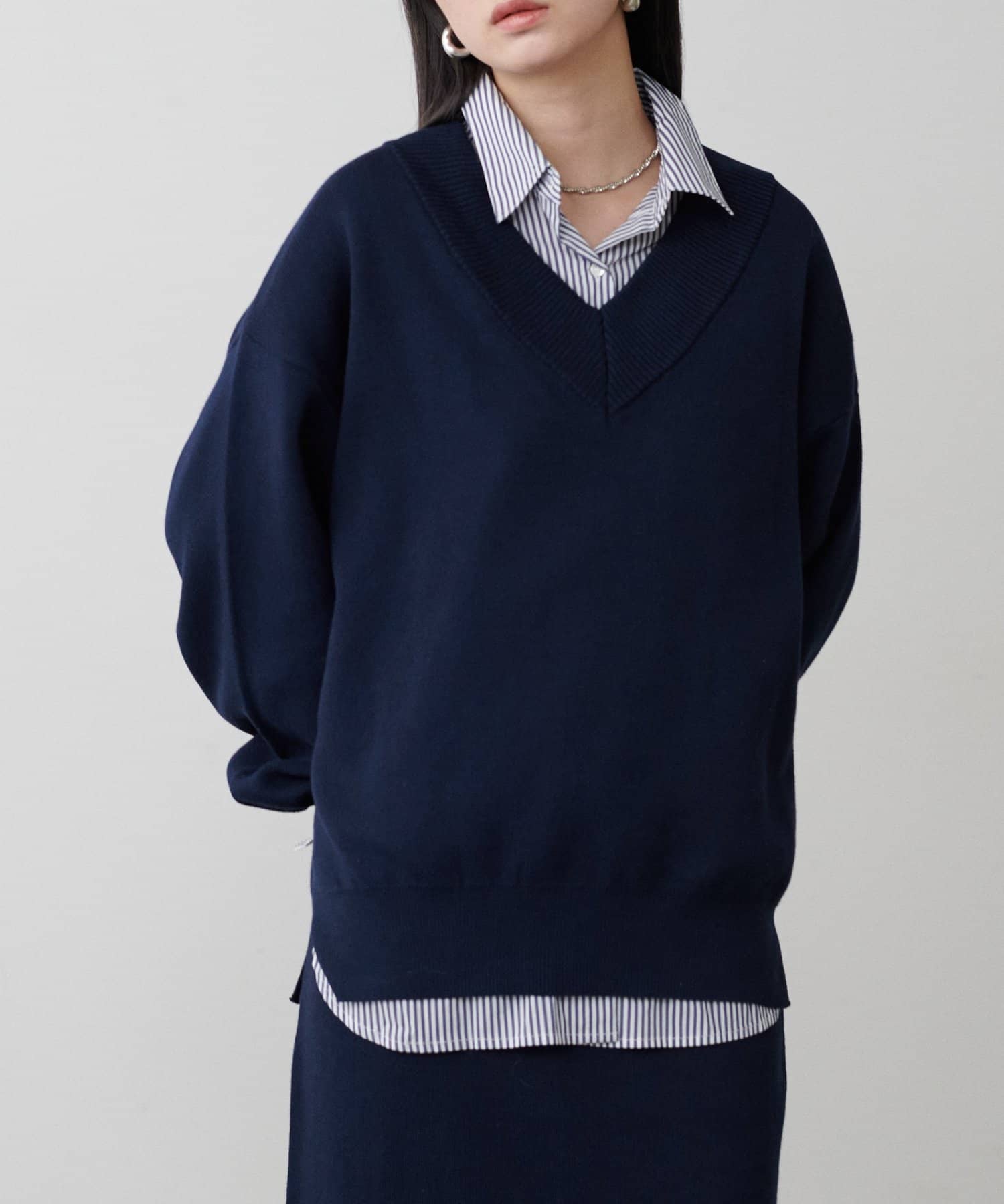 ニットの柔らかさと、スウェットのようなカジュアルさを両立したVネックプルオーバー。