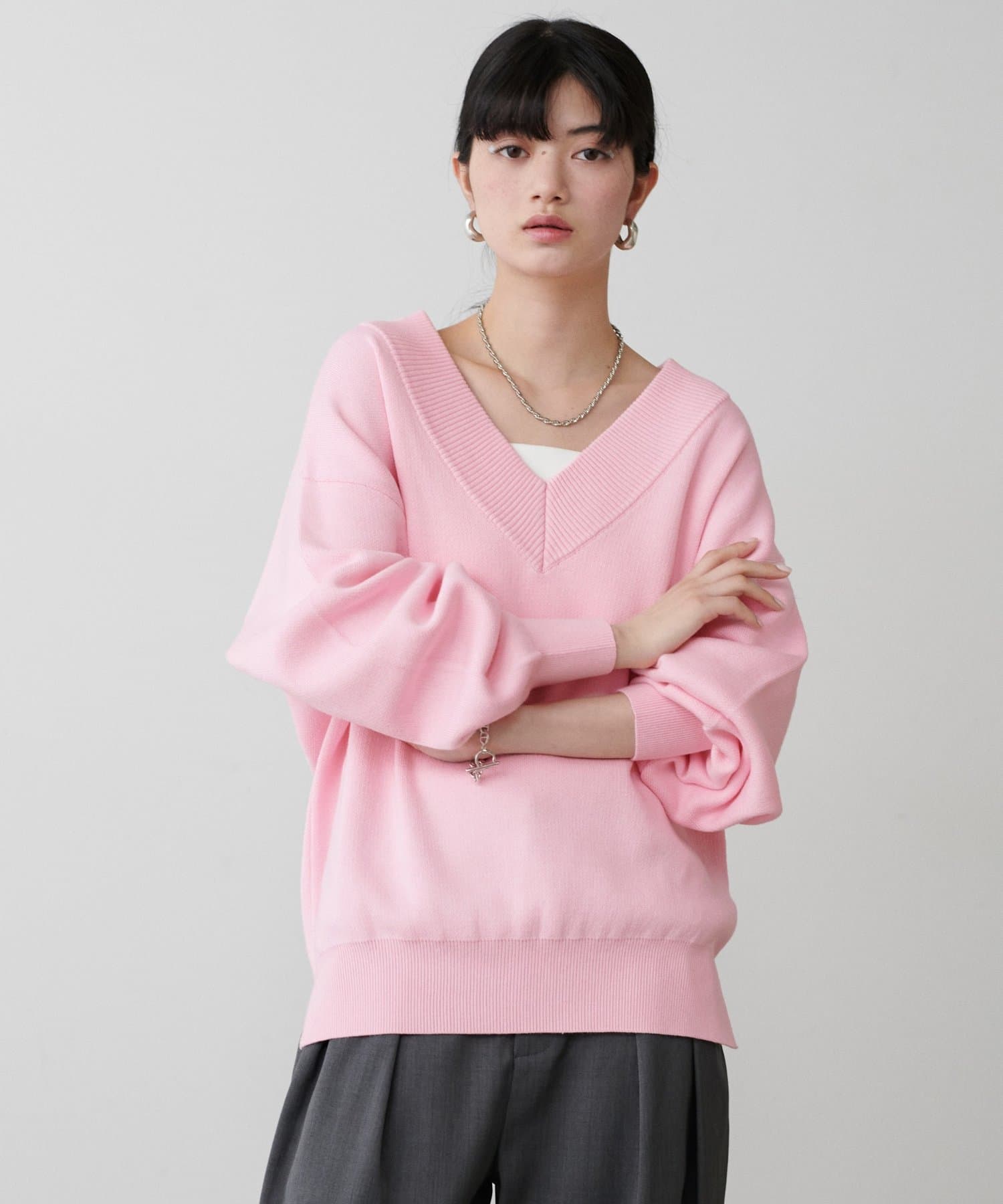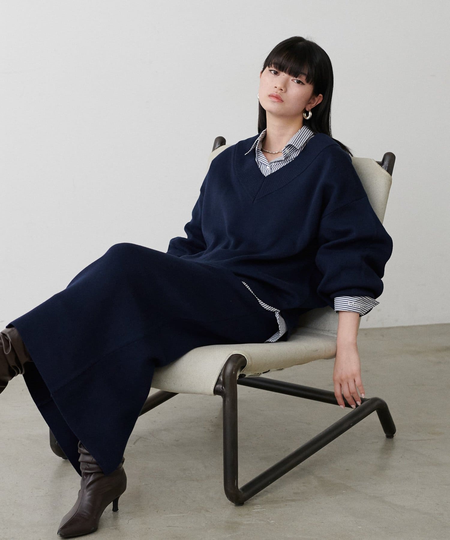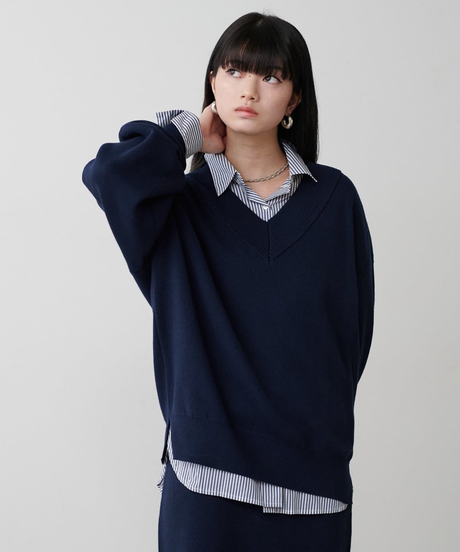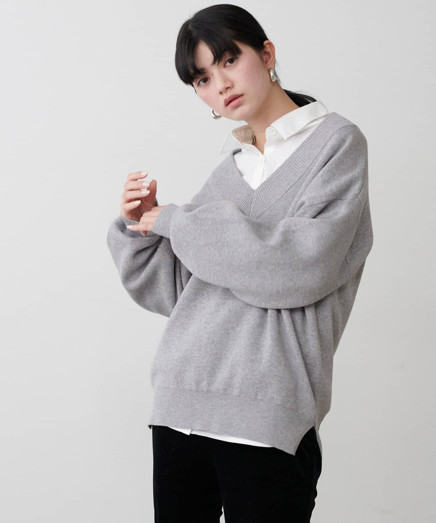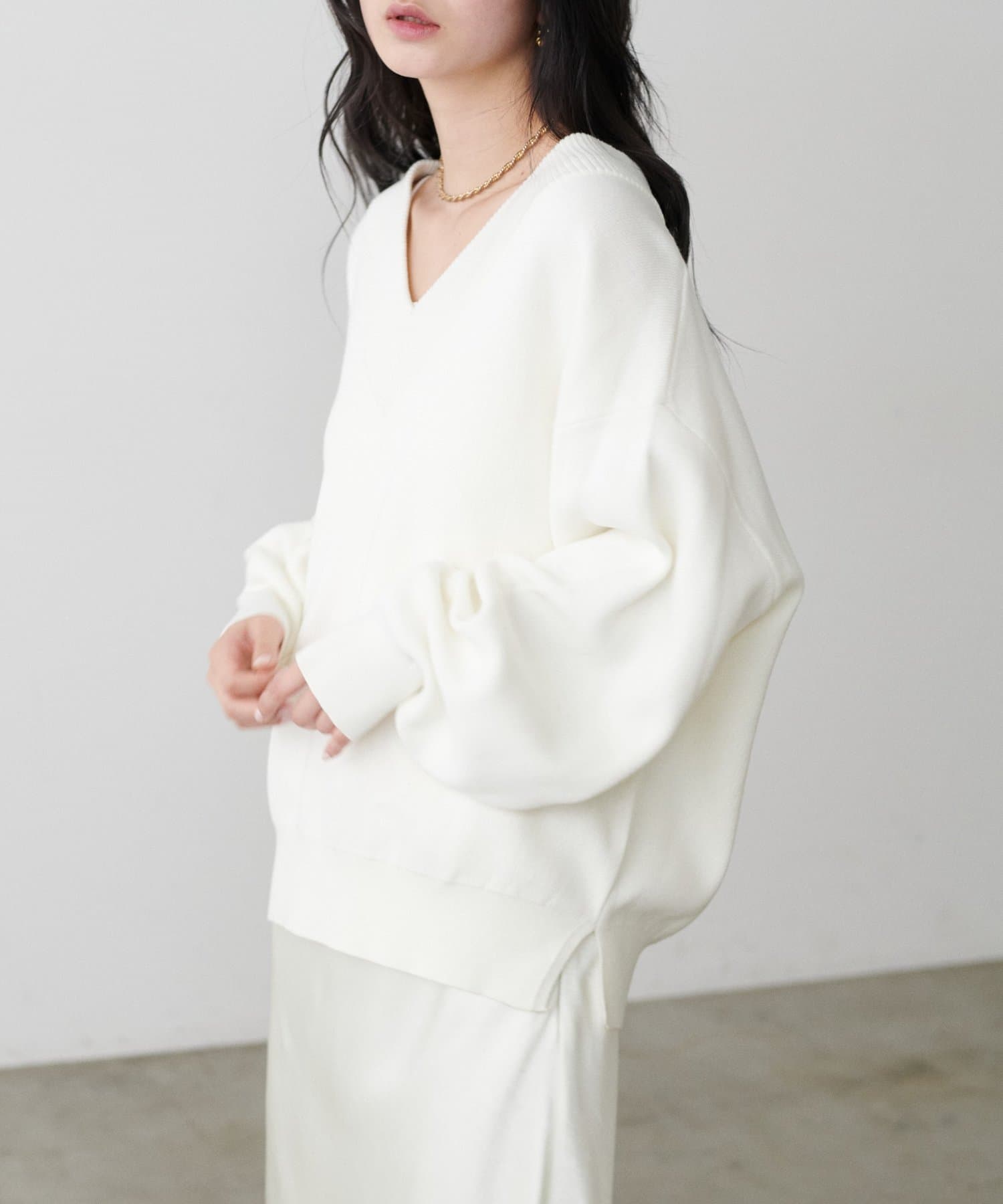 ニットの柔らかさと、スウェットのようなカジュアルさを両立したVネックプルオーバー。