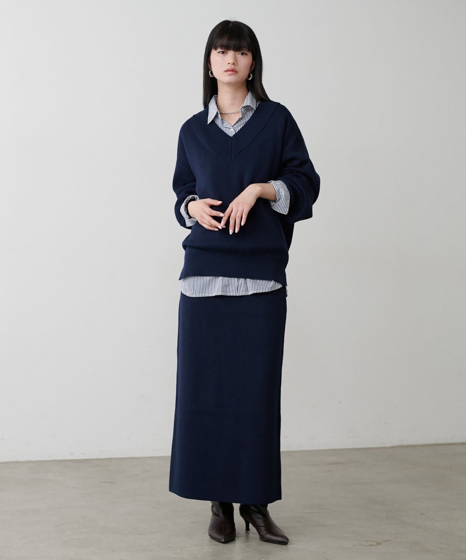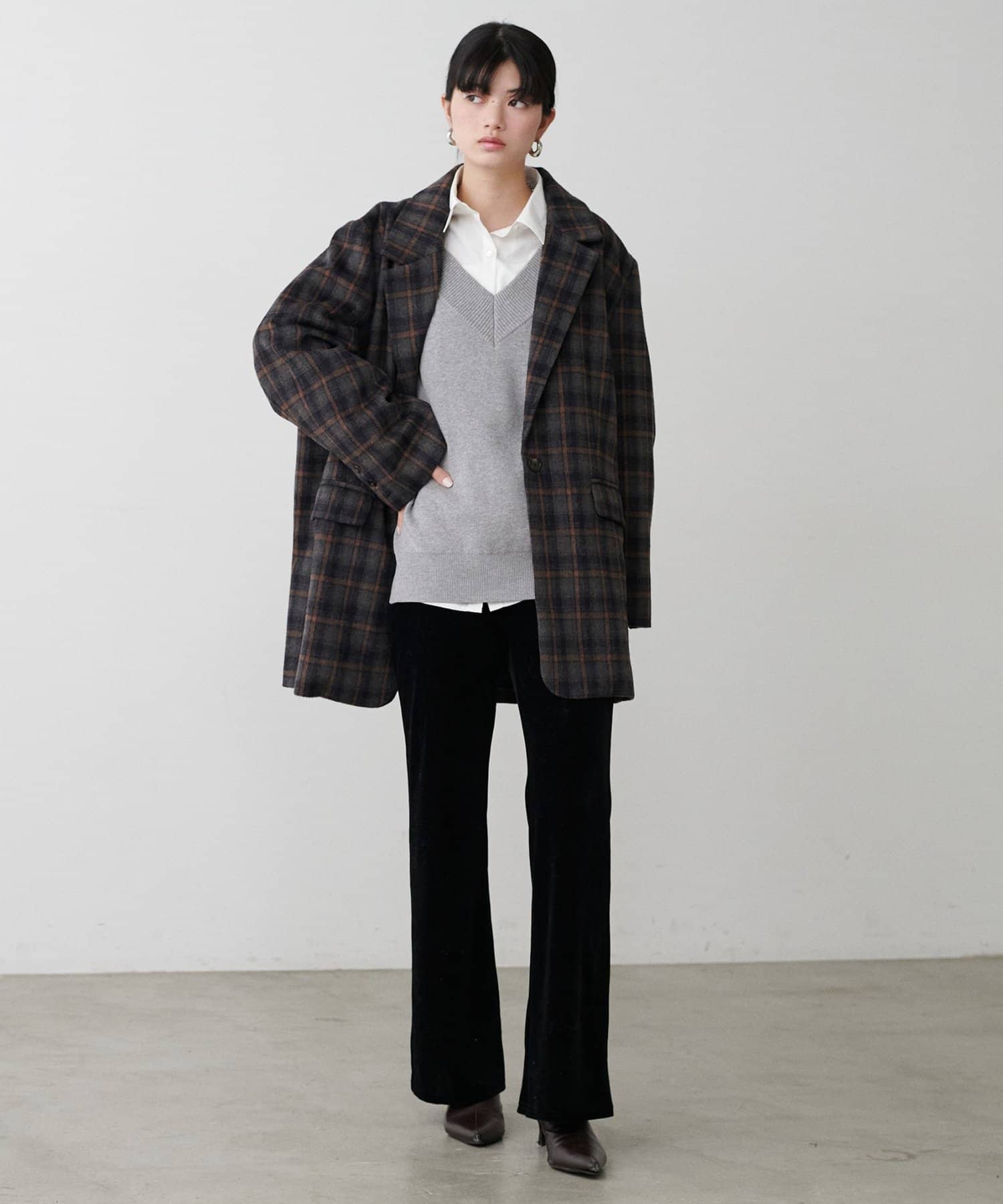 シャツやタートルをインナーに重ねてもバランスよく、秋冬のレイヤードにも活躍します。