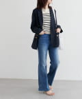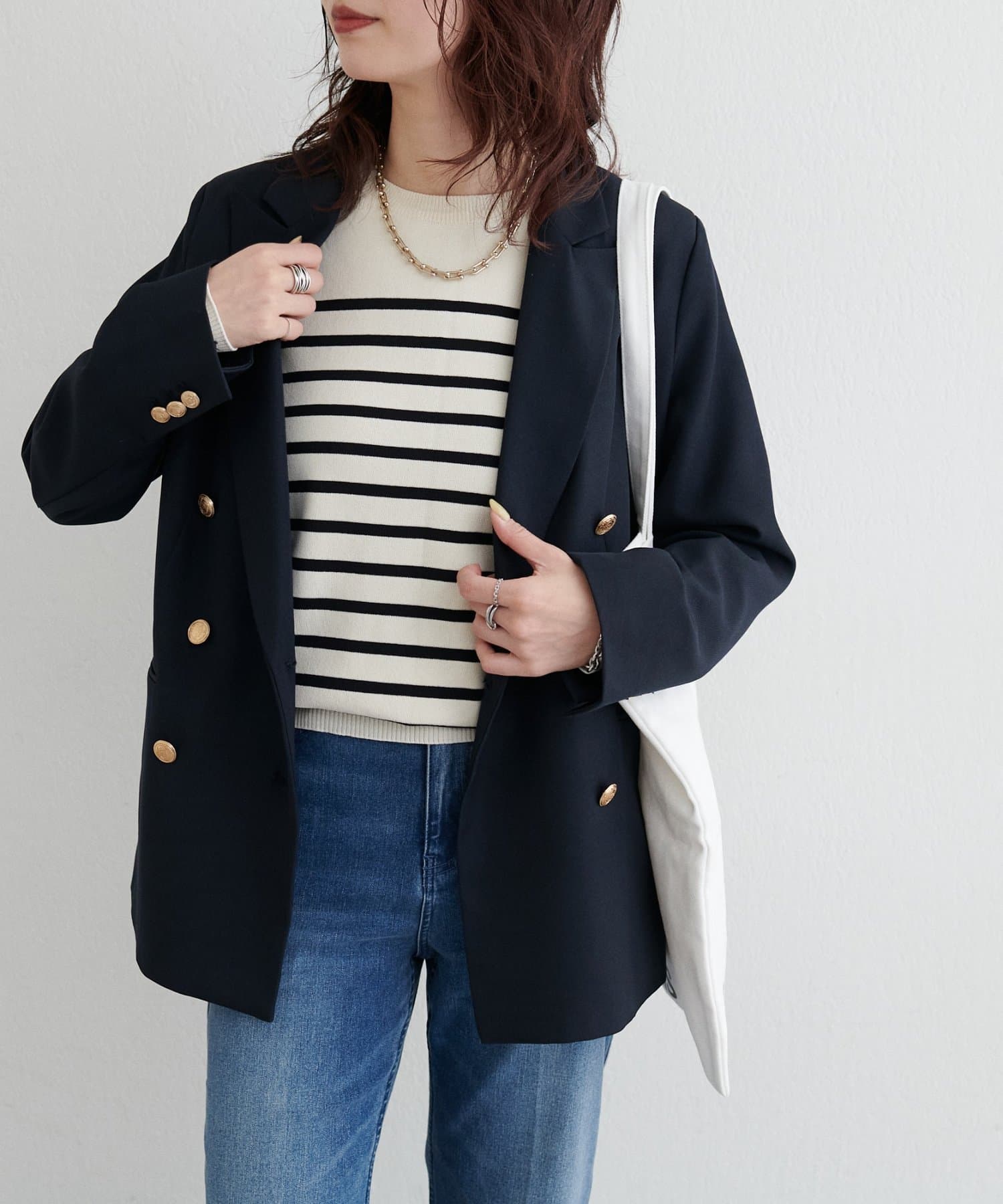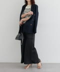 とろみナロースカートと合わせて金釦テーラードジャケットを上から羽織った