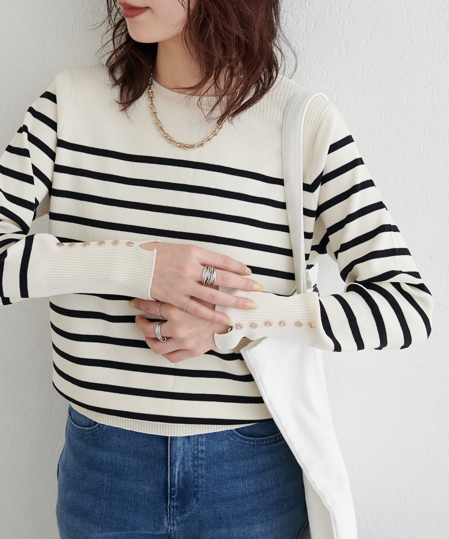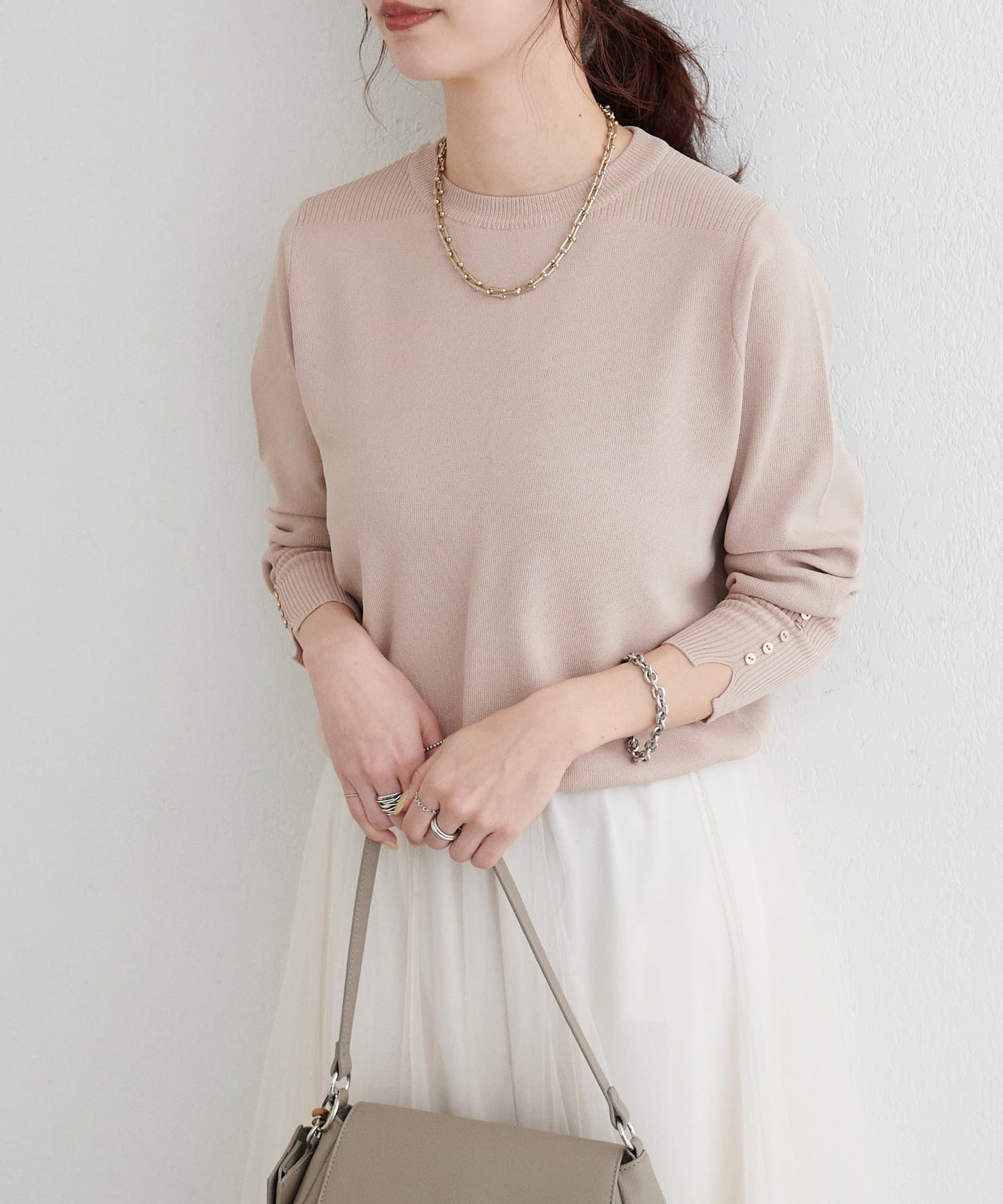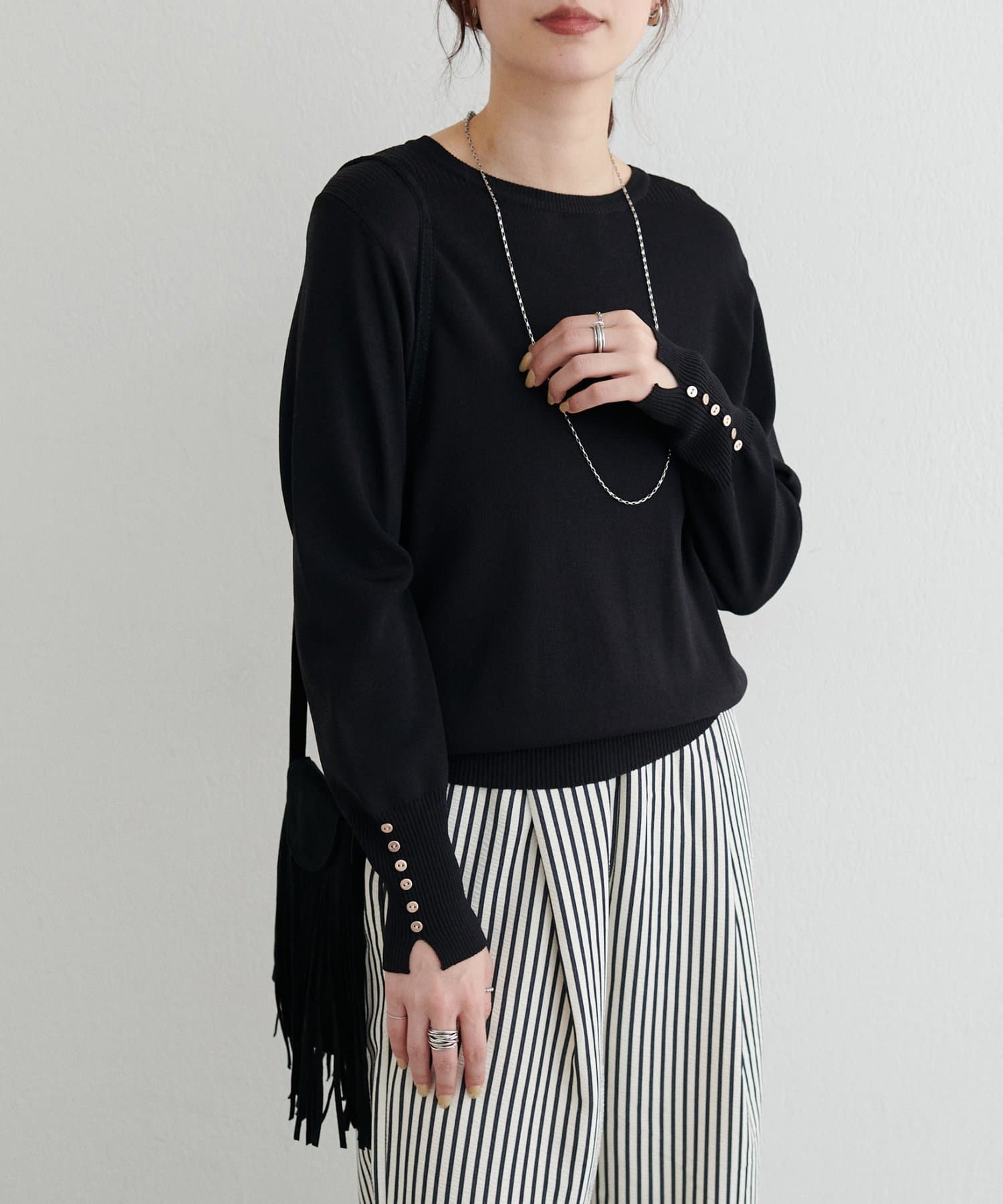 • LARUTA(ラルータ) 袖口ちび釦シンプルニット