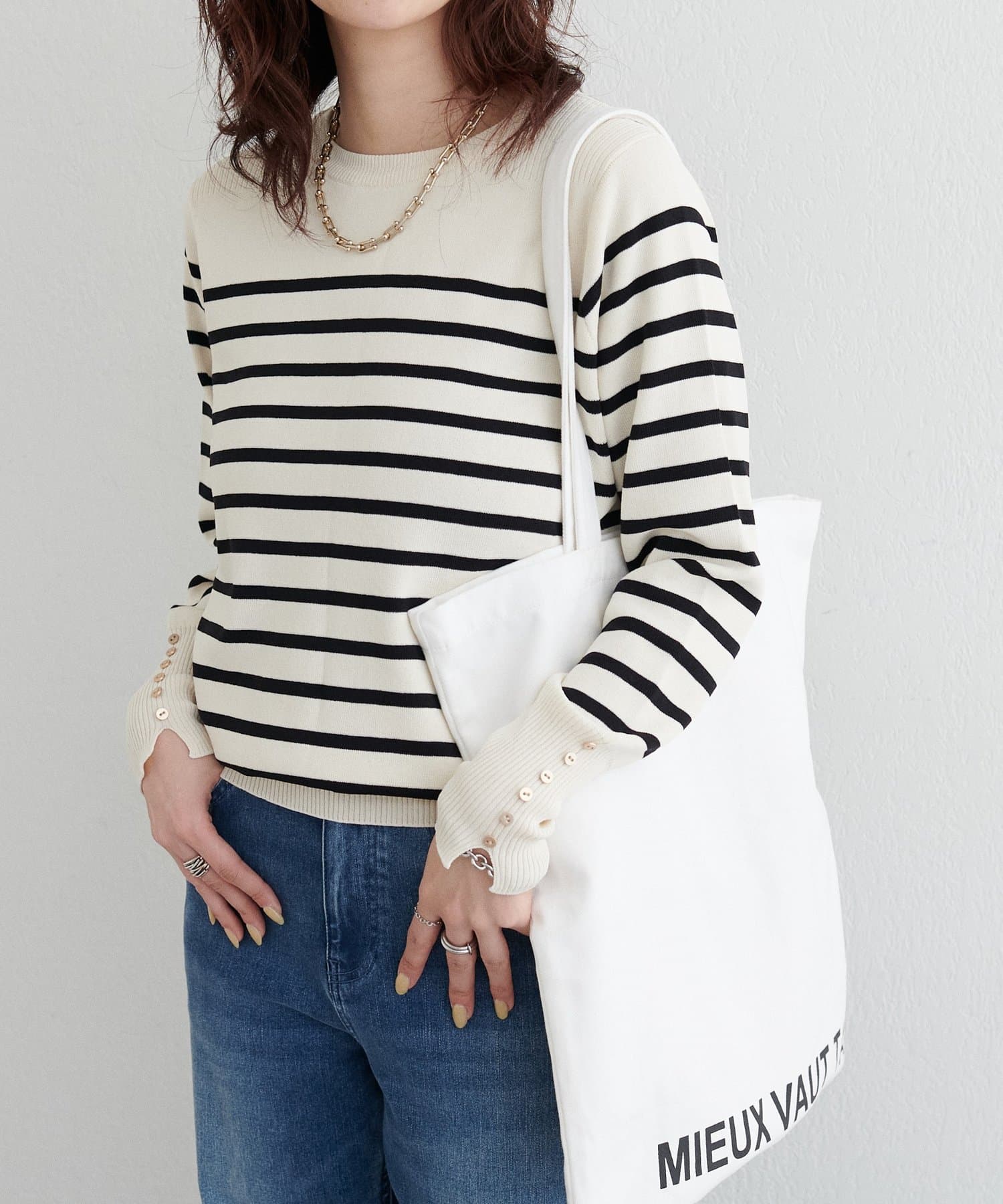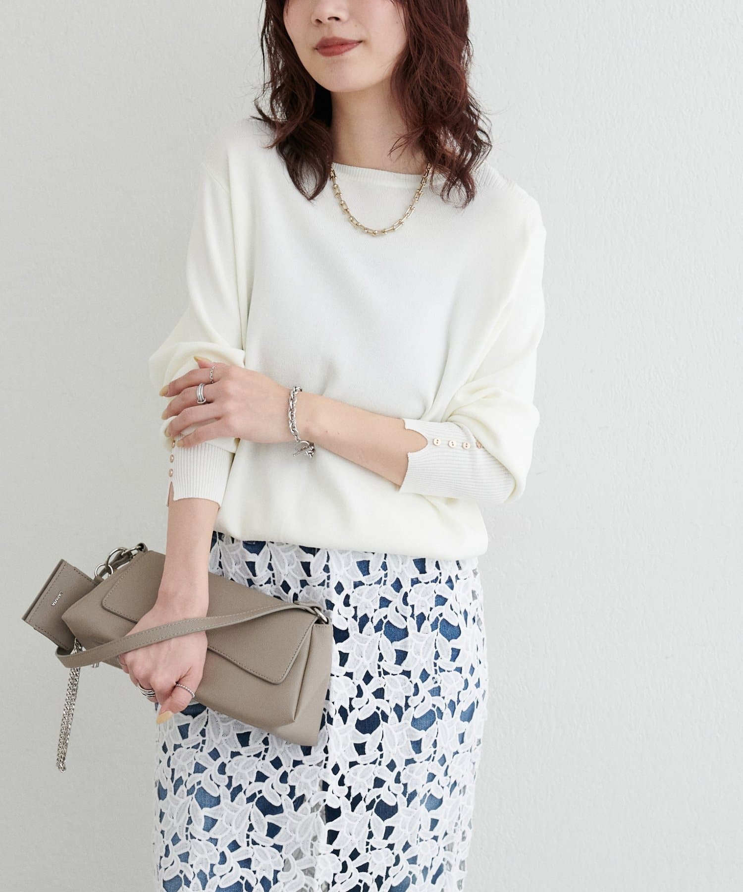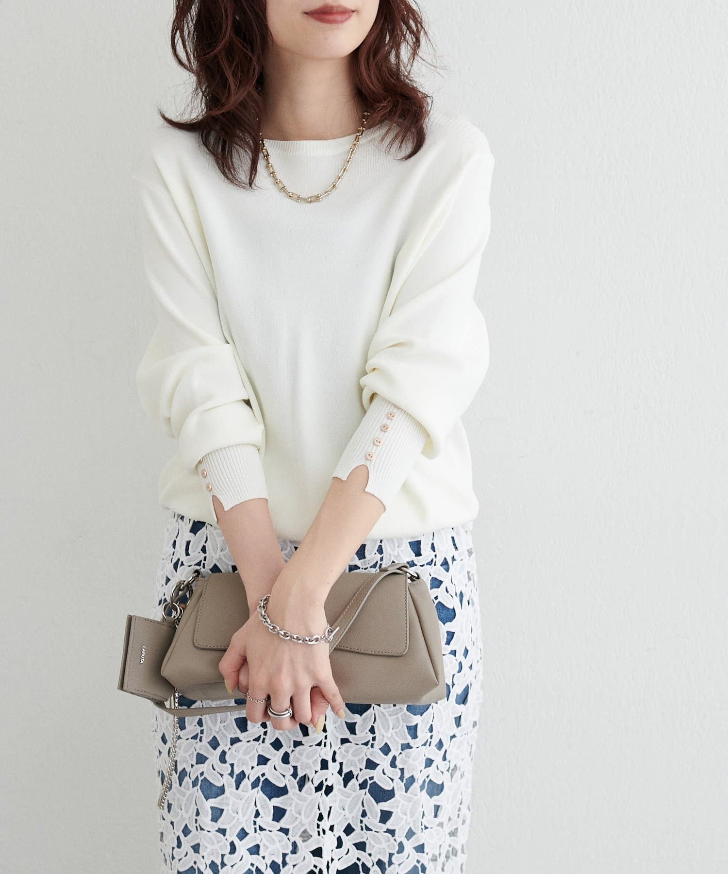 • LARUTA(ラルータ) 袖口ちび釦シンプルニット