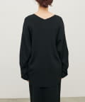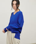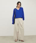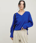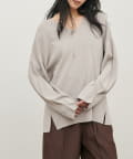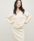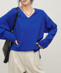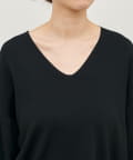 深めのVネックが印象的なシンプルなニットトップス。