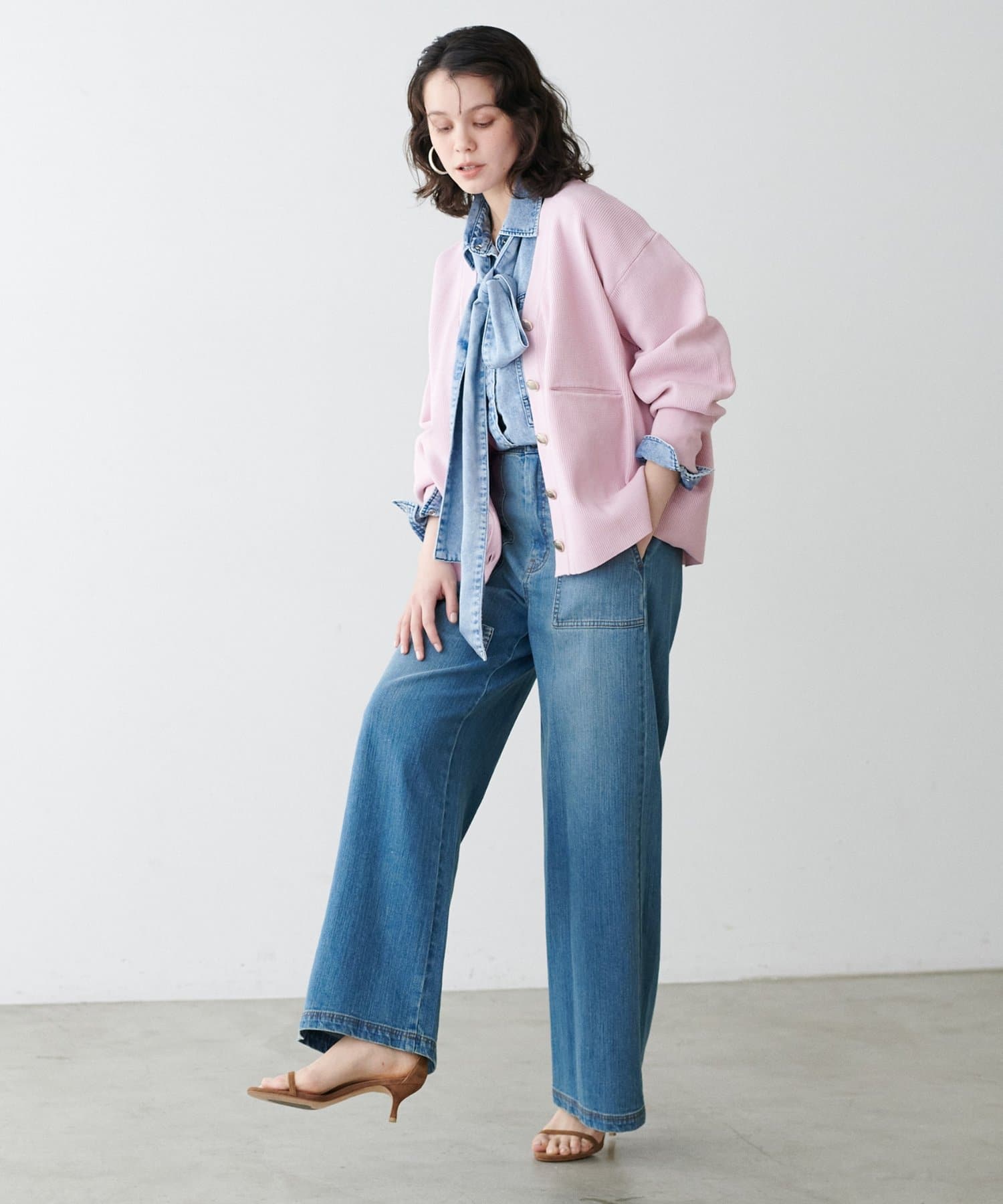 デニムパンツやデニムスカートなどと合わせてカジュアルにも、