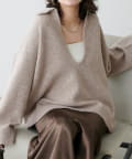 【LARUTA】衿付きキーネック杢ニット