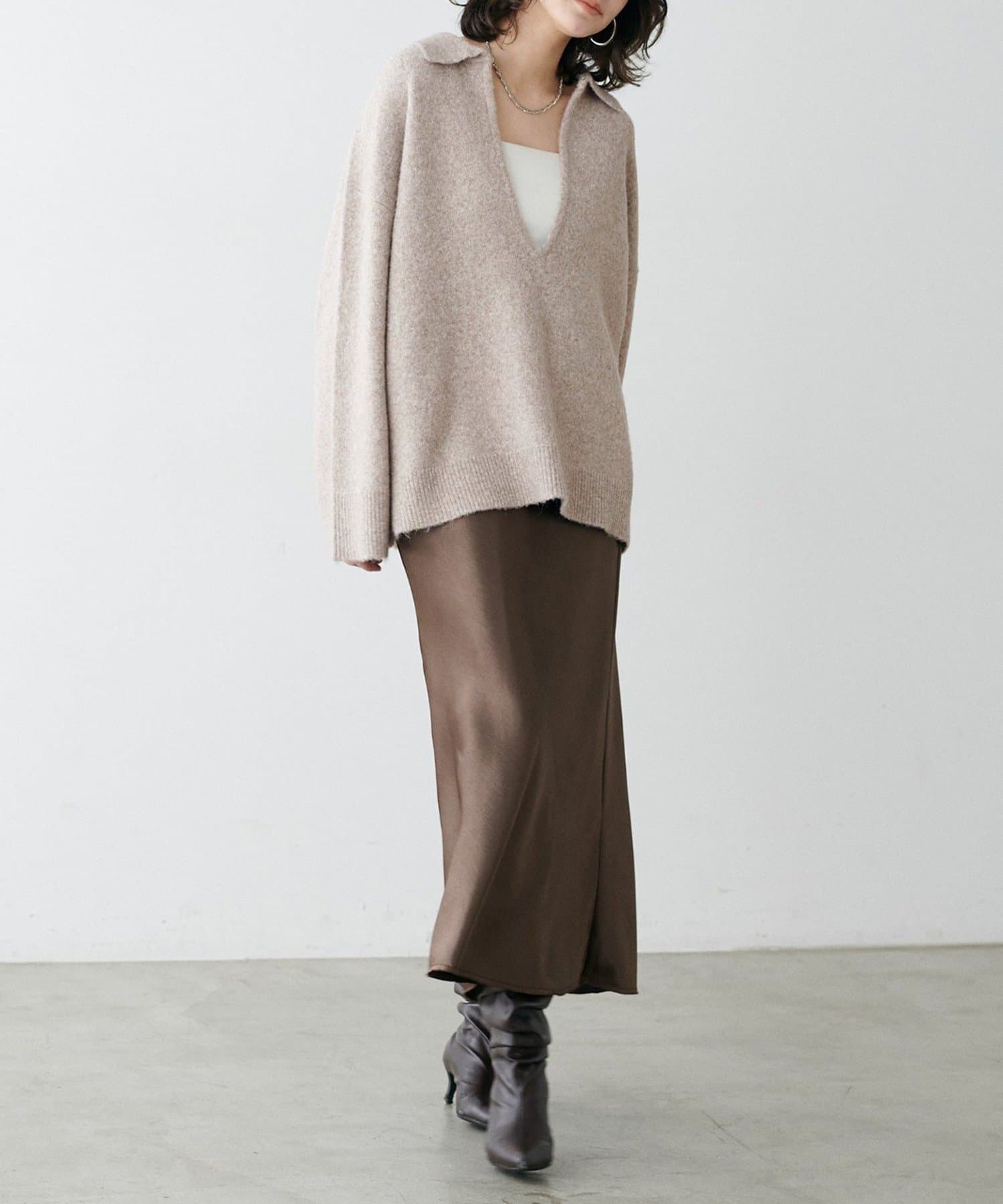 TOP > NICE CLAUP / OLIVE des OLIVE OUTLET > レディース > トップス > ニット/セーター > 【LARUTA】衿付きキーネック杢ニット