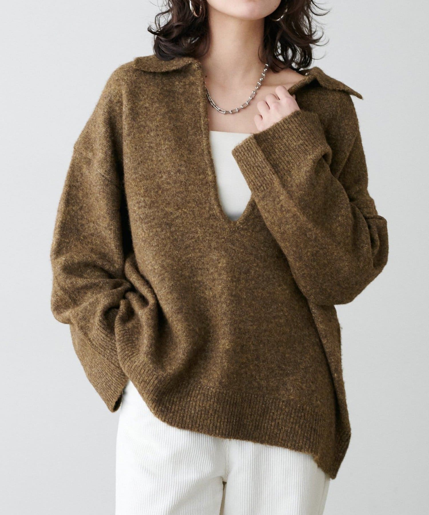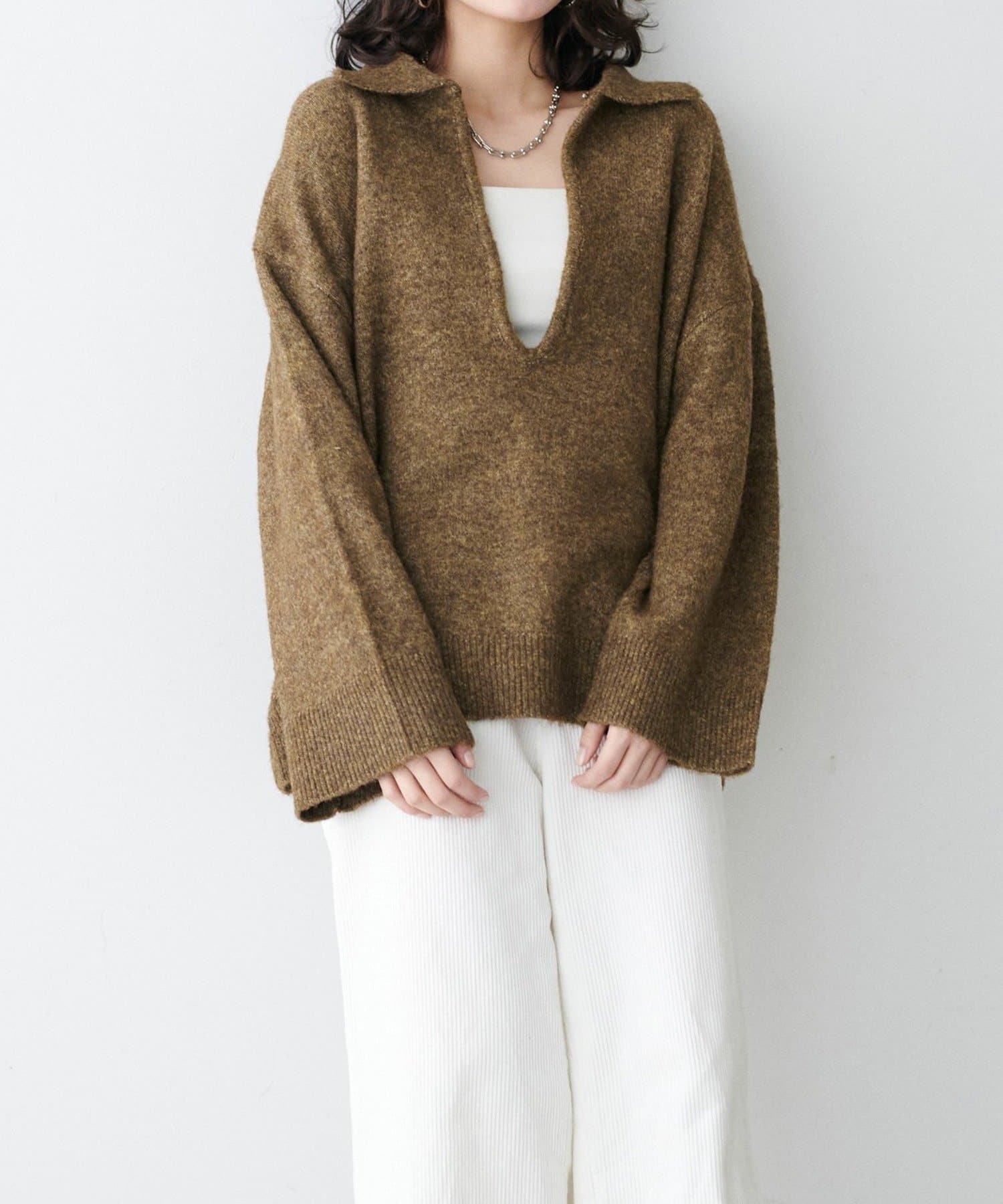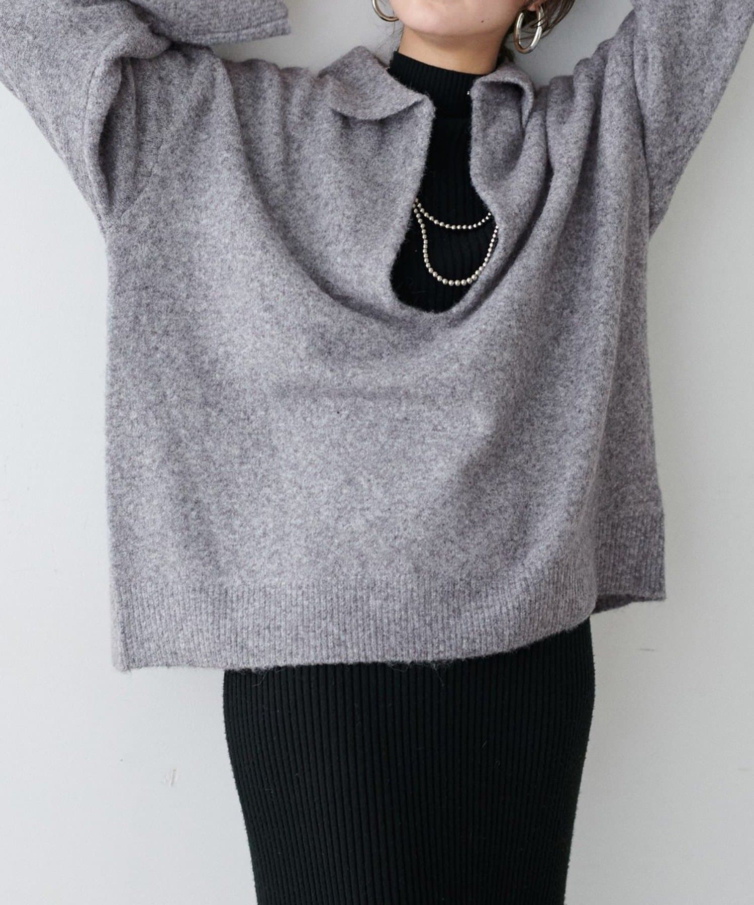 • NICE CLAUP / OLIVE des OLIVE OUTLET(ナイスクラップ  / オリーブ デ オリーブ アウトレット) 【LARUTA】衿付きキーネック杢ニット