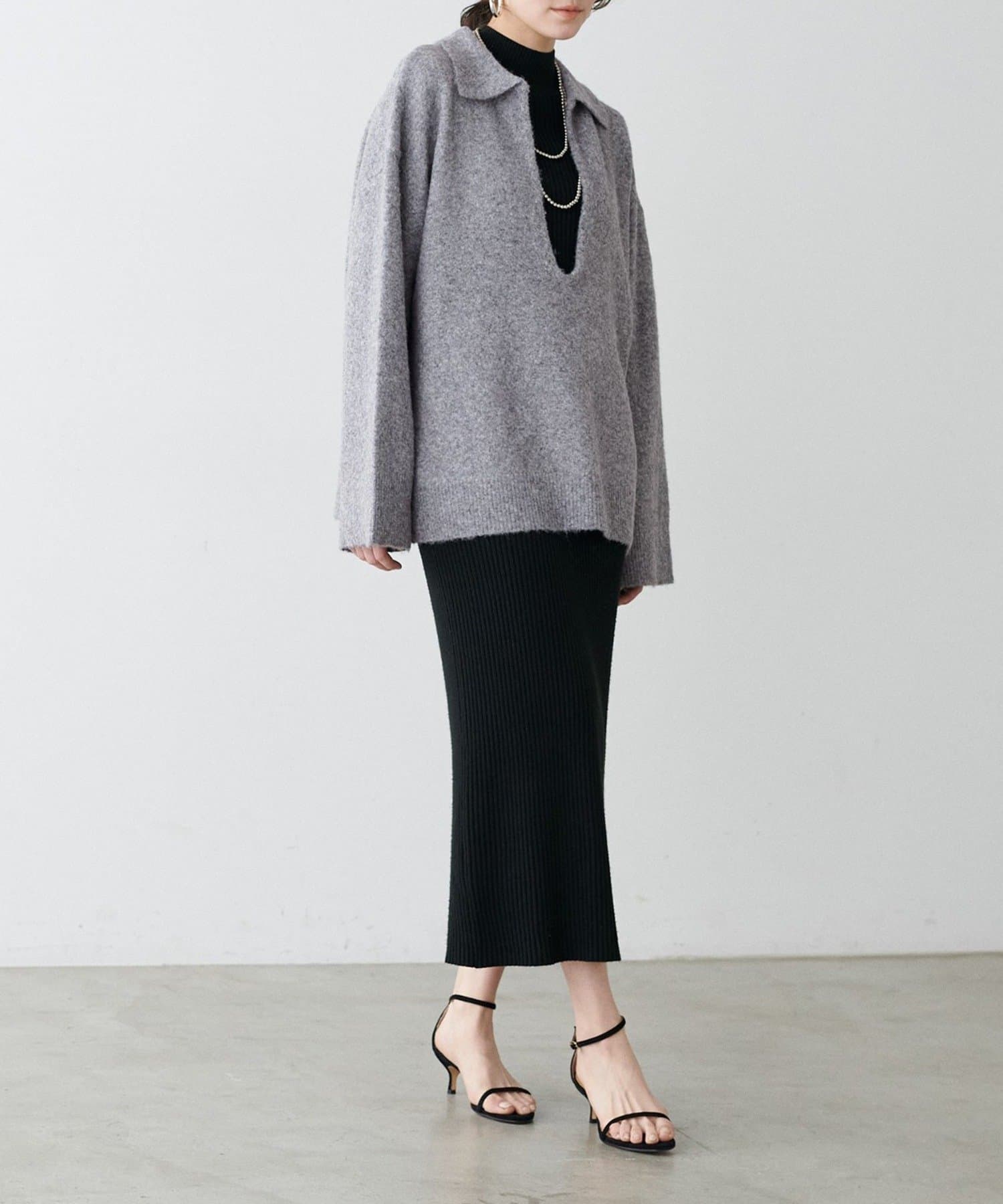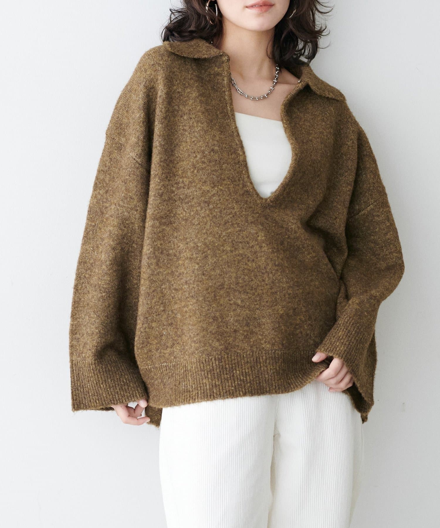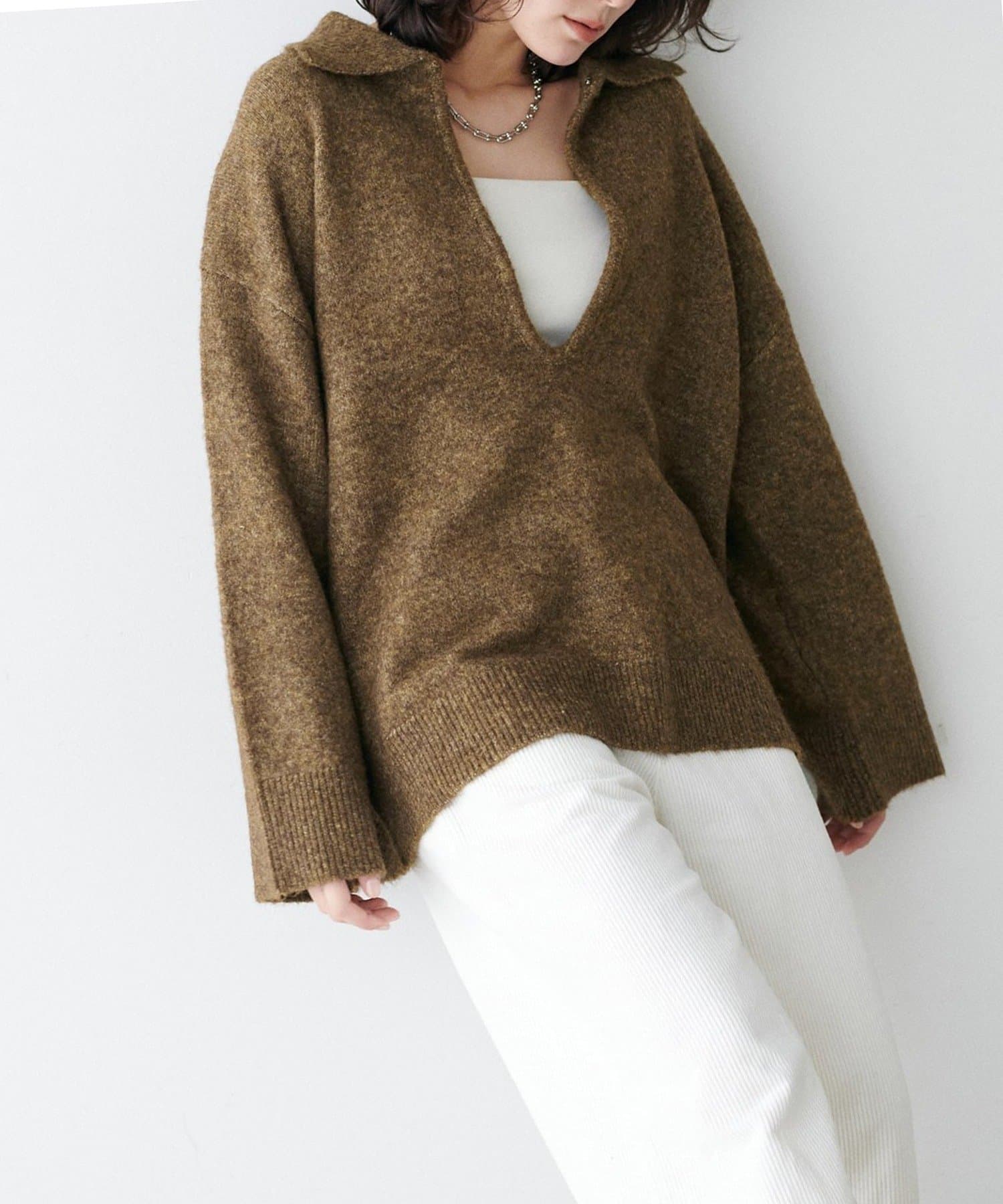 • NICE CLAUP / OLIVE des OLIVE OUTLET(ナイスクラップ  / オリーブ デ オリーブ アウトレット) 【LARUTA】衿付きキーネック杢ニット