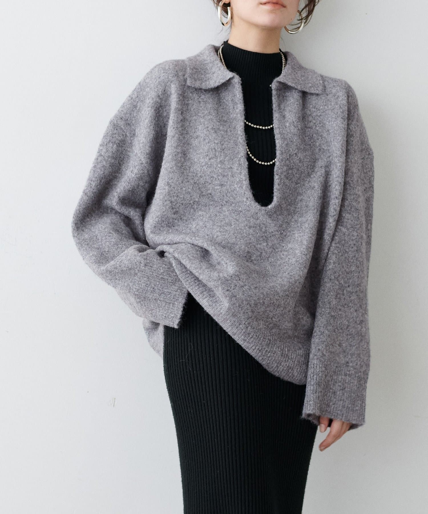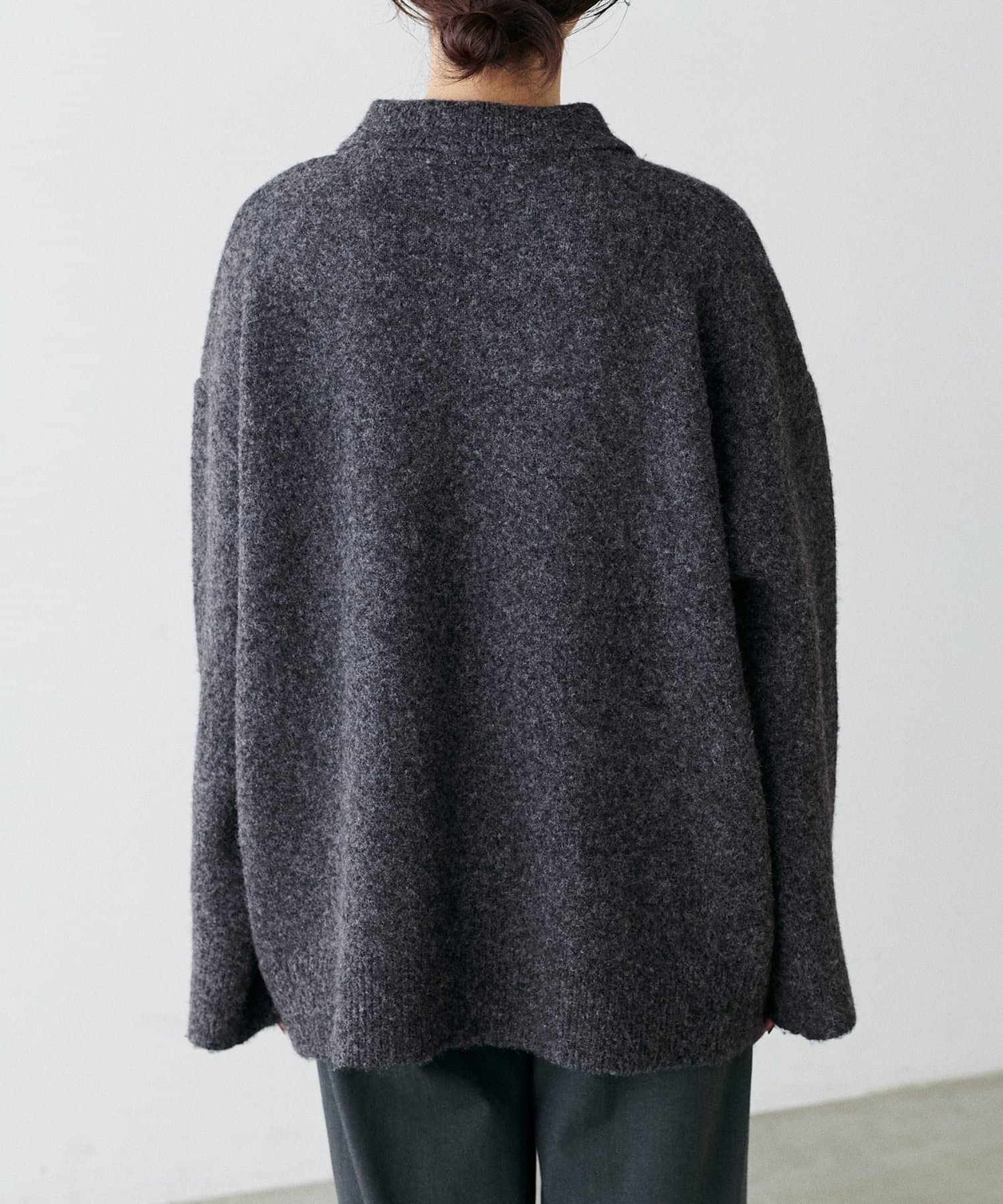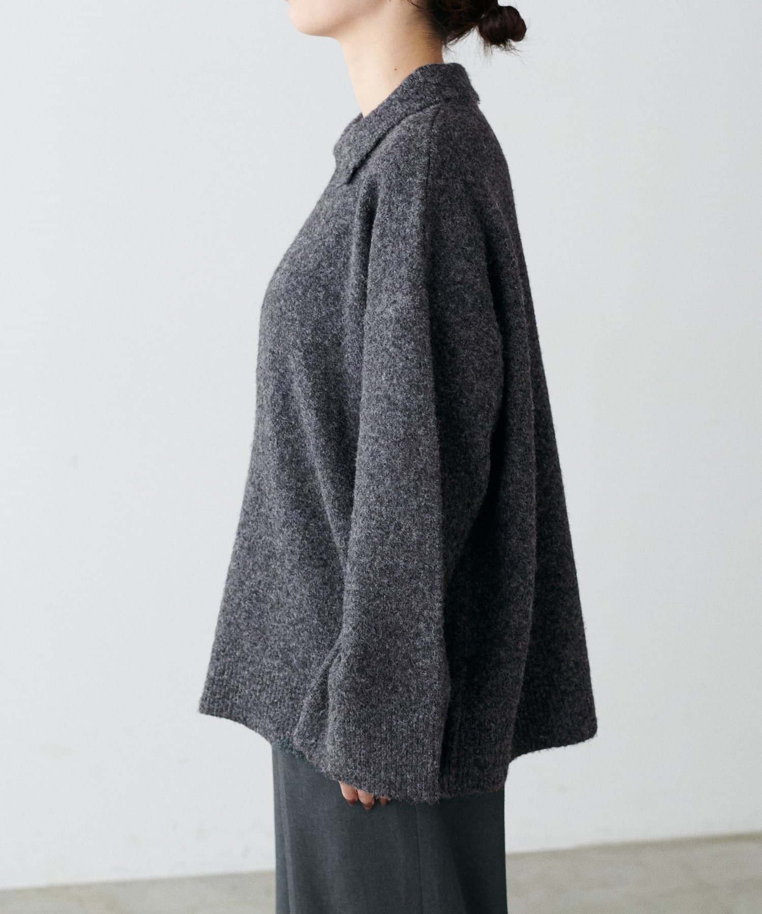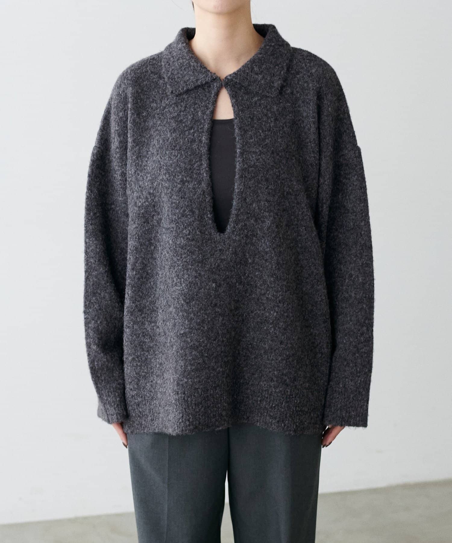 衿付きキーネック杢ニット