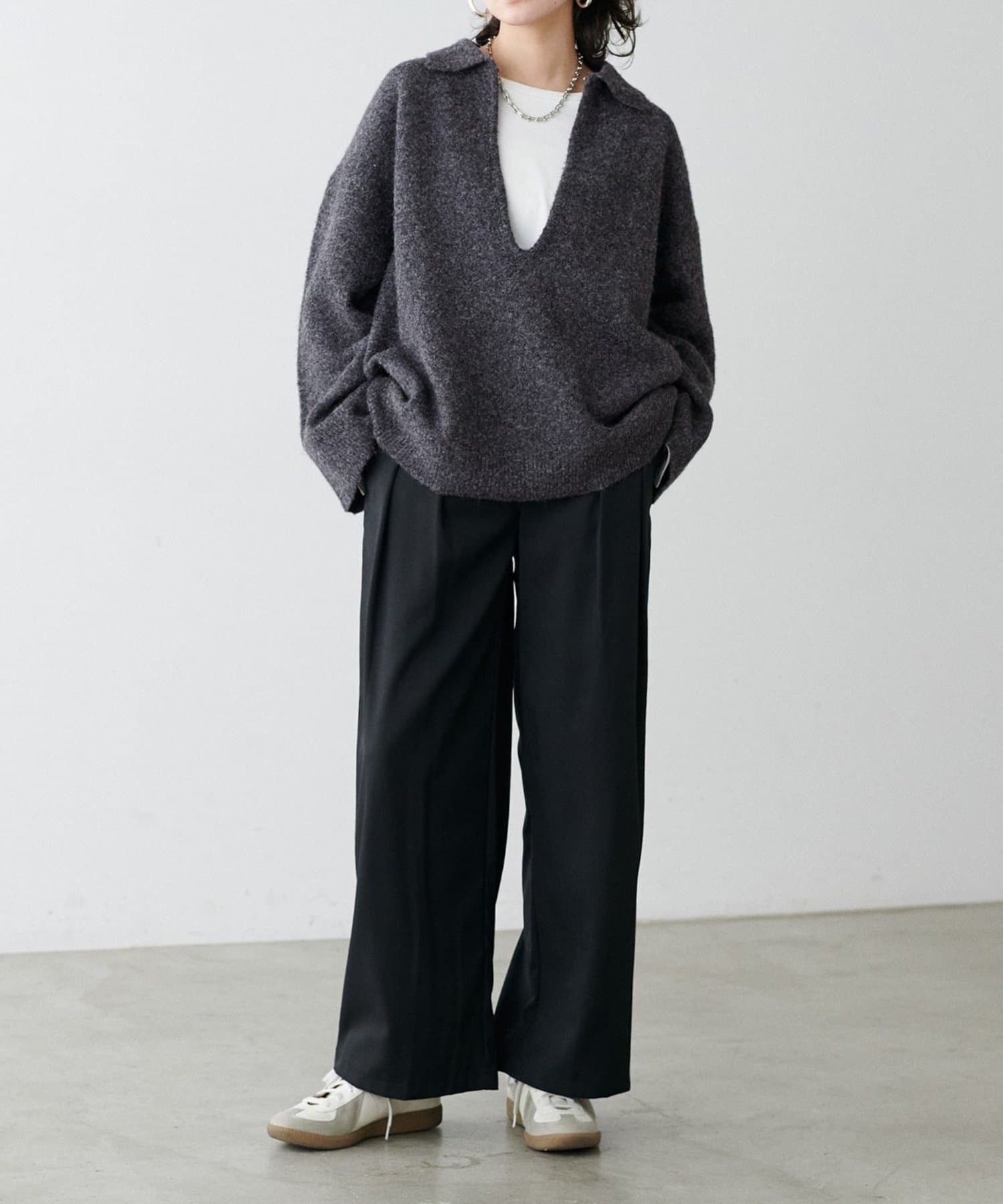 程よくゆとりのあるサイジングで、リラックス感がありながらもすっきりとした印象に仕上げています。