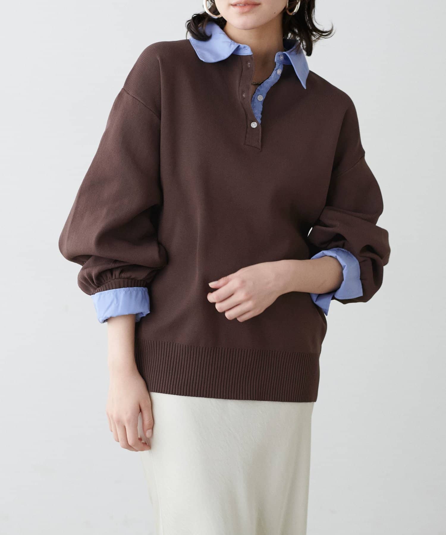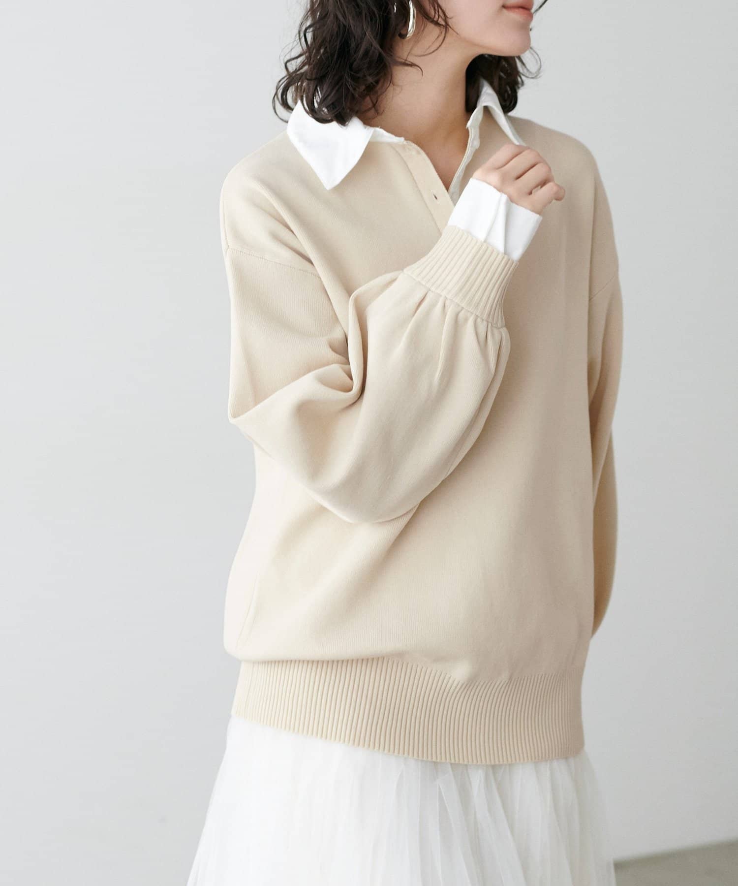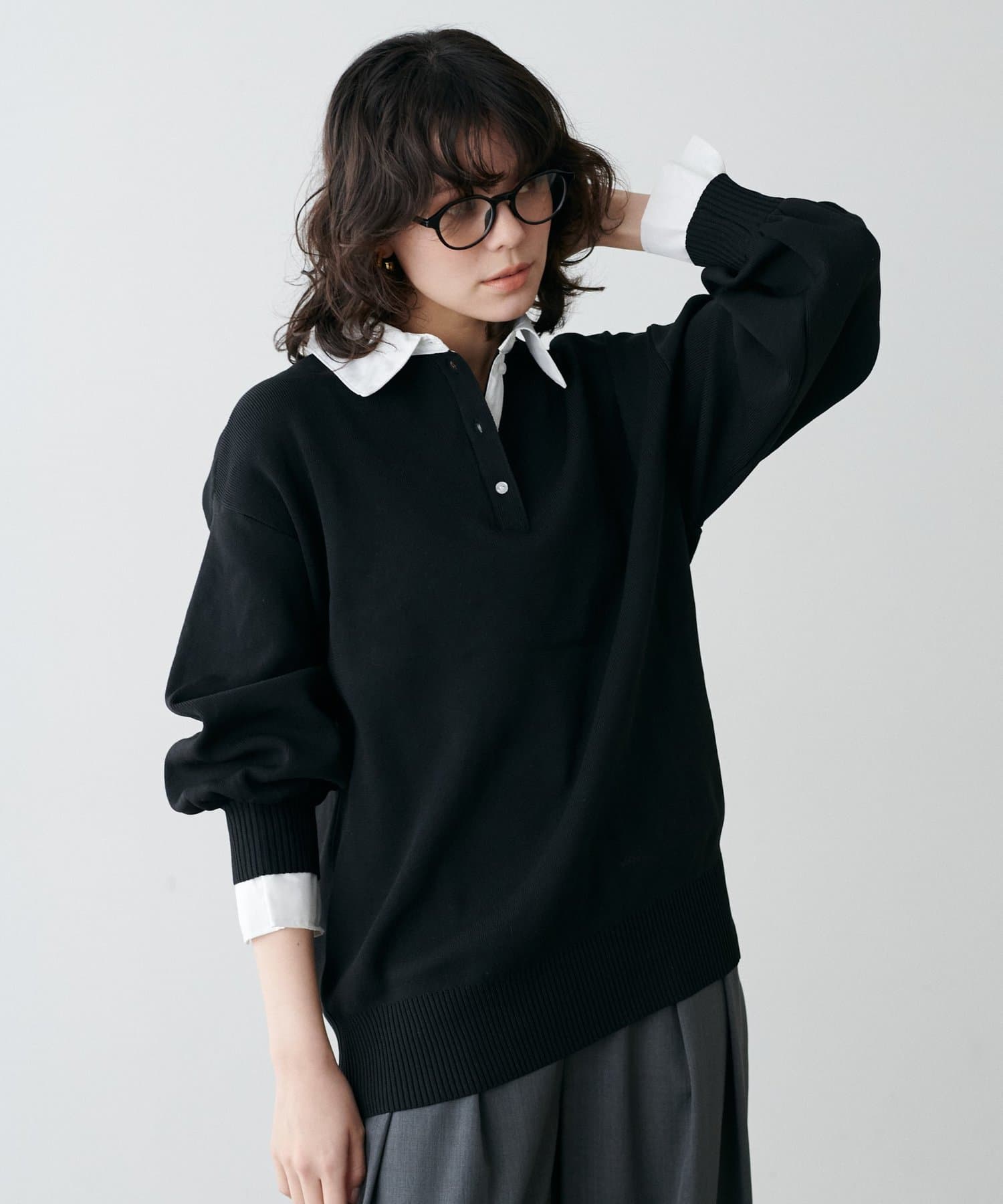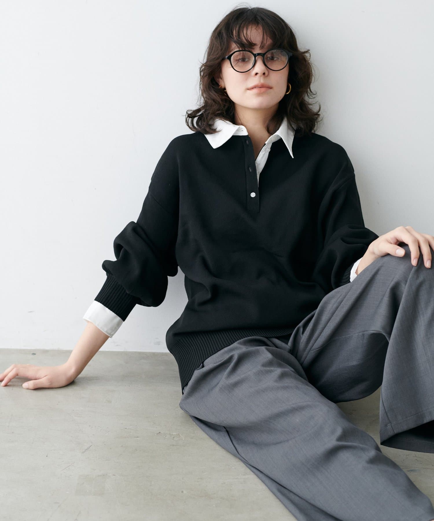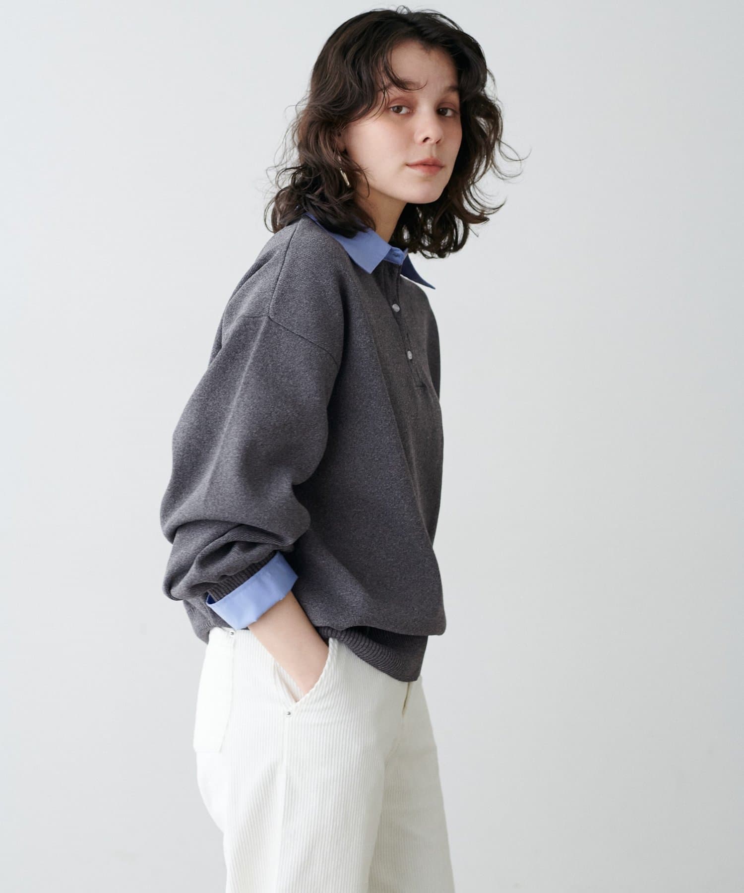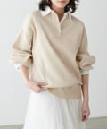 シャツ衿のきちんと感と、ニットならではの柔らかさを掛け合わせたポロニットプルオーバー。