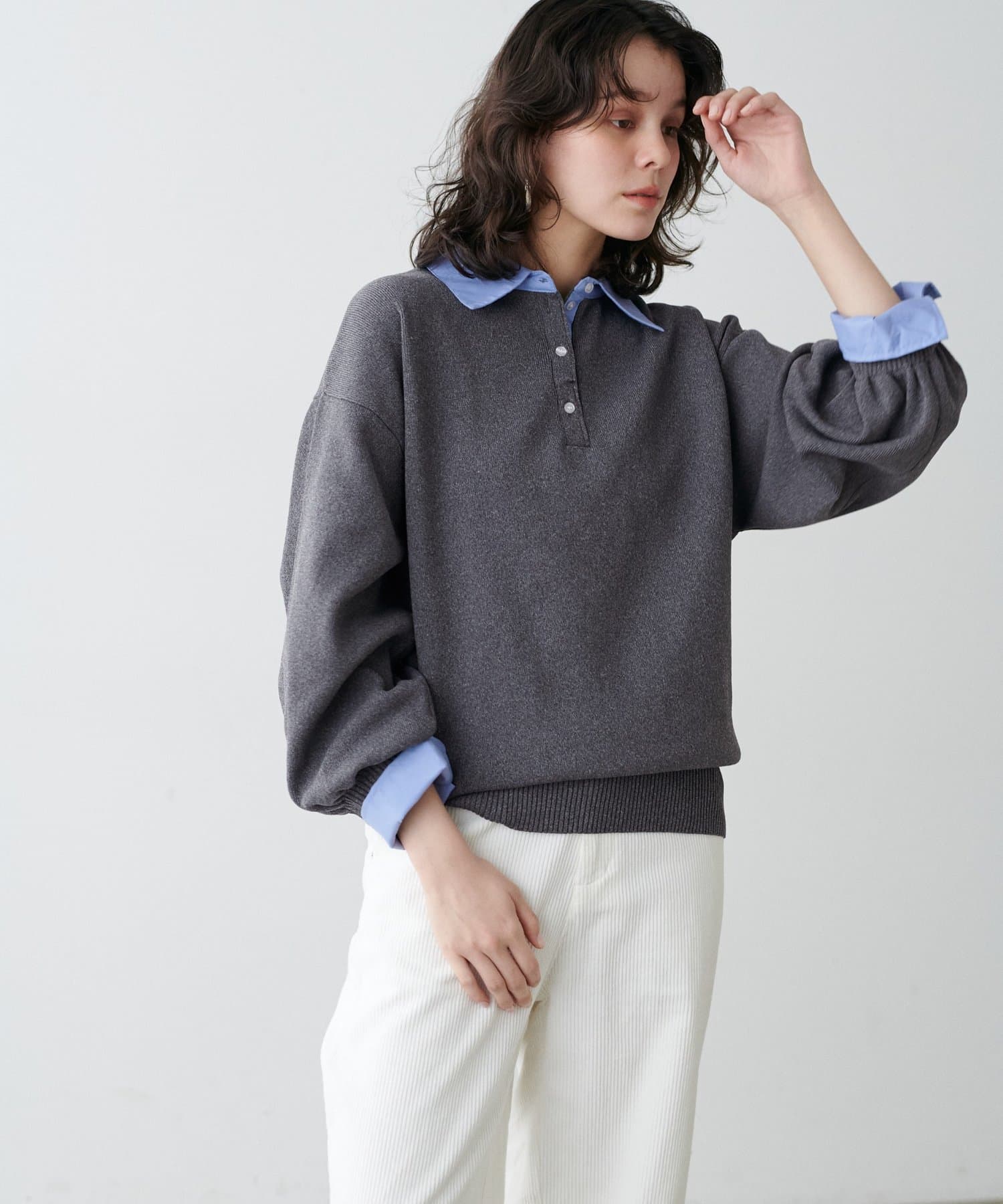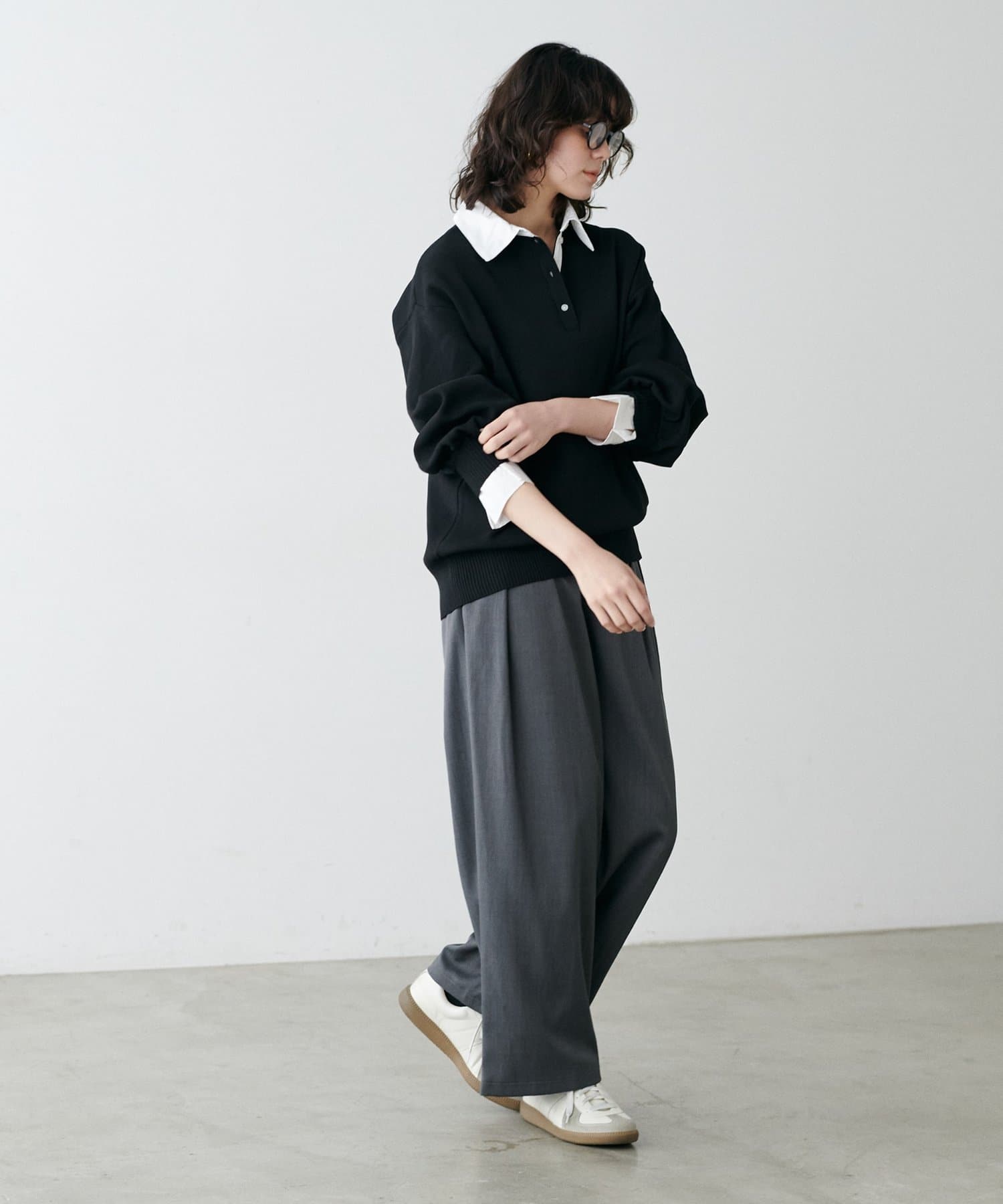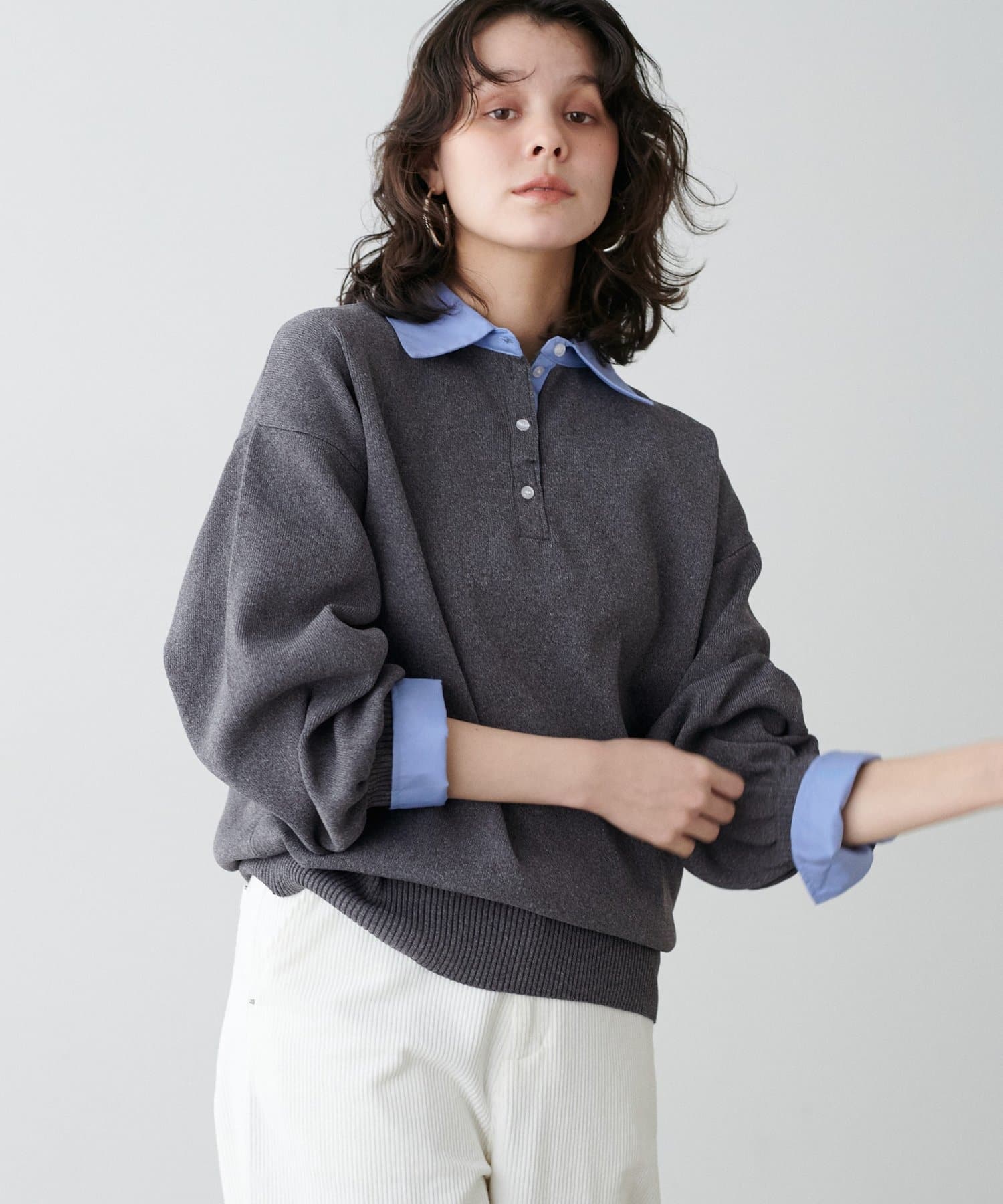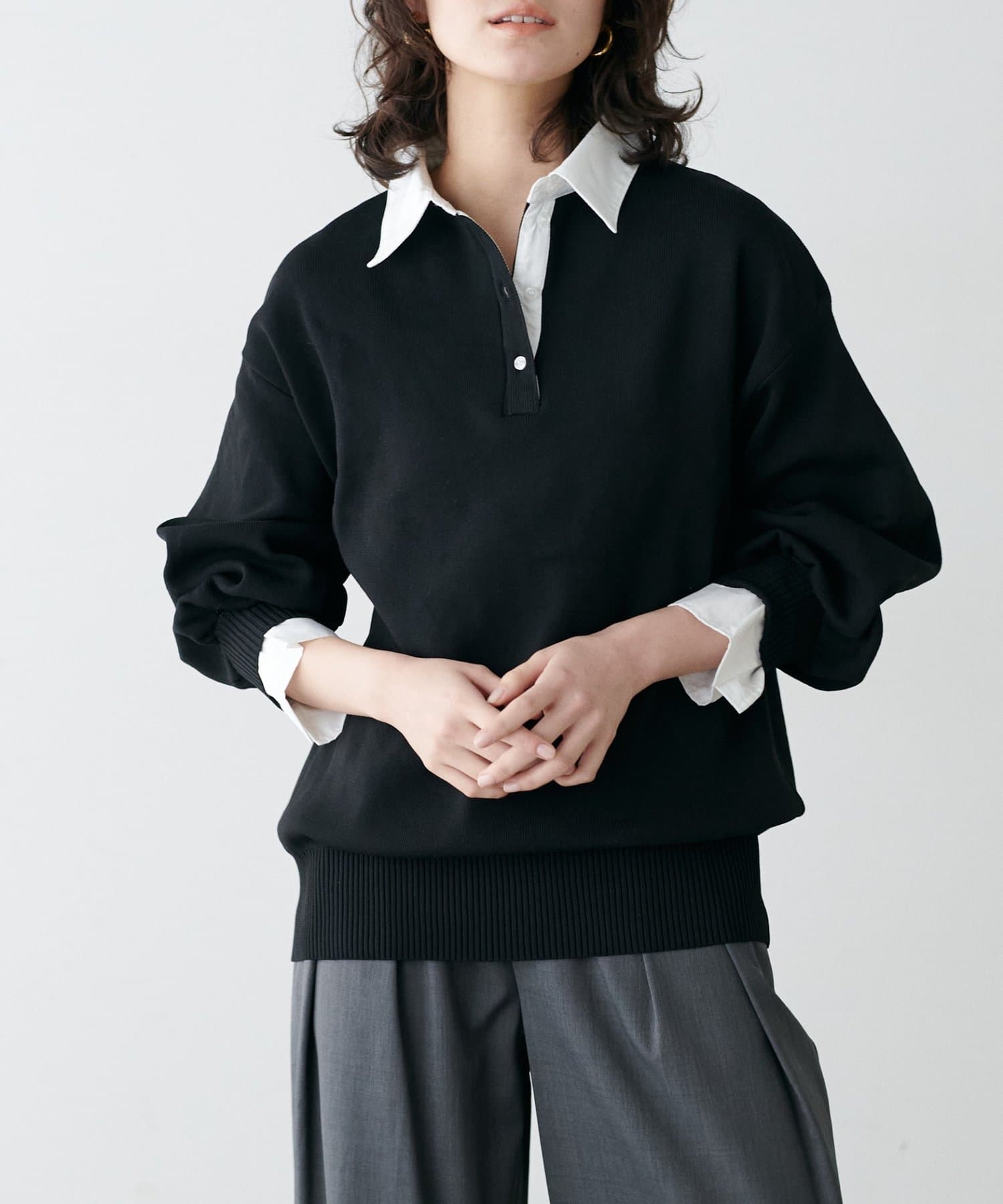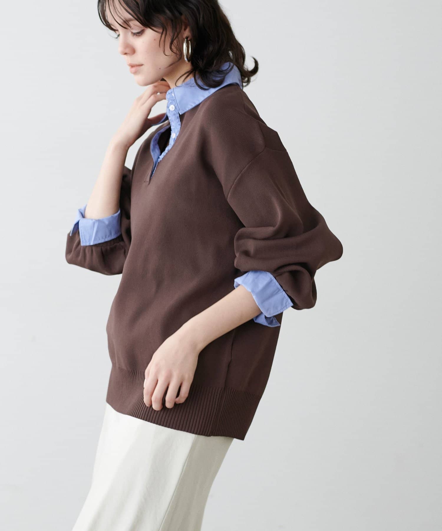 シャツ衿のきちんと感と、ニットならではの柔らかさを掛け合わせたポロニットプルオーバー。