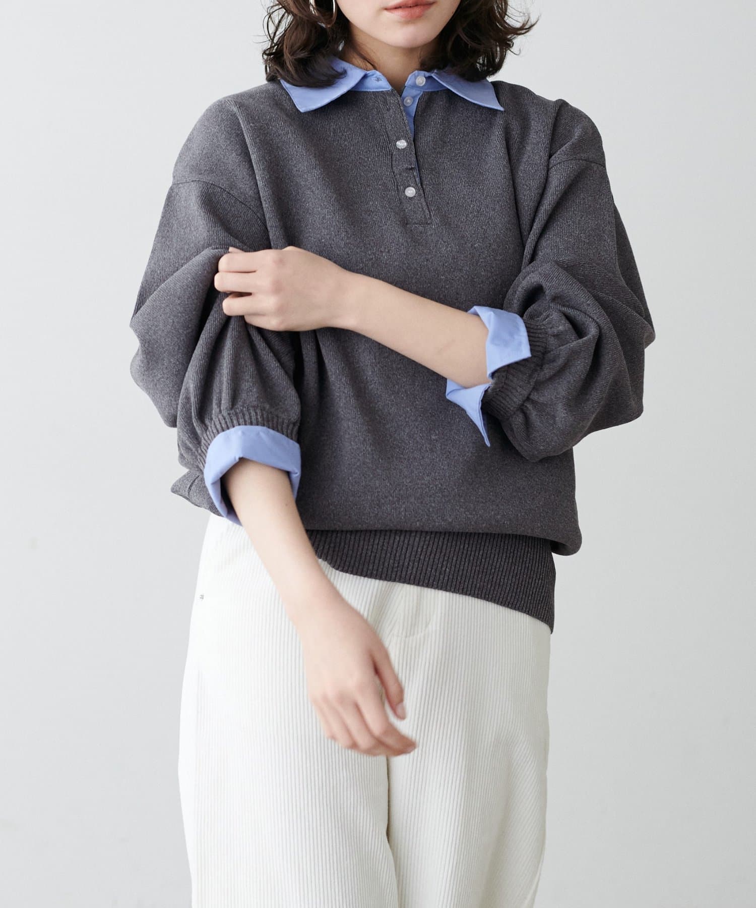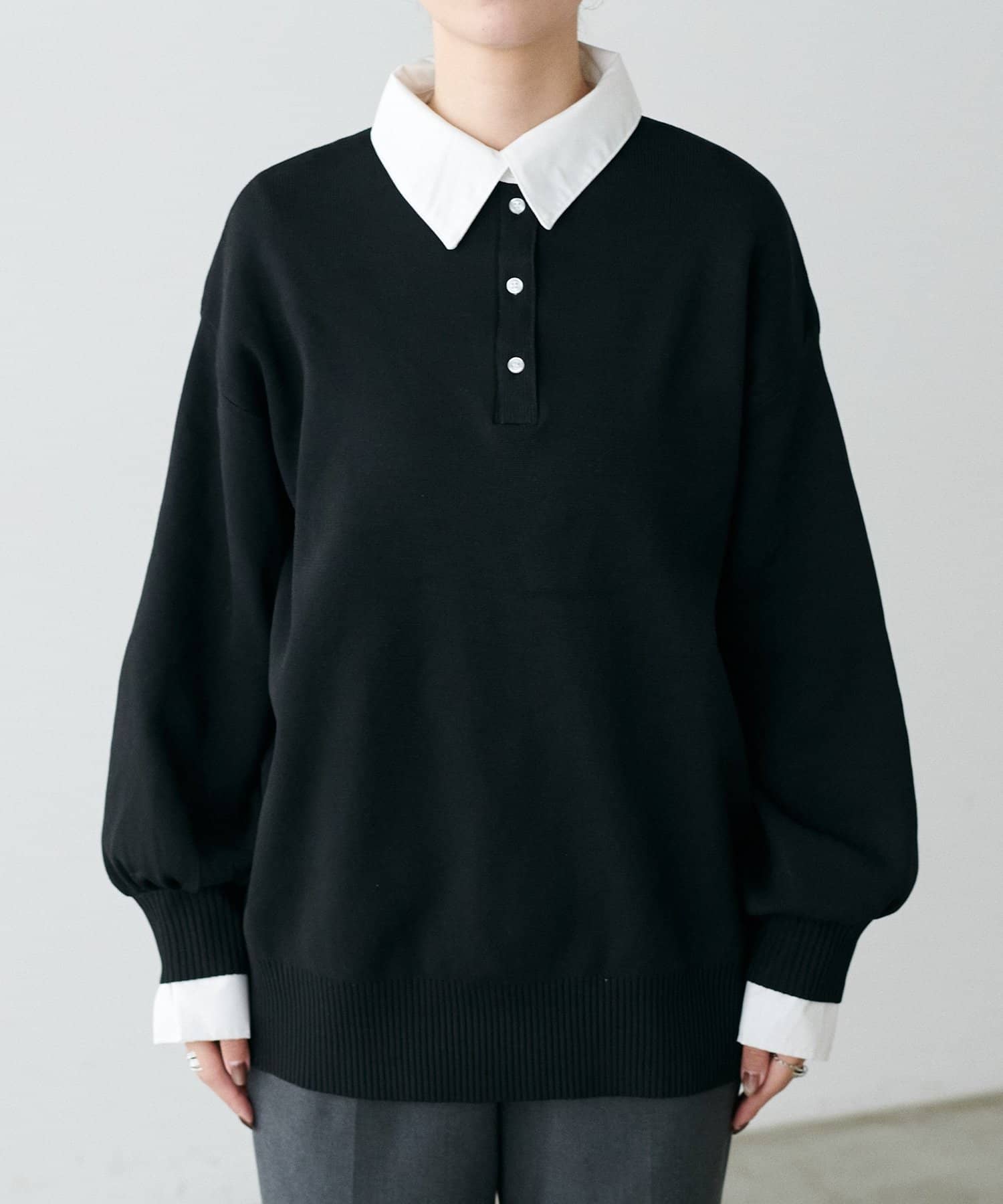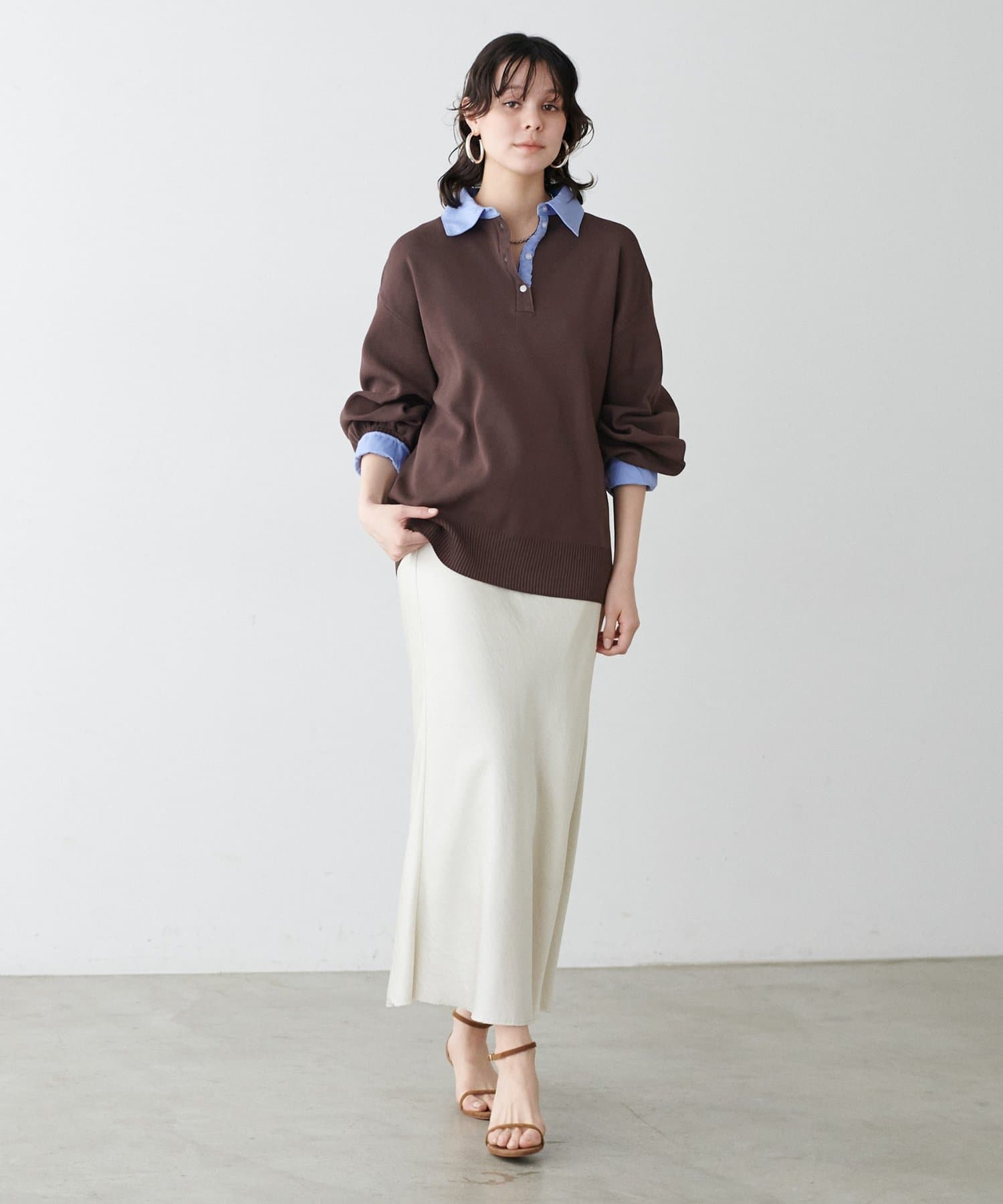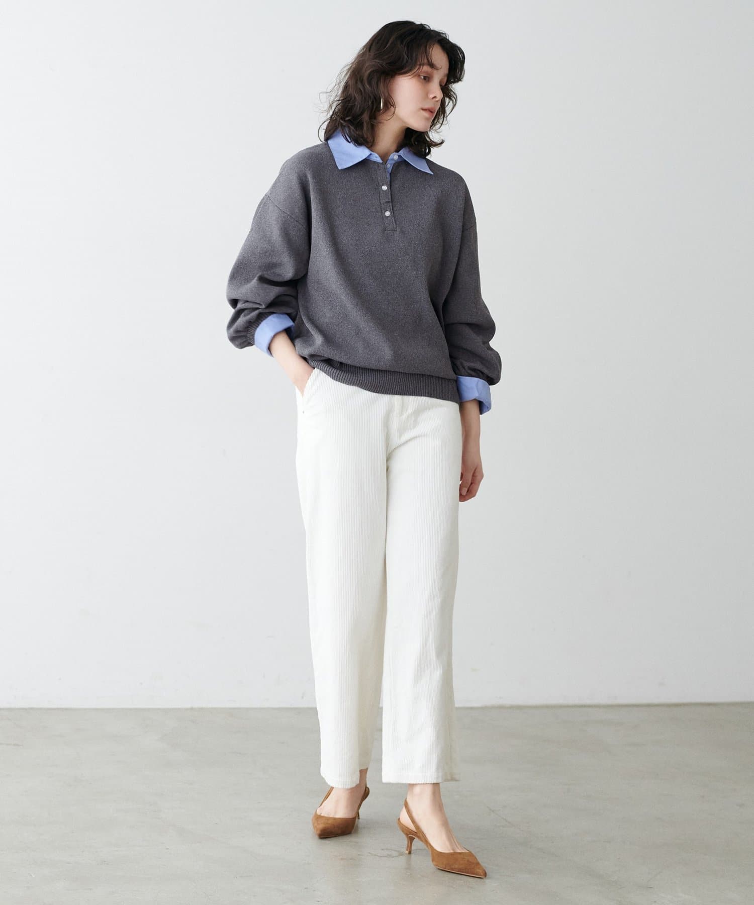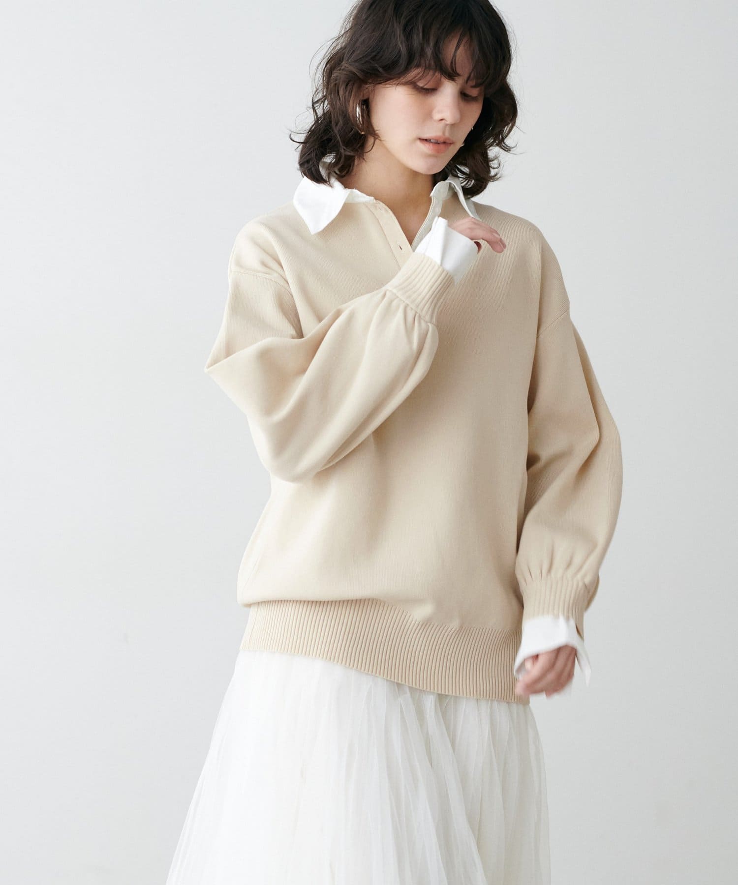 シャツ衿のきちんと感と、ニットならではの柔らかさを掛け合わせたポロニットプルオーバー。