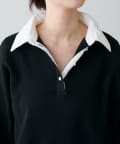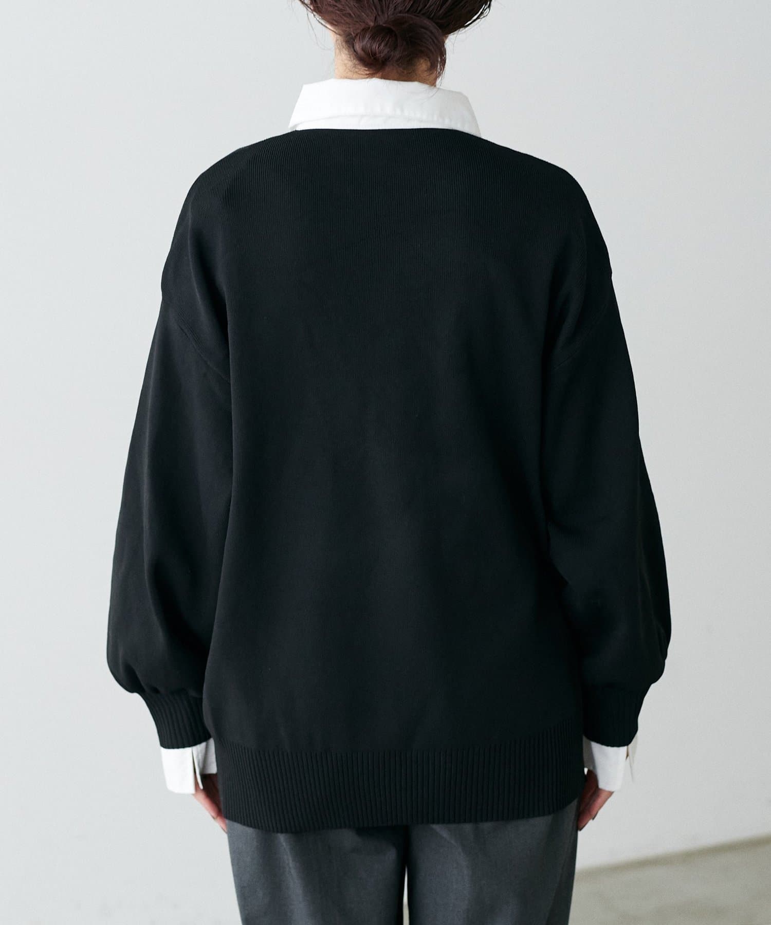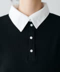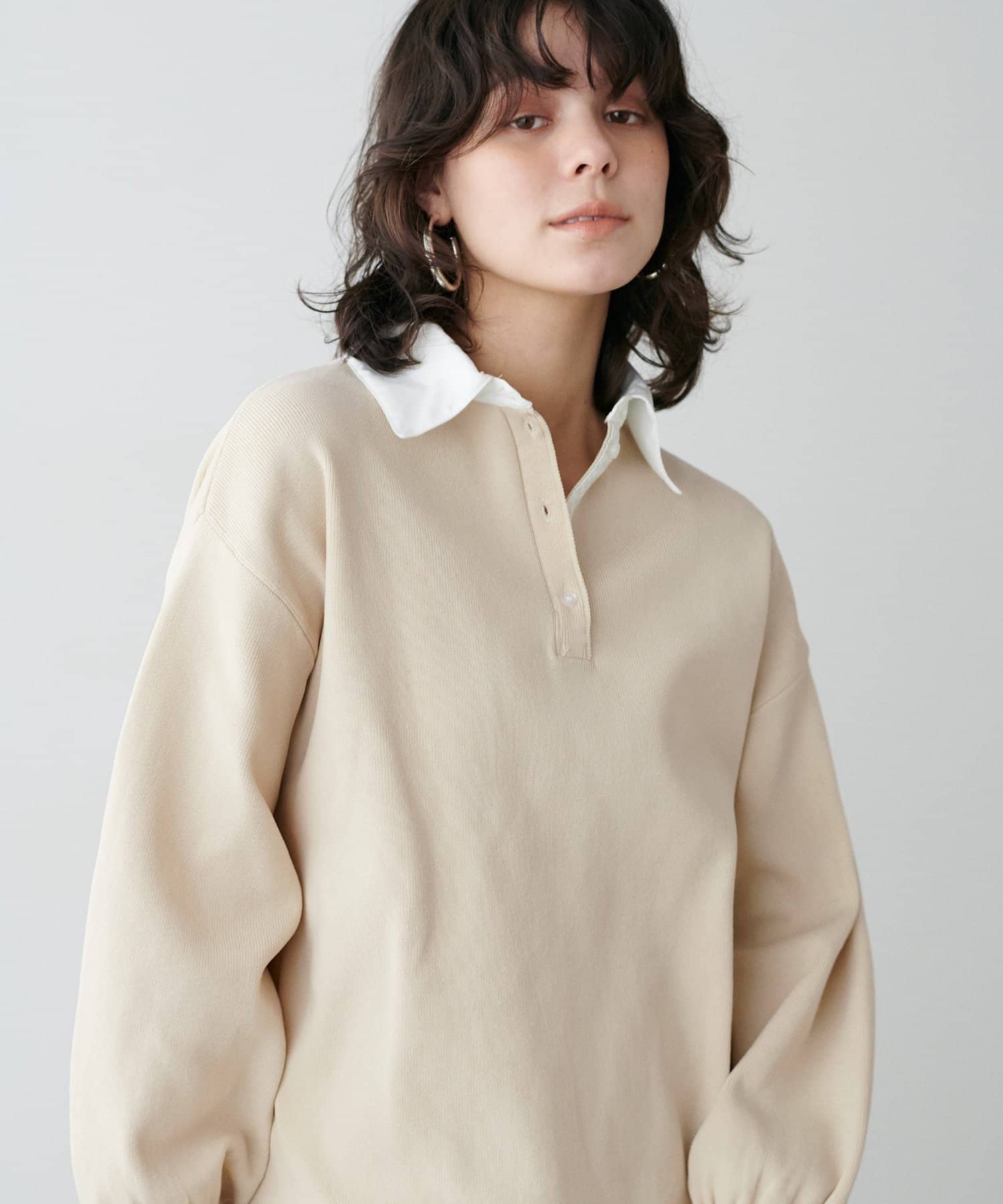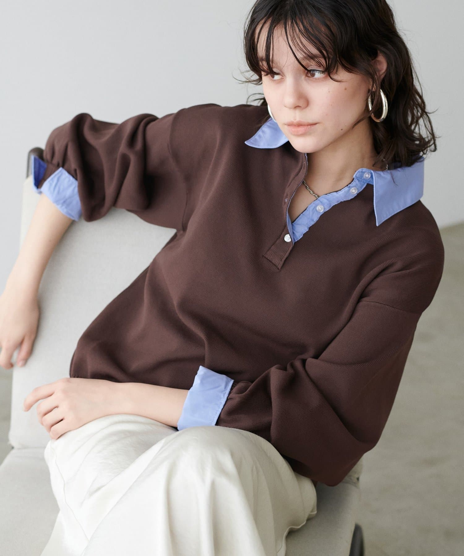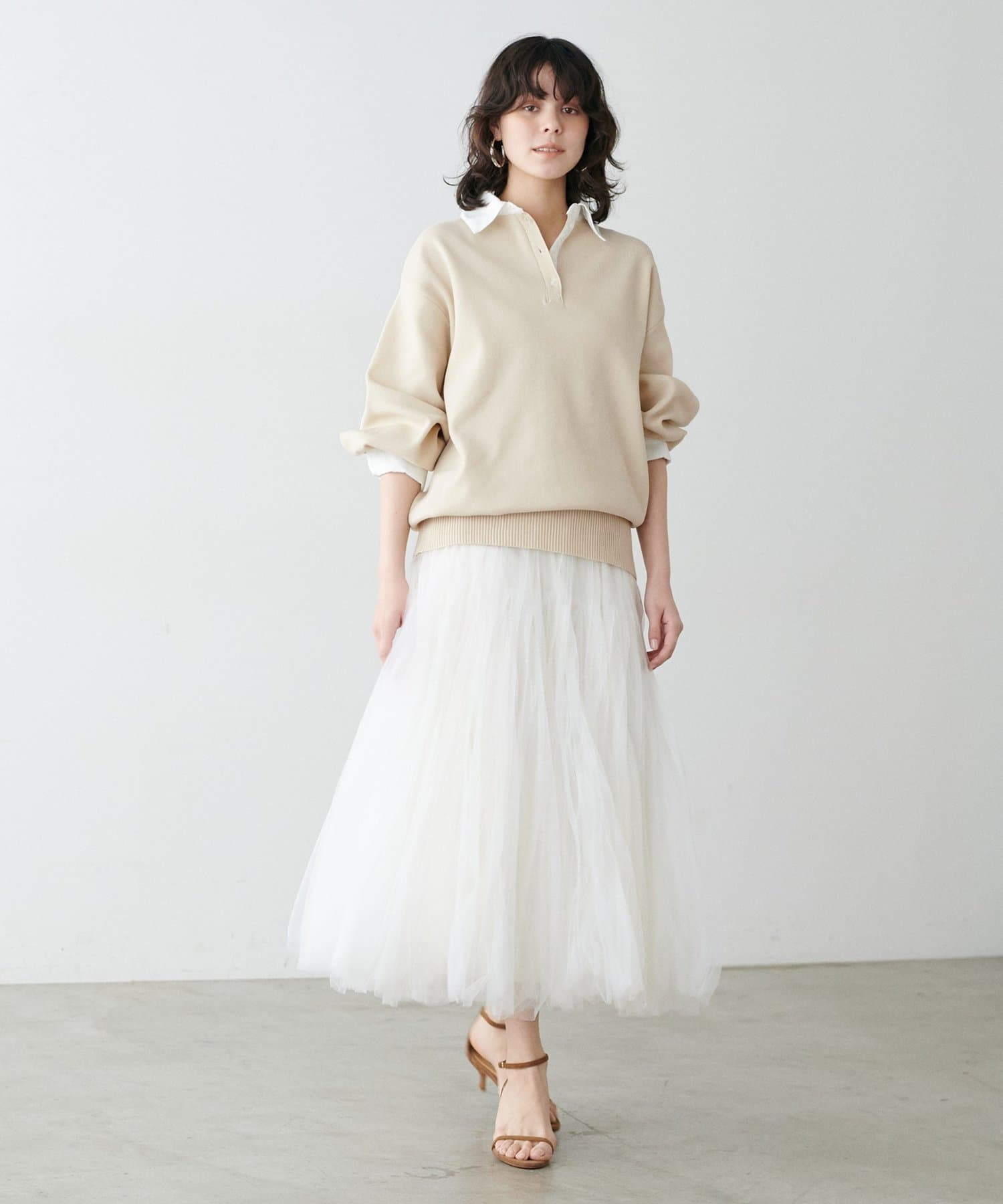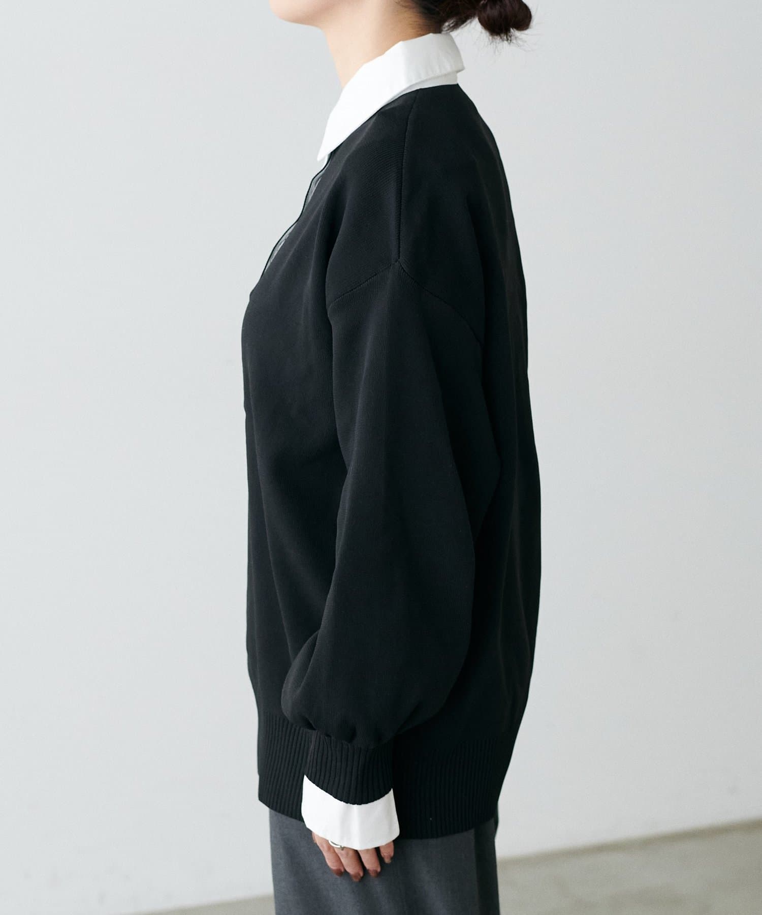 シャツ衿のきちんと感と、ニットならではの柔らかさを掛け合わせたポロニットプルオーバー。