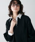 衿元は立体感のあるシャツ衿仕様で、顔まわりをすっきりと見せながら、カジュアルになりすぎない印象に仕上げています。