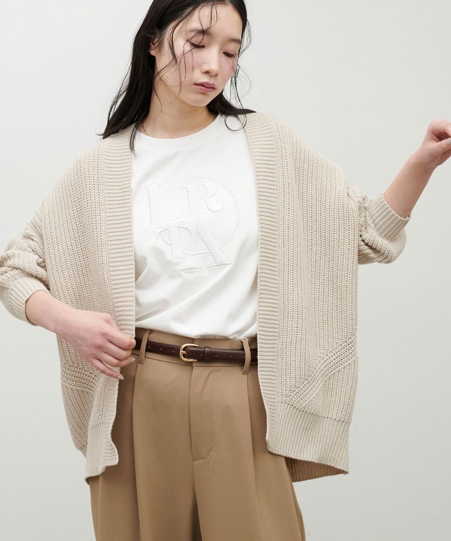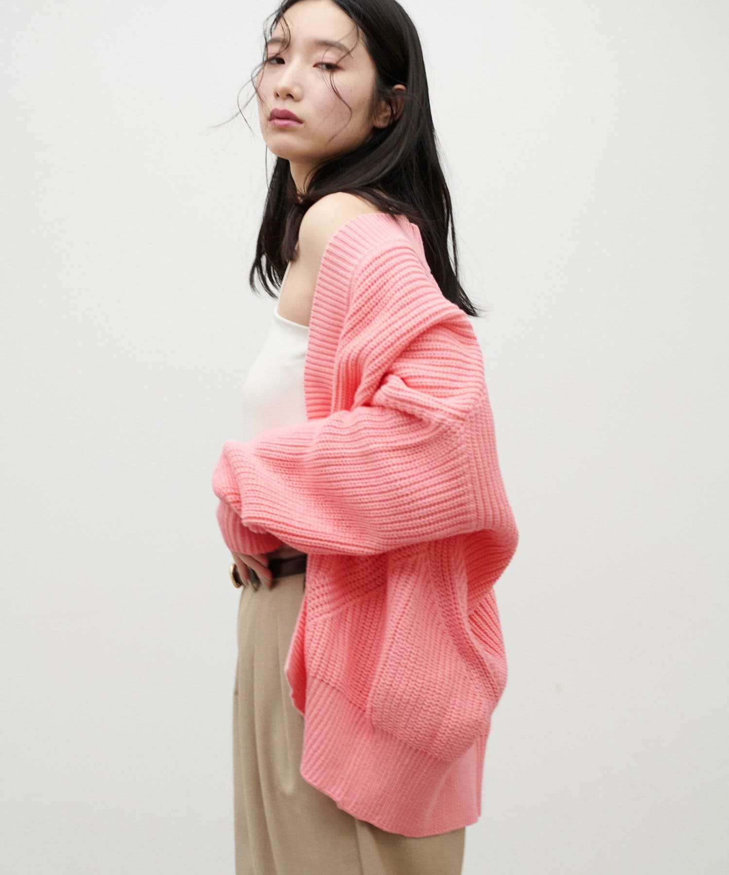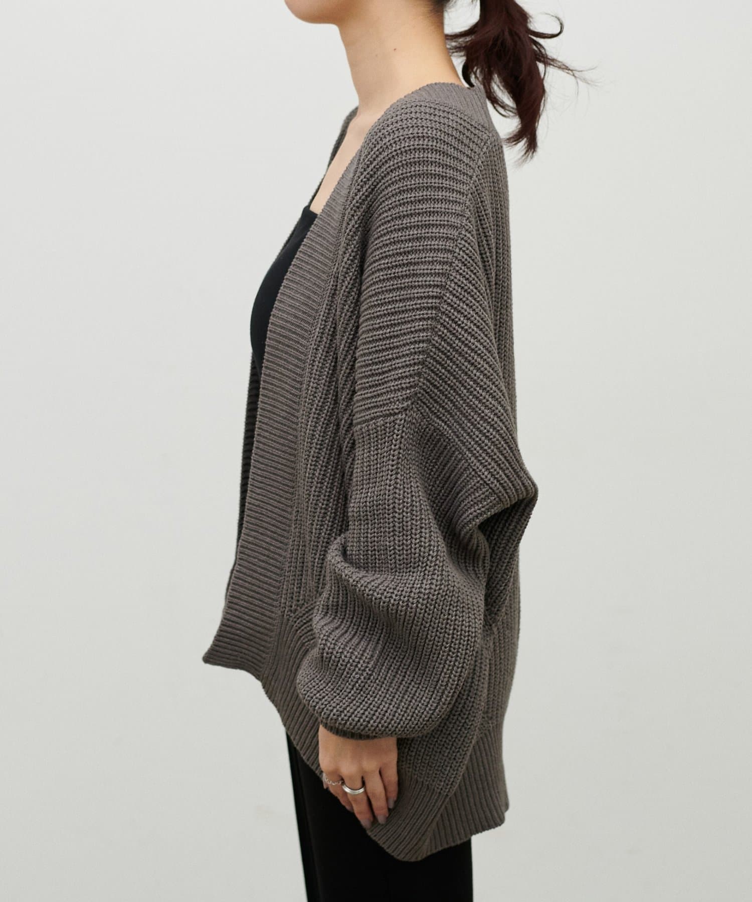 ドロップショルダー片畦ニットカーディガン