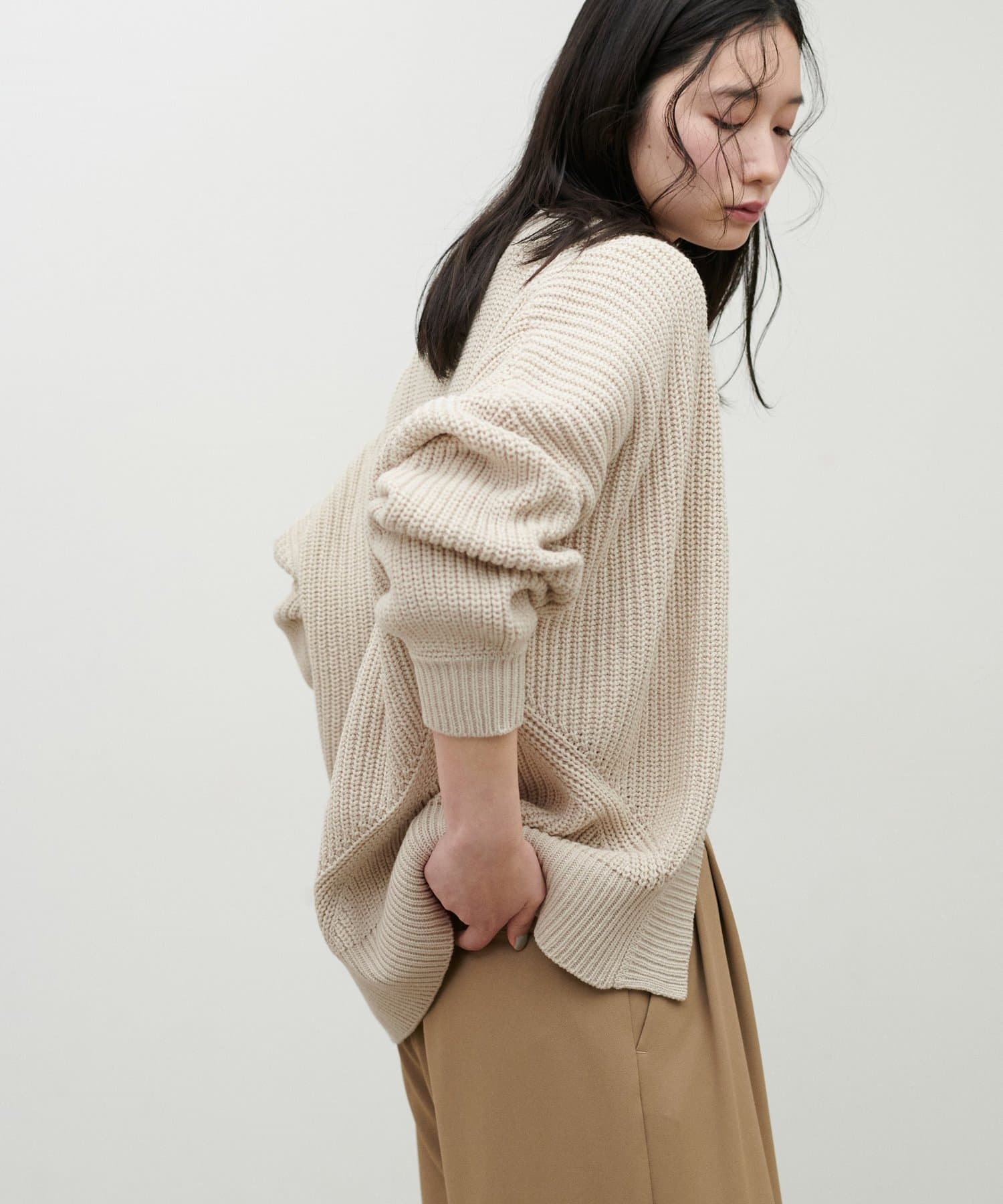 お尻まですっぽりの長めの着丈に、たっぷりとゆとりをもったドルマンスリーブで