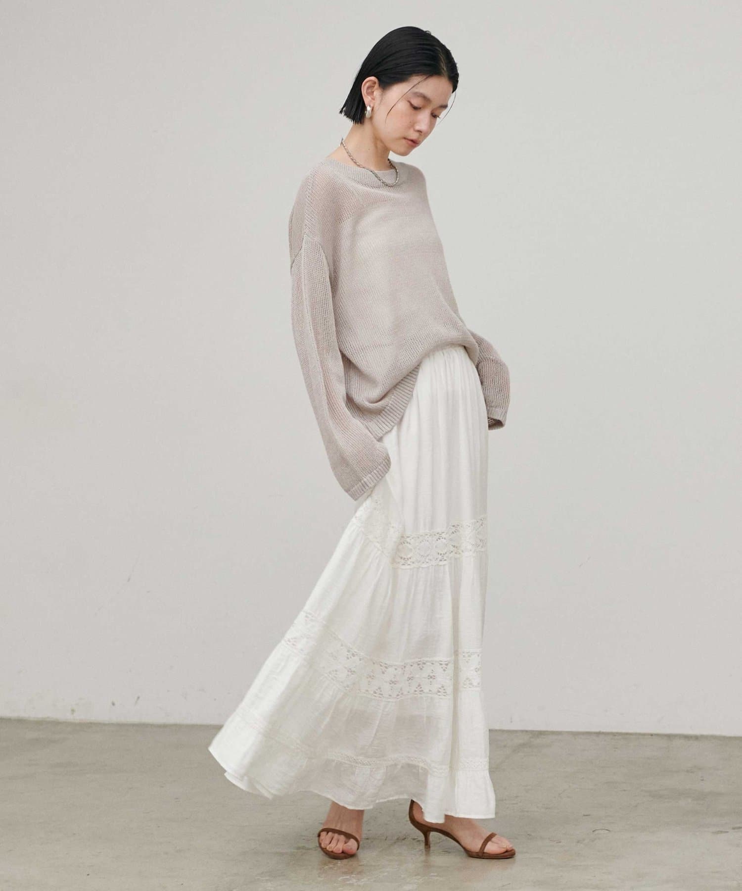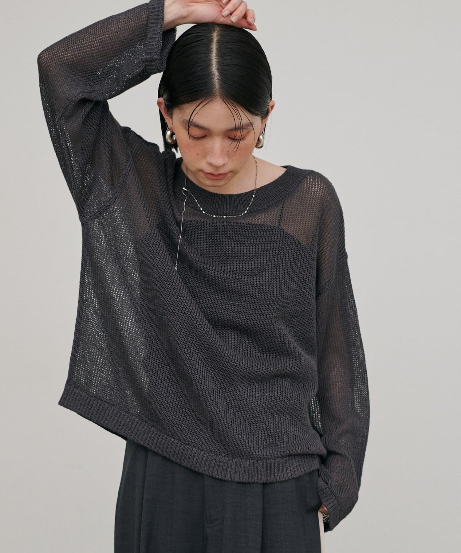 ゆったりとしたシルエットと軽やかな透け感で、シンプルながらもニュアンスのある一枚。