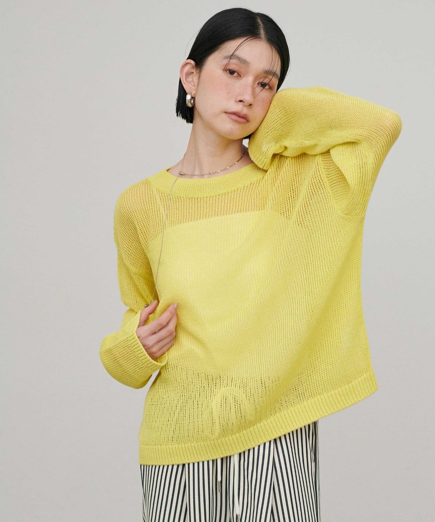 ドライなタッチが特徴のギマ素材を使用したシアーニット。