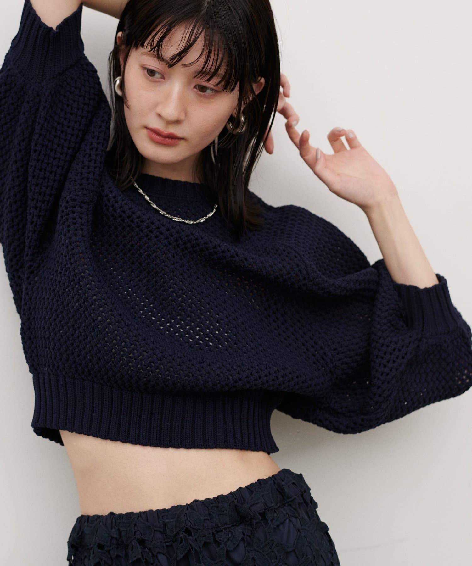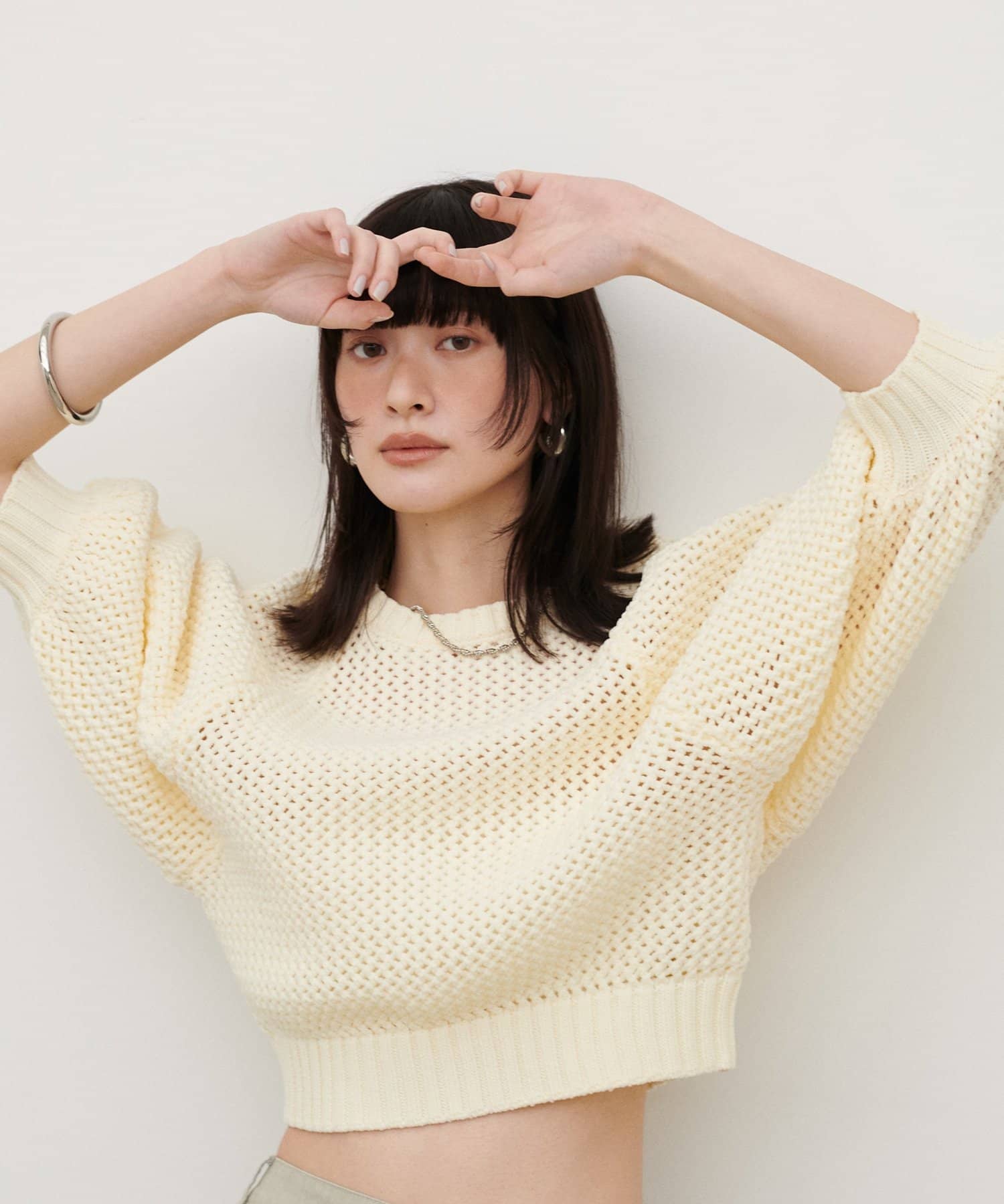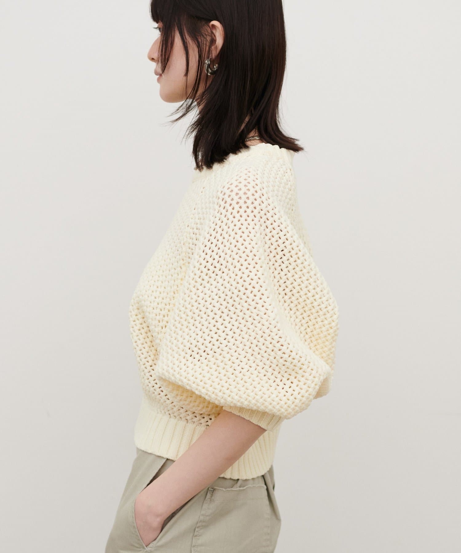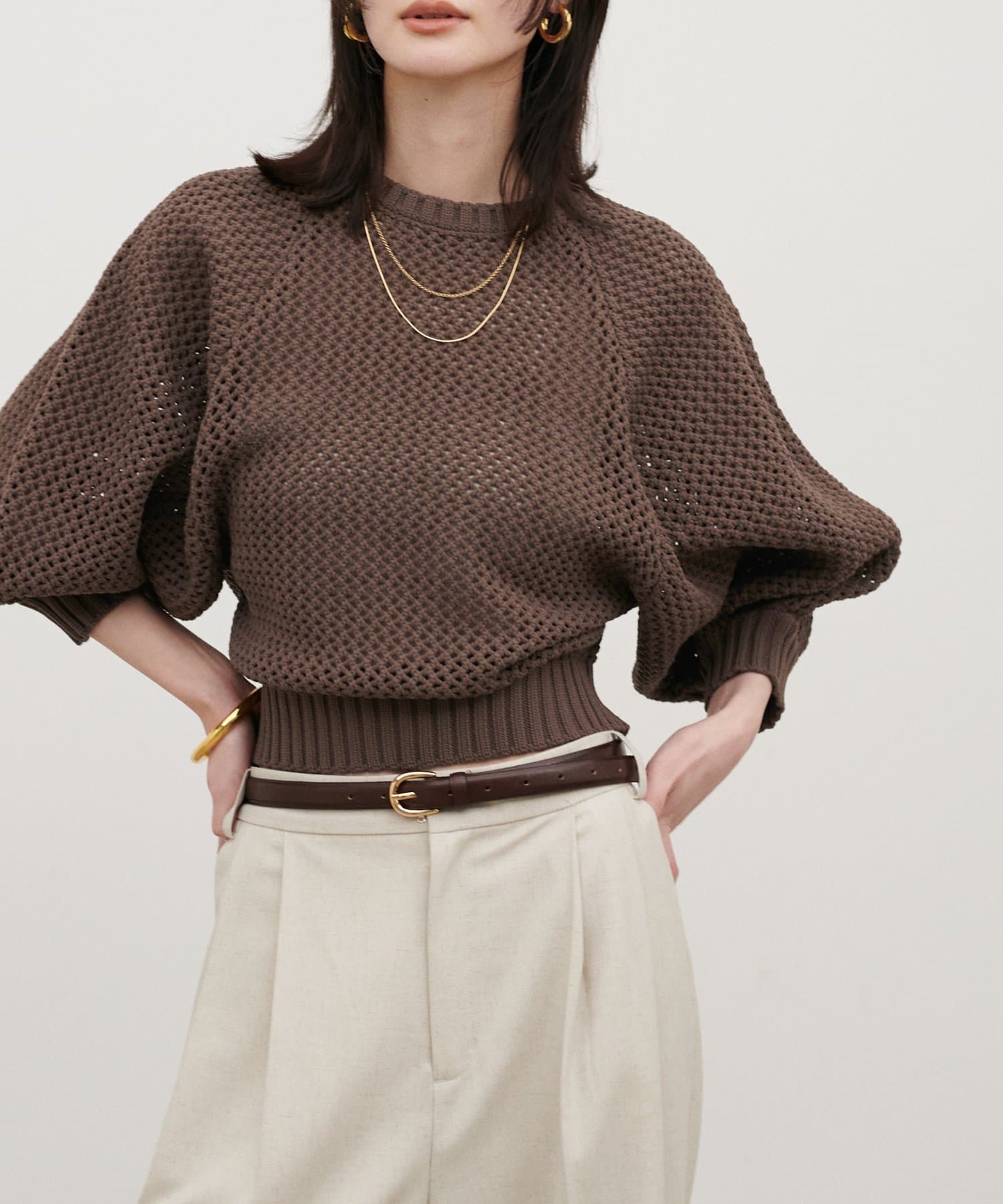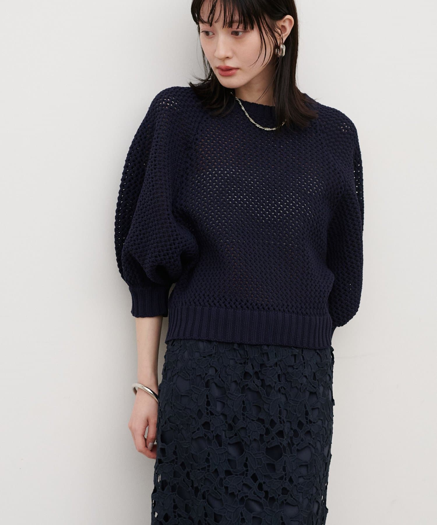 立体感のある編地とボリュームスリーブが印象的なメッシュニット。