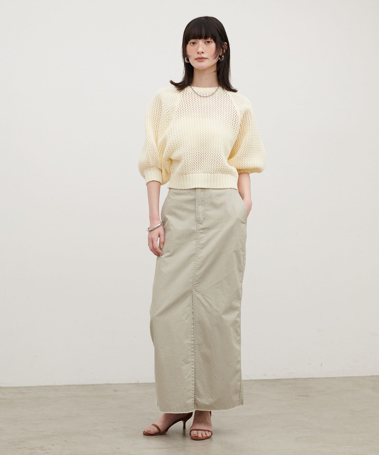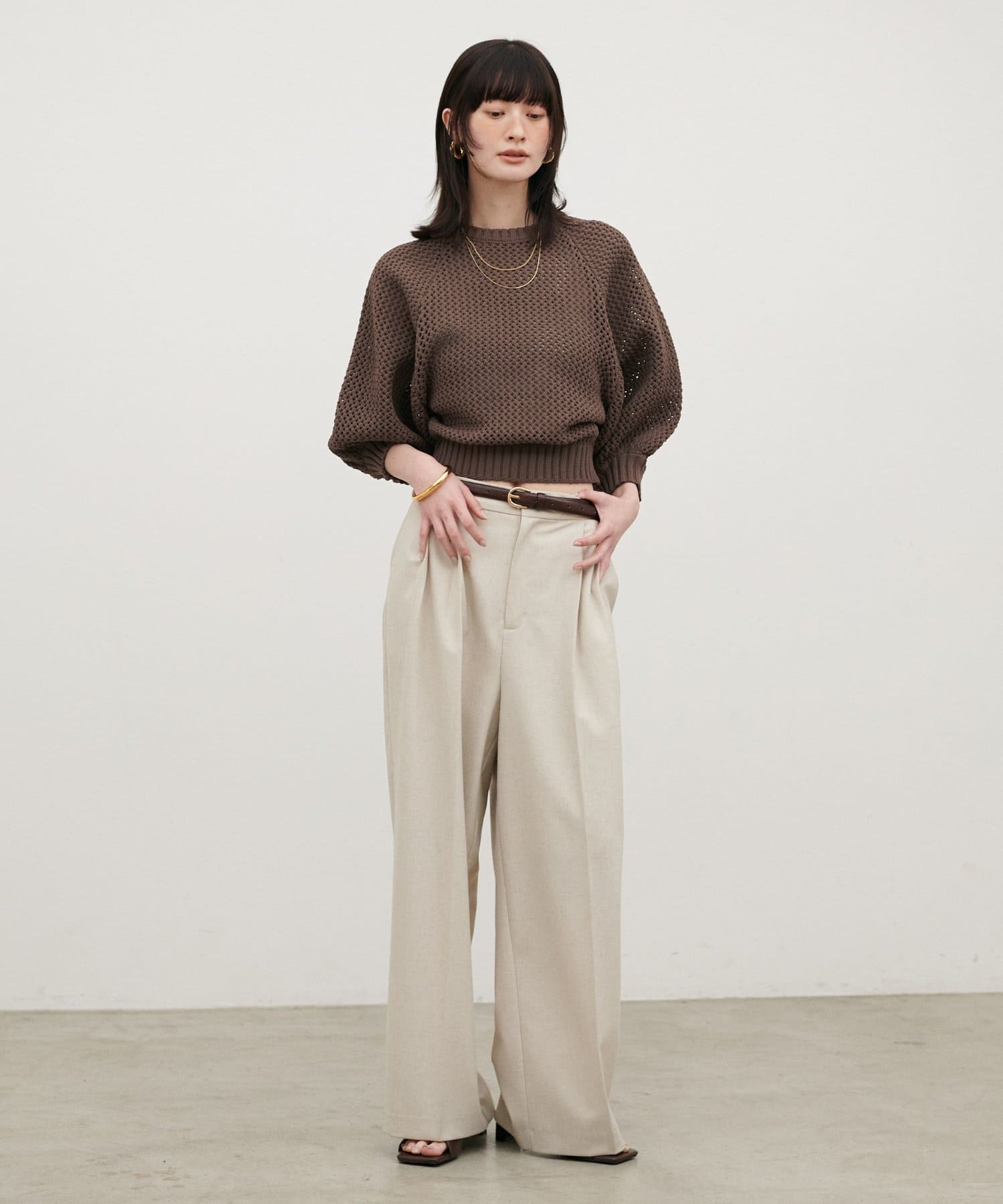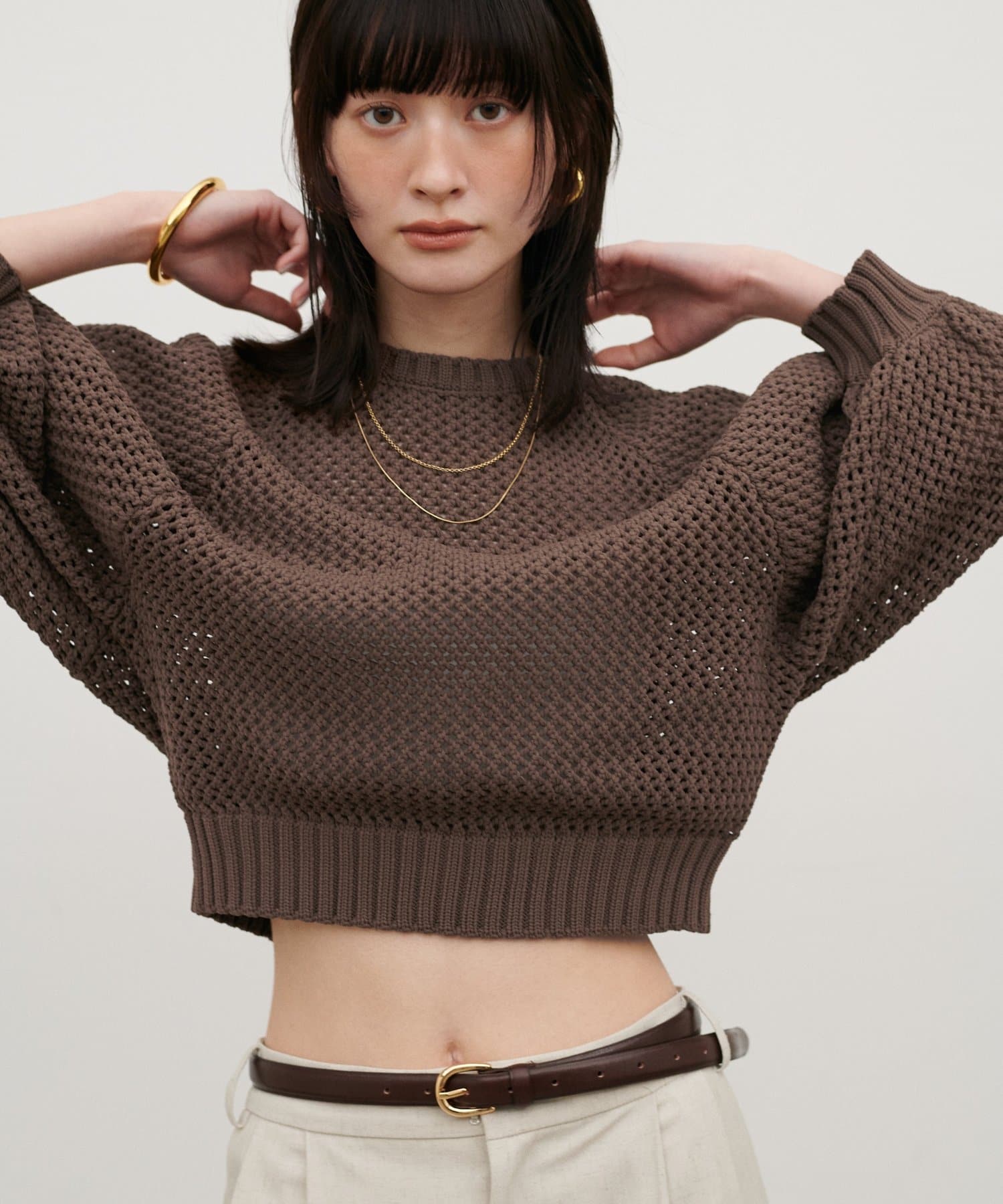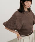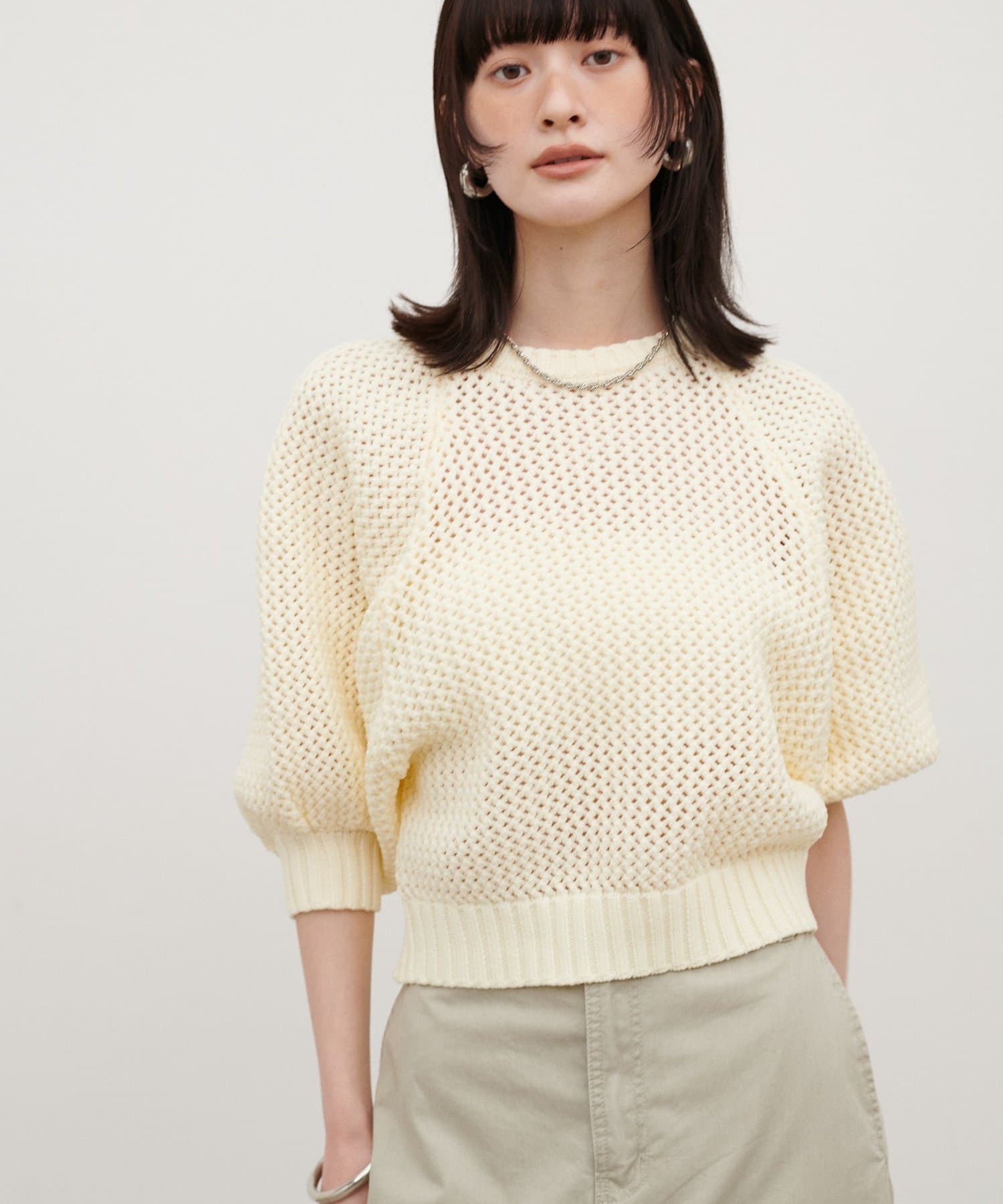 立体感のある編地とボリュームスリーブが印象的なメッシュニット。
