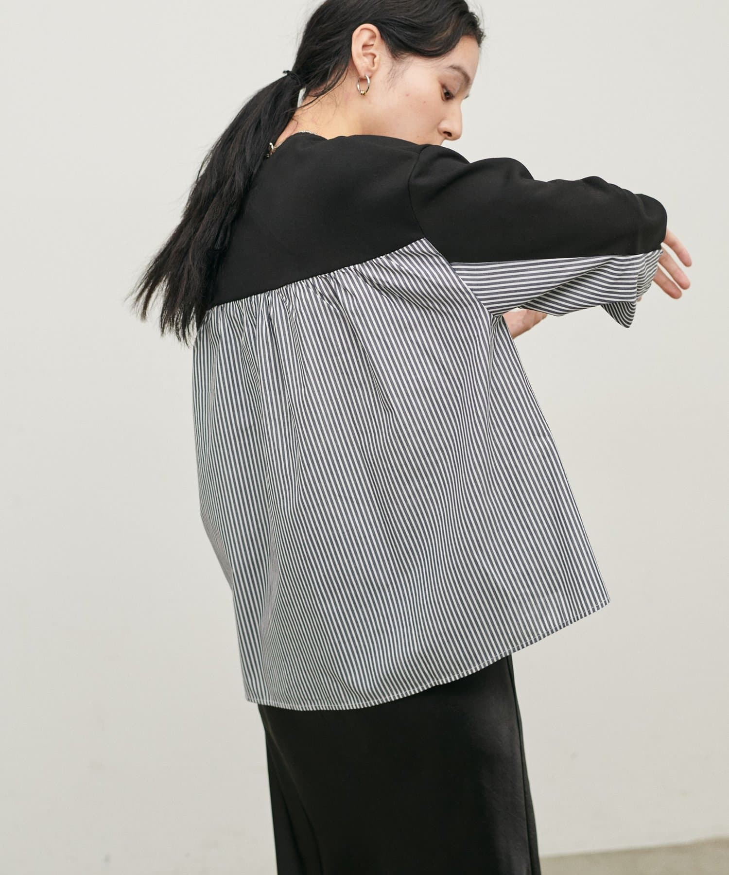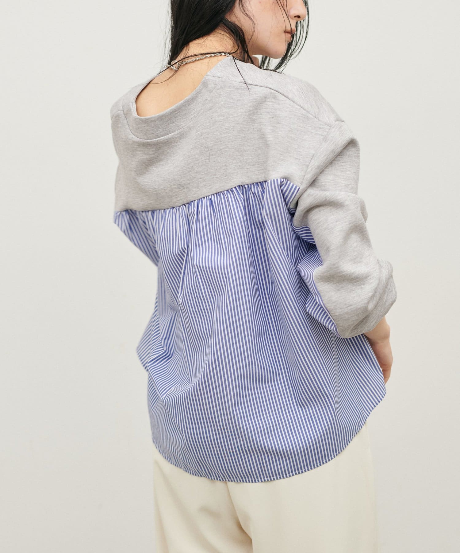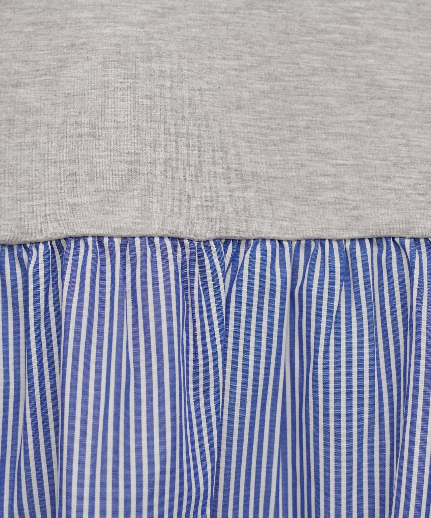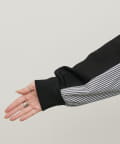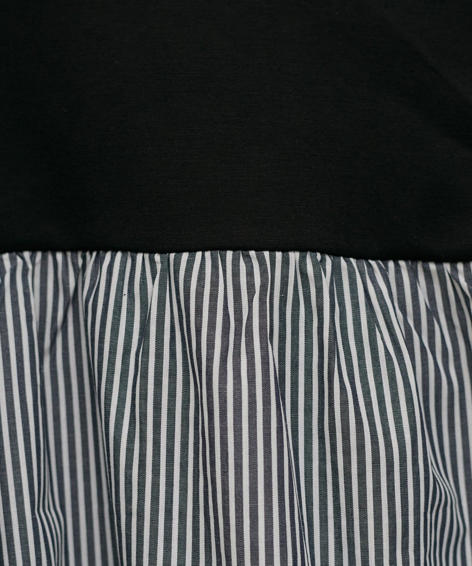 布帛部分にはさらっとしたボーダー生地を使用し、異素材のコントラストを楽しめる仕上がりです。