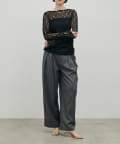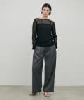 スラックスやナロースカートなどシンプルなボトムスと合わせても上品な印象に。