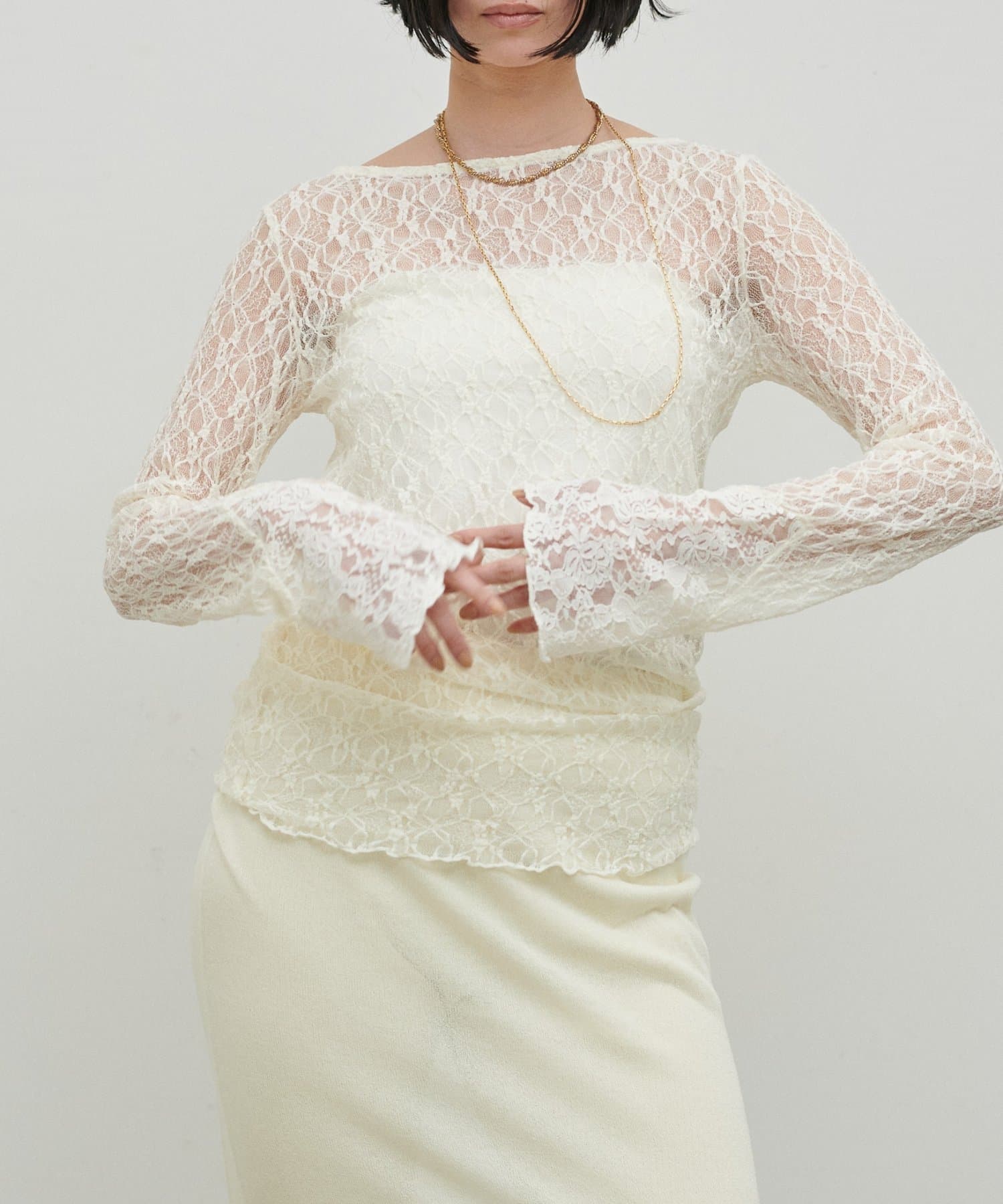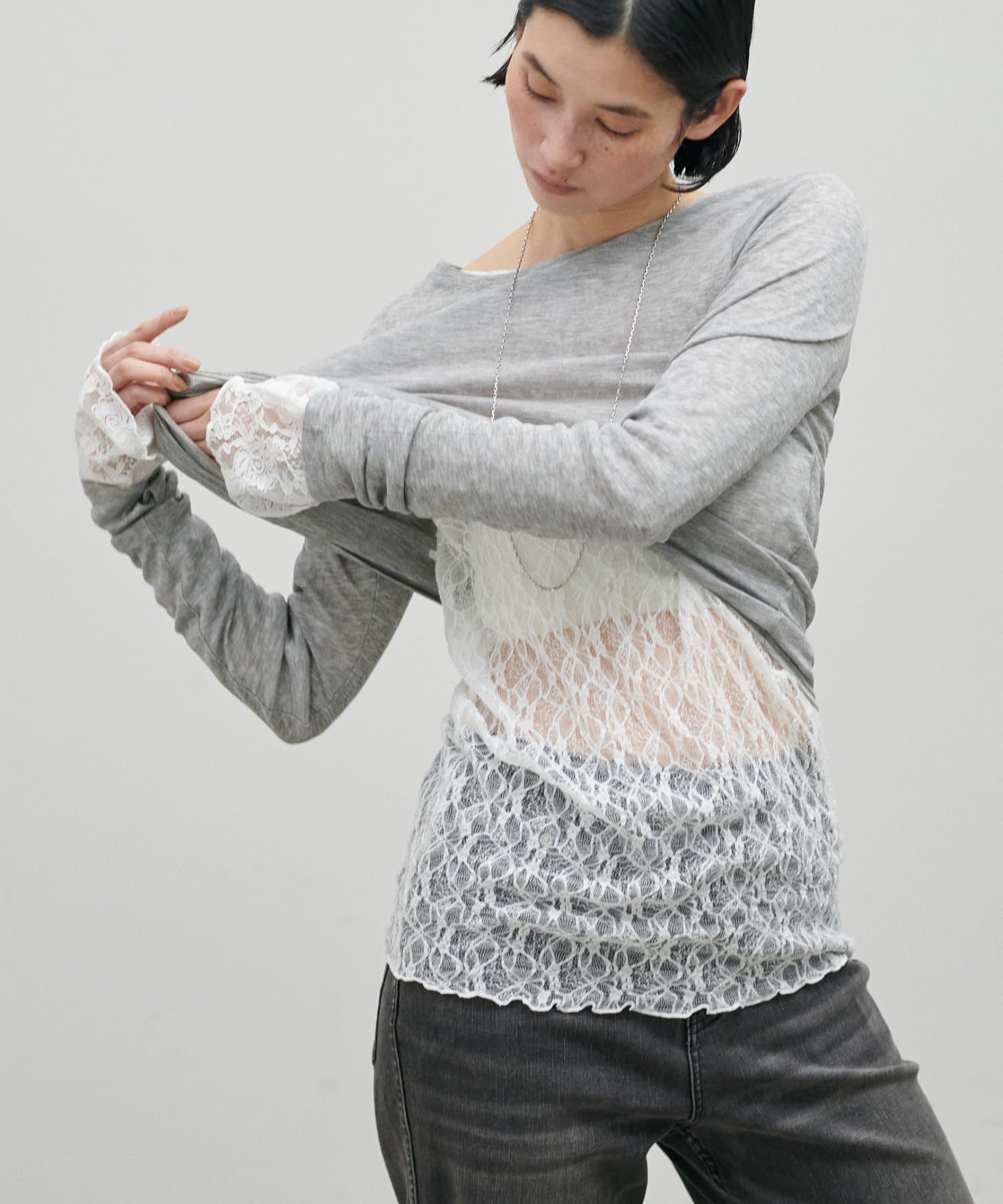 袖部分には2種類のレースを施し、さりげないながらもこだわりの詰まったアイテム。