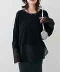 トレンドライクなシアーチュールをドッキングさせてロングスリーブTシャツ。